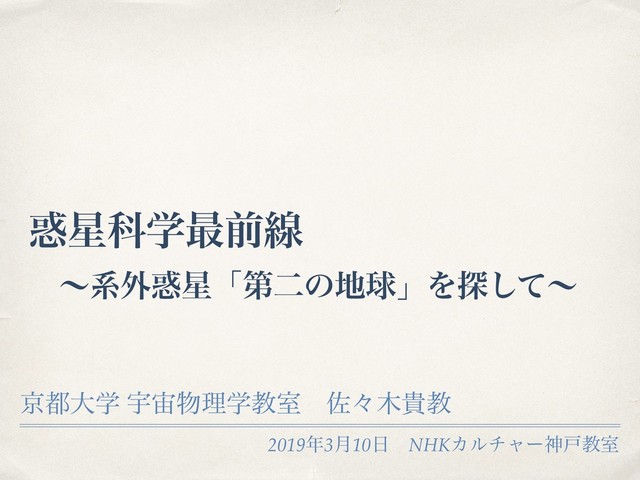 NHK カルチャー神戸教室にて、系外惑星に関する講座を行ってきました。そのときに用いた講演資料です。