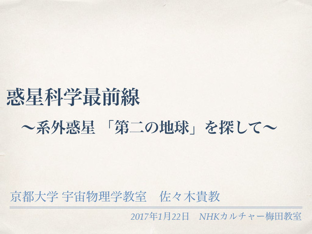 NHK カルチャー講座 〜系外惑星(第1回)