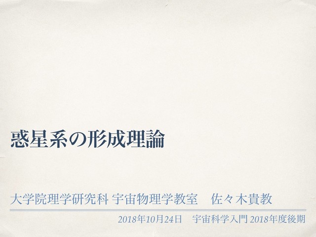 学部生向け教養講義である宇宙科学入門で、惑星形成論+系外惑星に関する話をしてきました。そのときの講義資料です。