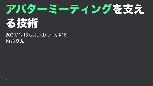 ΞόλʔϛʔςΟϯάΛࢧ͑ Δٕज़ 2021/1/13 Gotanda.unity #16 Ͷ͓ΓΜ 1