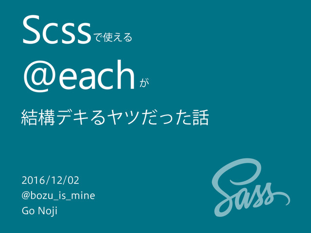 で紹介させていただきました、SCSSの@each解説スライドです。