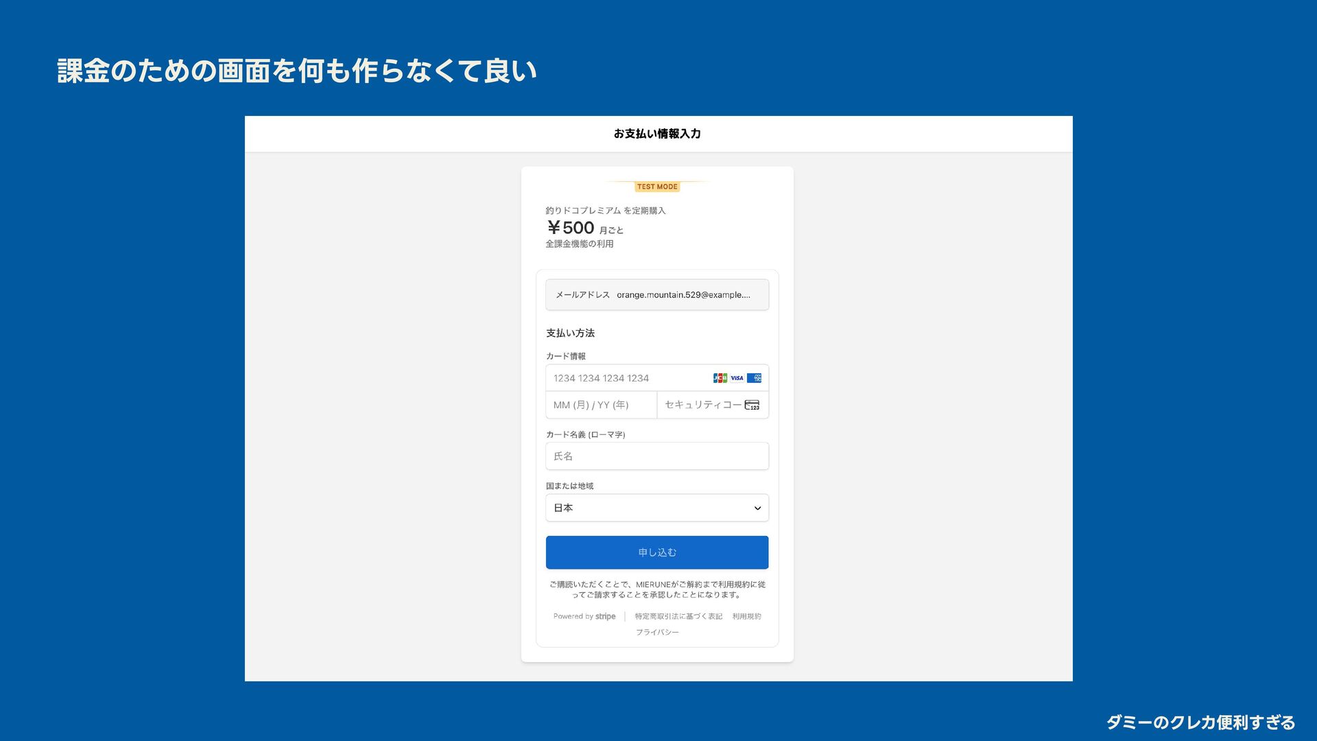 課金のための画面を何も作らなくて良い ダミーのクレカ便利すぎる