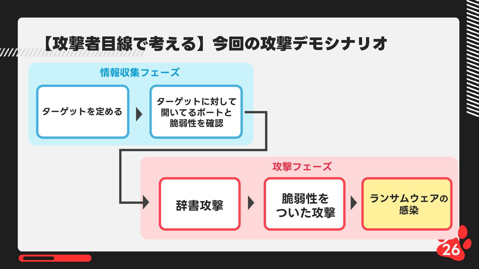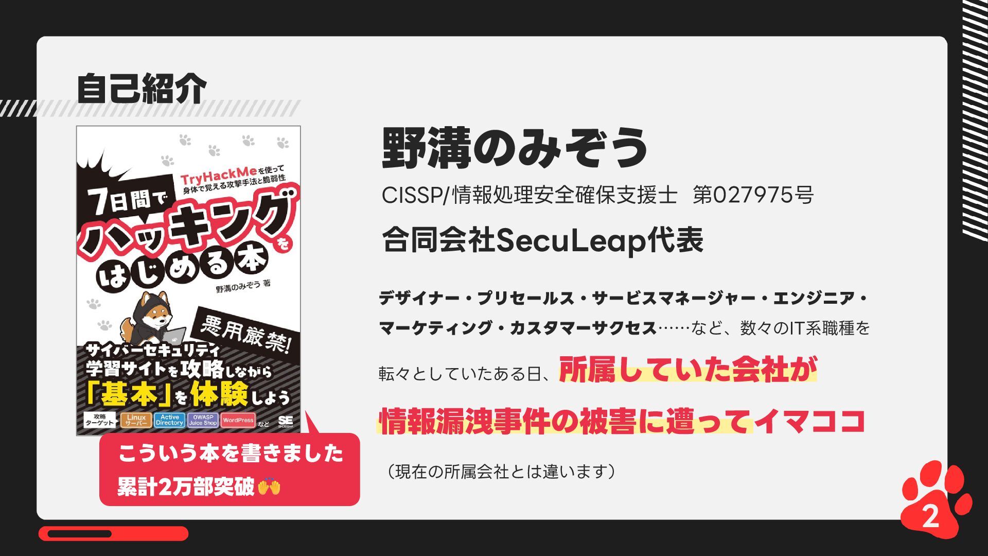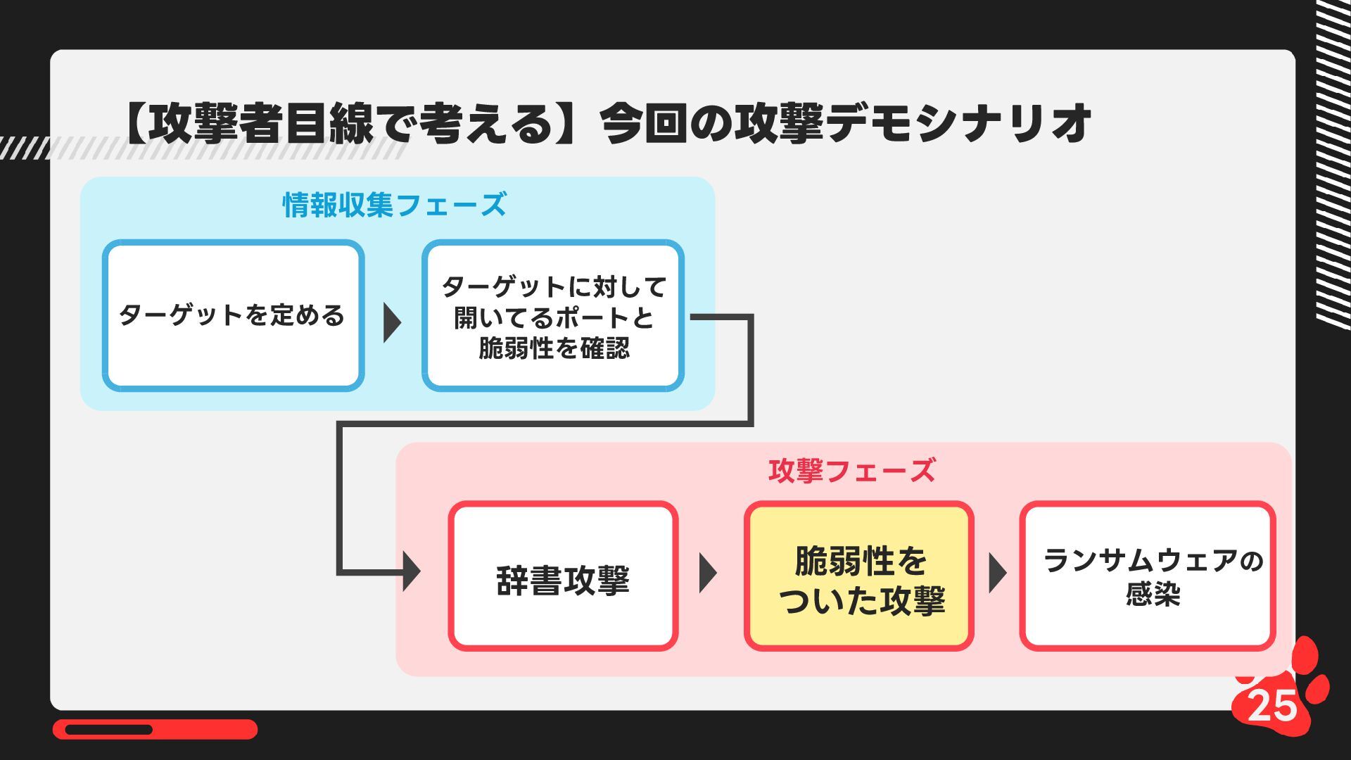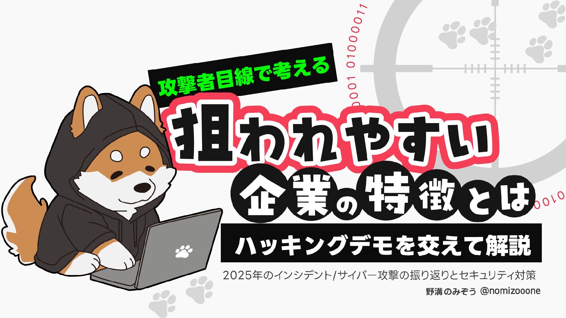 12月4日(木)14:00-14:45 LRM株式会社主催 AIからランサムウェア攻撃まで 2025年のインシデント/サイバー攻撃の振り返りとセキュリティ対策 内で発表した 【悪用厳禁!】攻撃者目線で考える“狙われやすい”企業の特徴とは? ~ハッキングデモを交えて解説~の資料です https://www.lrm.jp/seminar/co_cybersecurity-2025-review/
