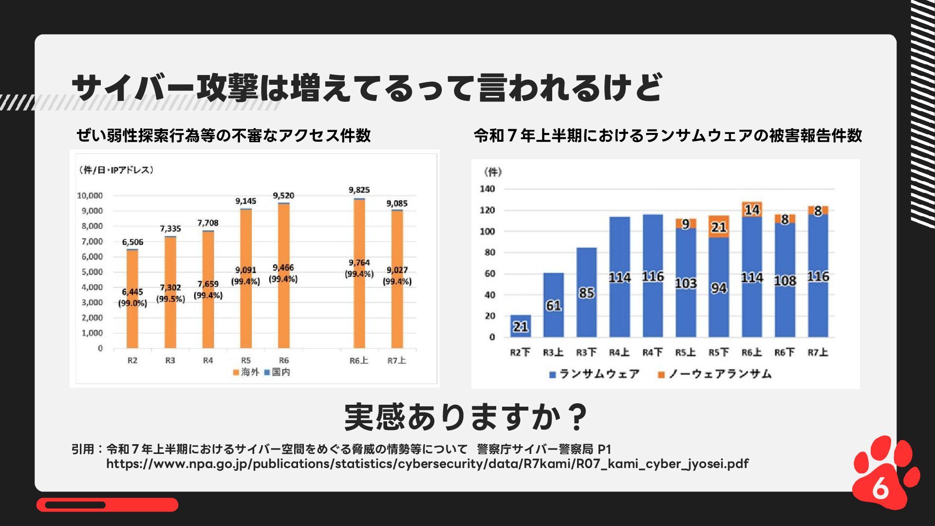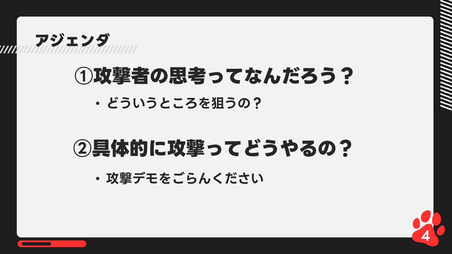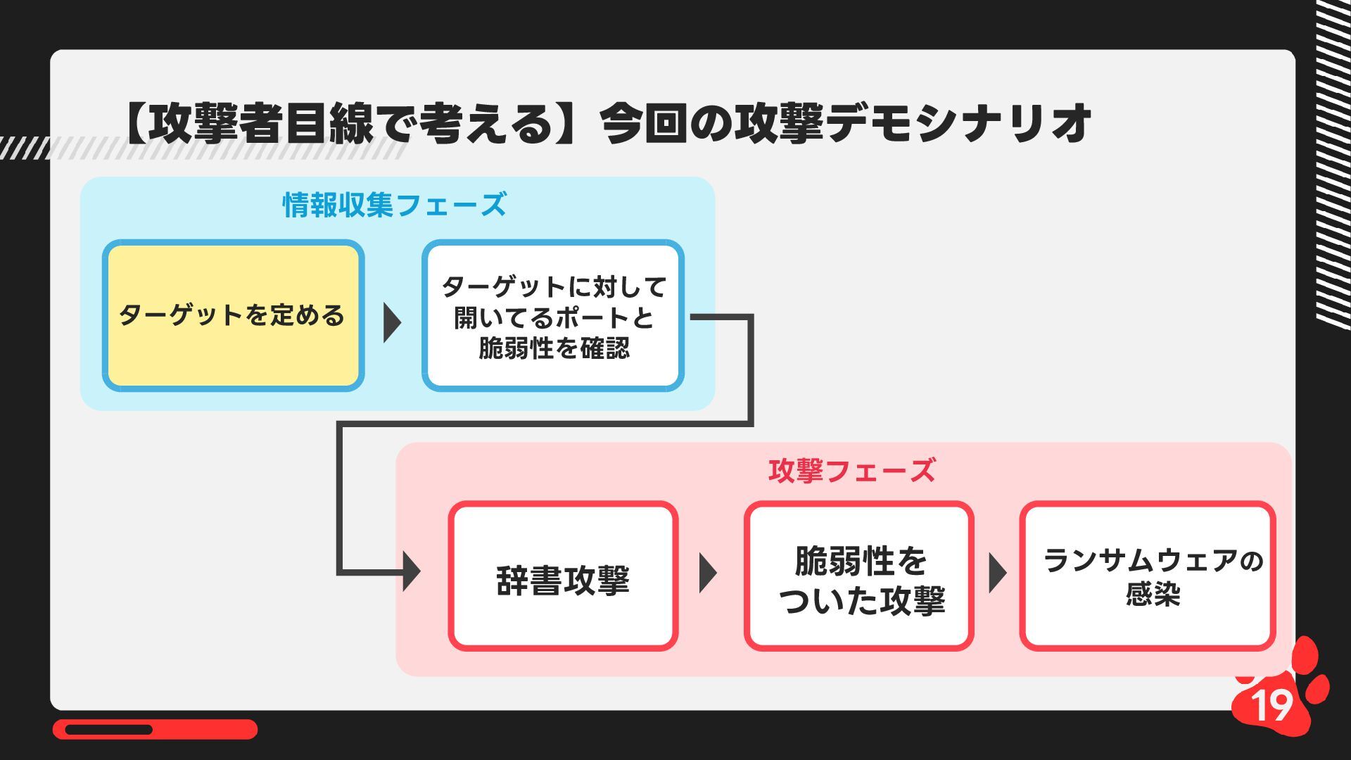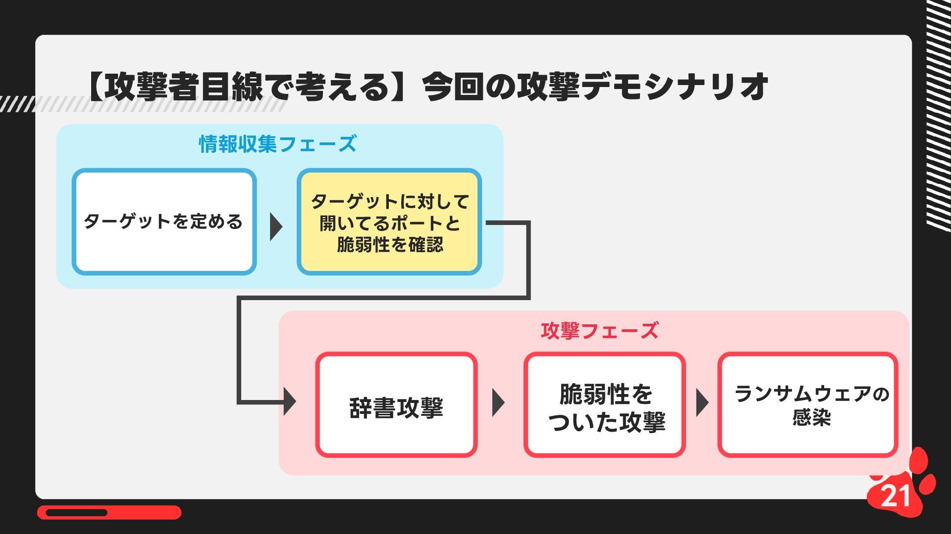 12月4日(木)14:00-14:45 LRM株式会社主催 AIからランサムウェア攻撃まで 2025年のインシデント/サイバー攻撃の振り返りとセキュリティ対策 内で発表した 【悪用厳禁!】攻撃者目線で考える“狙われやすい”企業の特徴とは? ~ハッキングデモを交えて解説~の資料です https://www.lrm.jp/seminar/co_cybersecurity-2025-review/