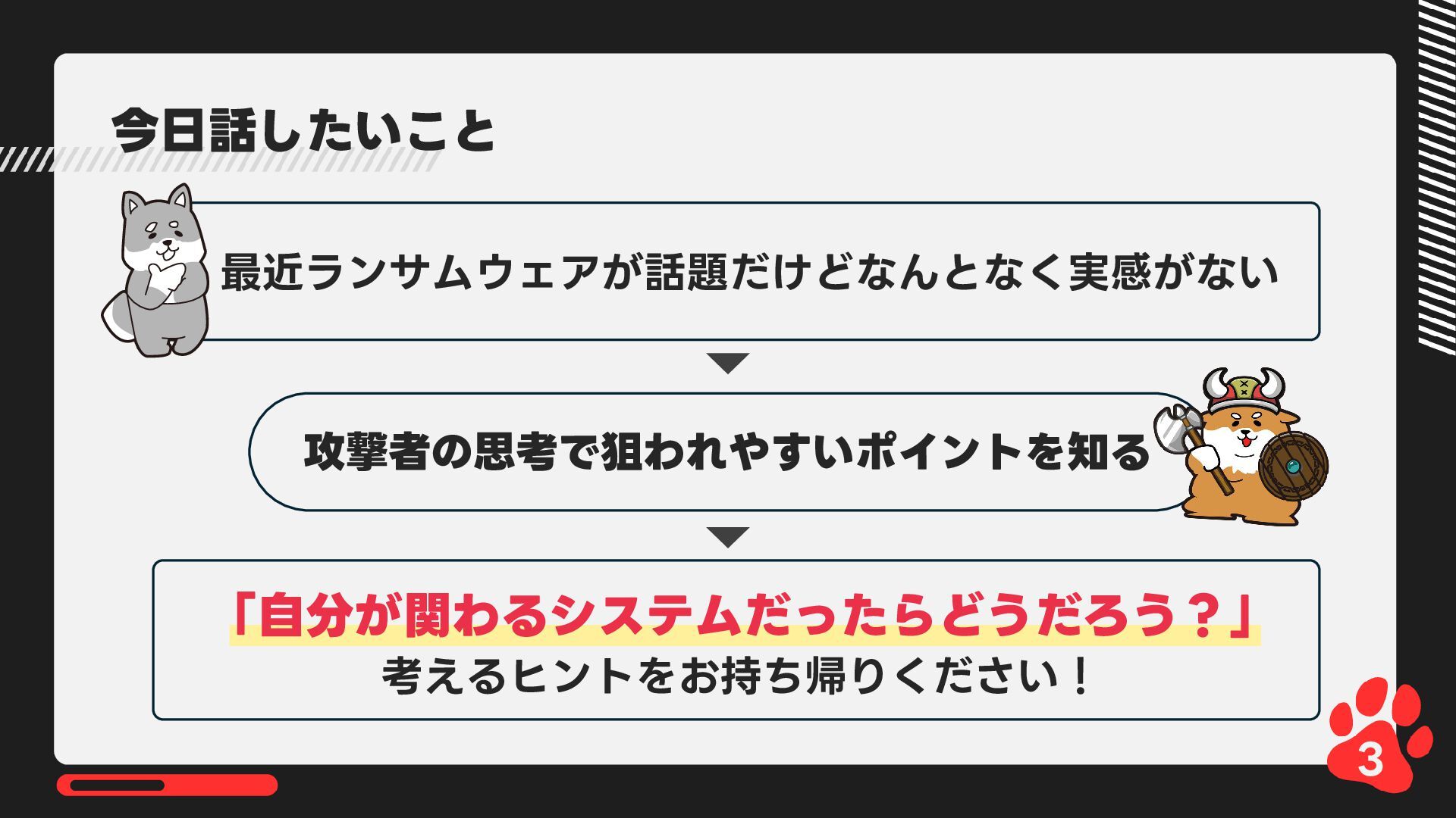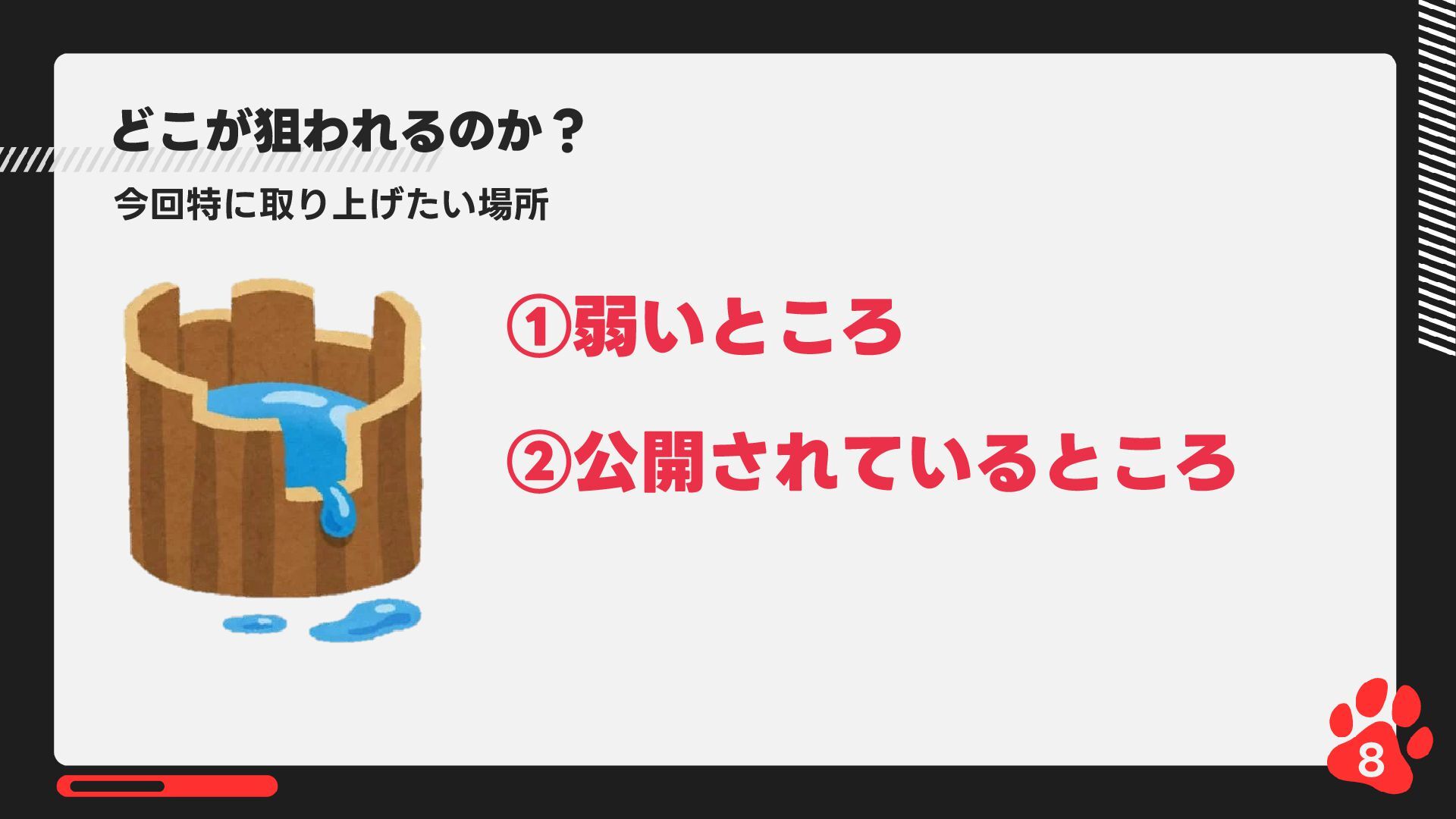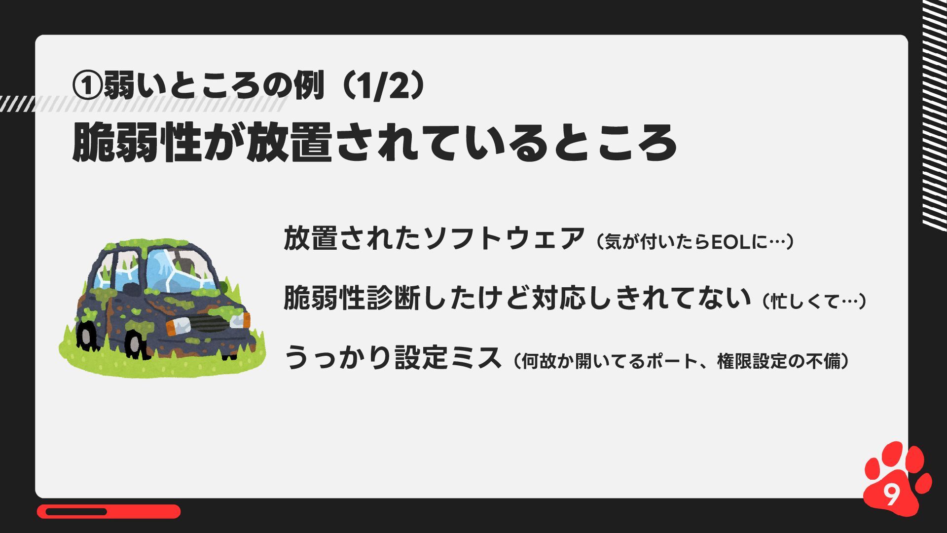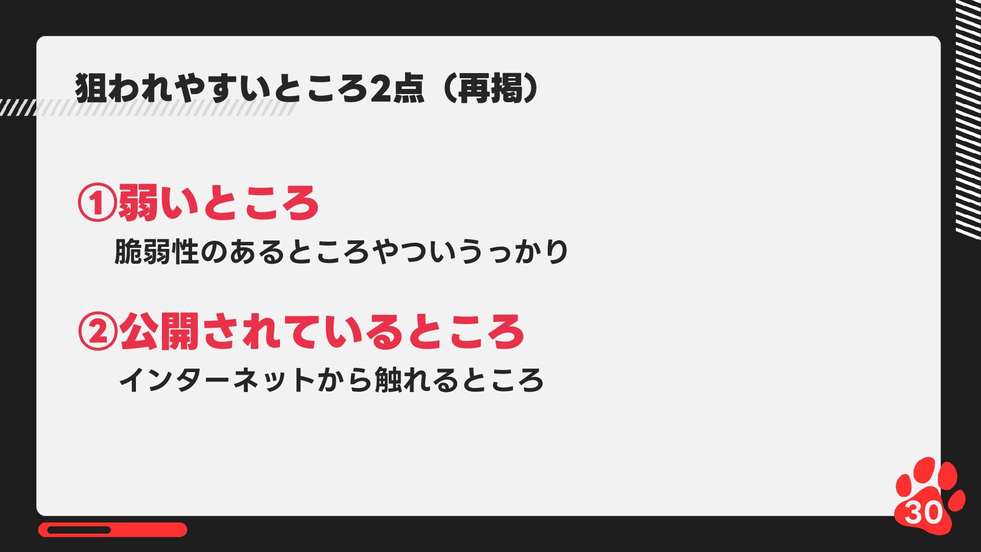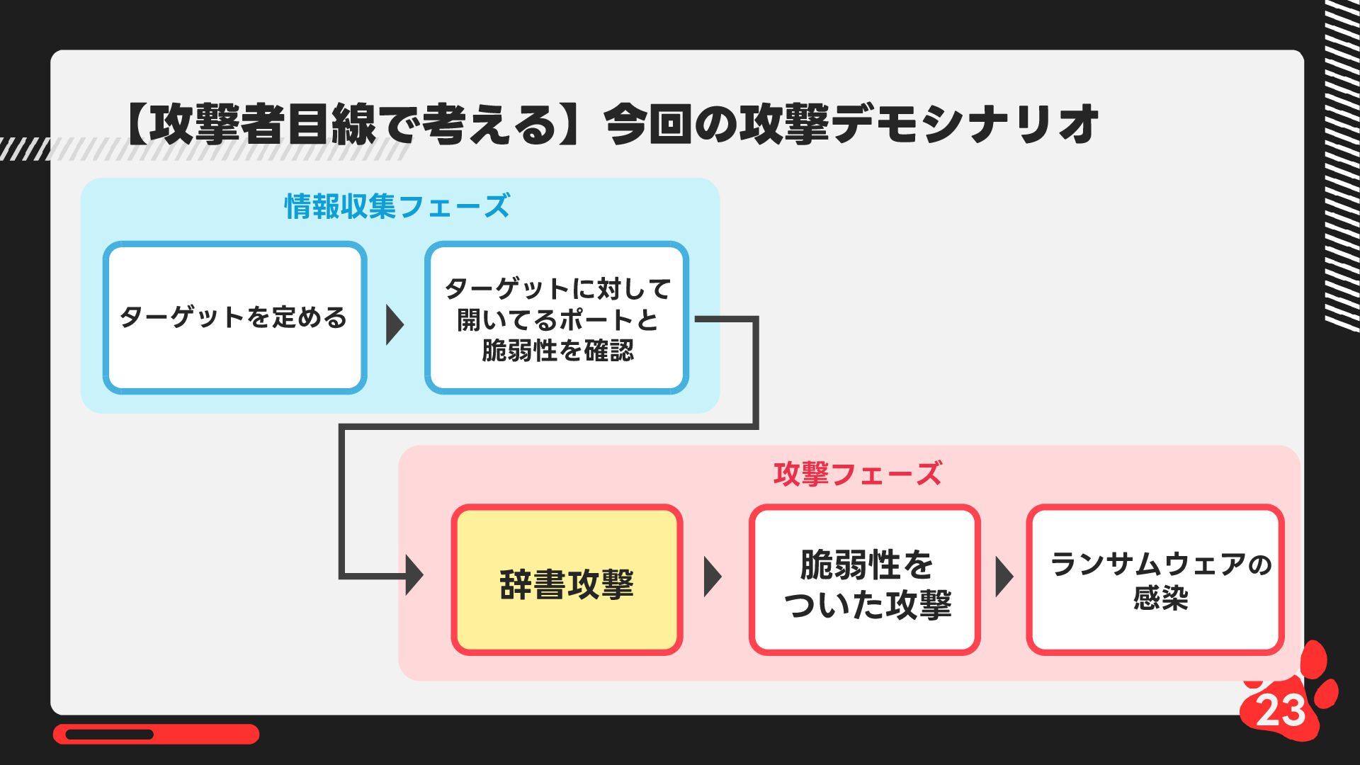12月4日(木)14:00-14:45 LRM株式会社主催 AIからランサムウェア攻撃まで 2025年のインシデント/サイバー攻撃の振り返りとセキュリティ対策 内で発表した 【悪用厳禁!】攻撃者目線で考える“狙われやすい”企業の特徴とは? ~ハッキングデモを交えて解説~の資料です https://www.lrm.jp/seminar/co_cybersecurity-2025-review/
