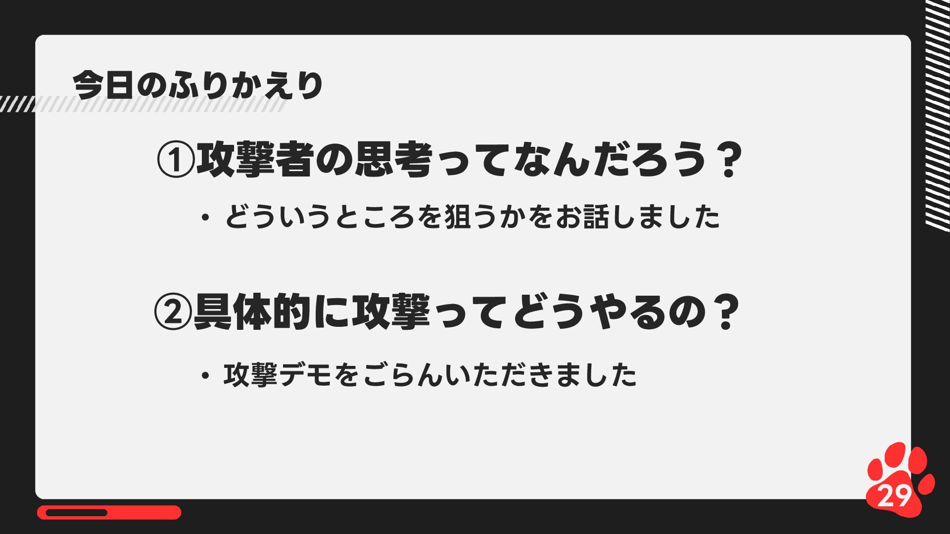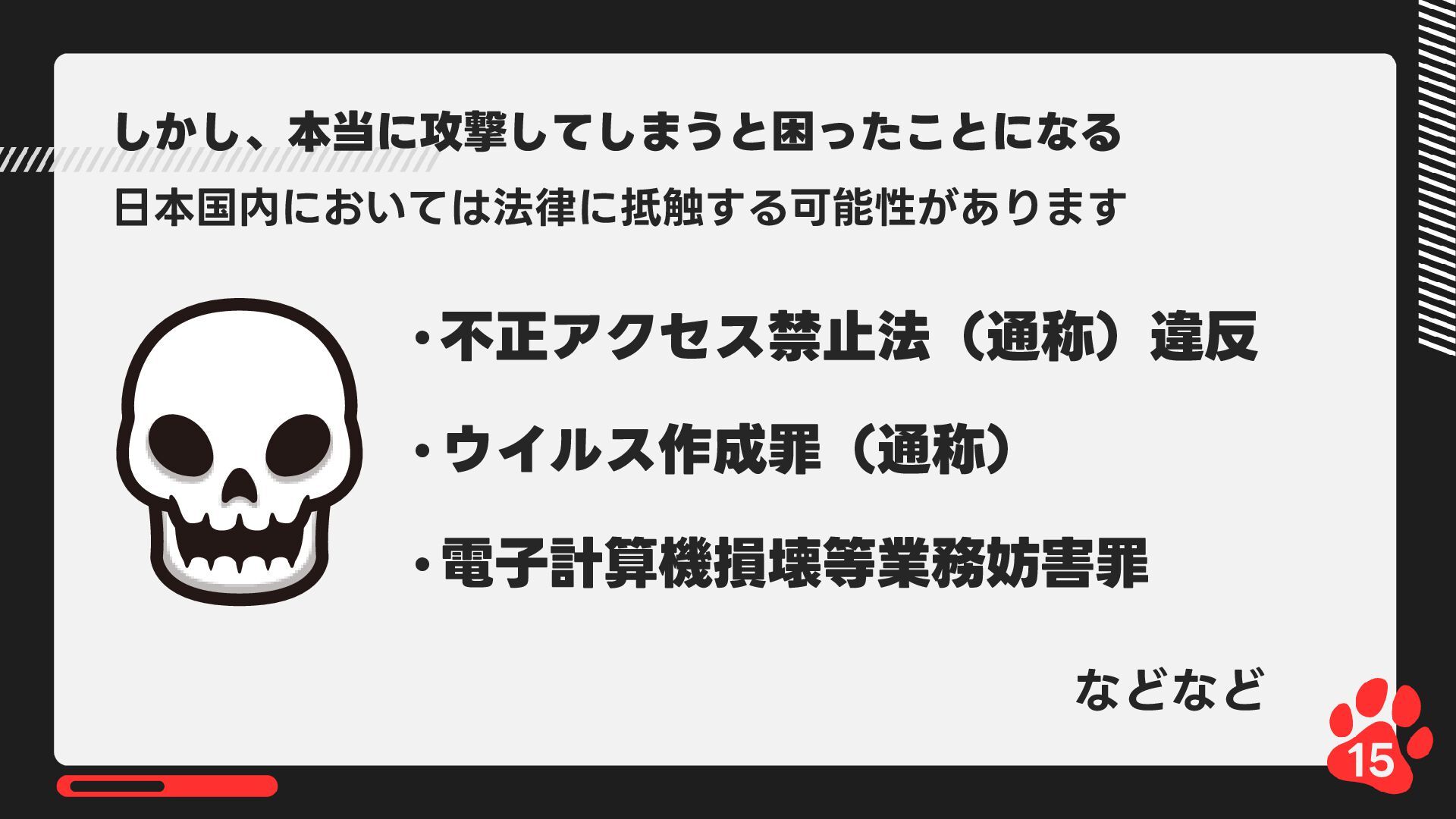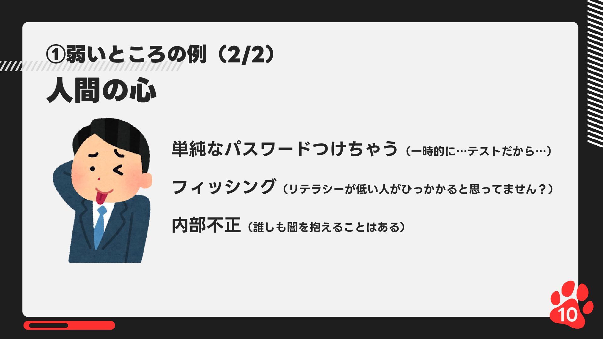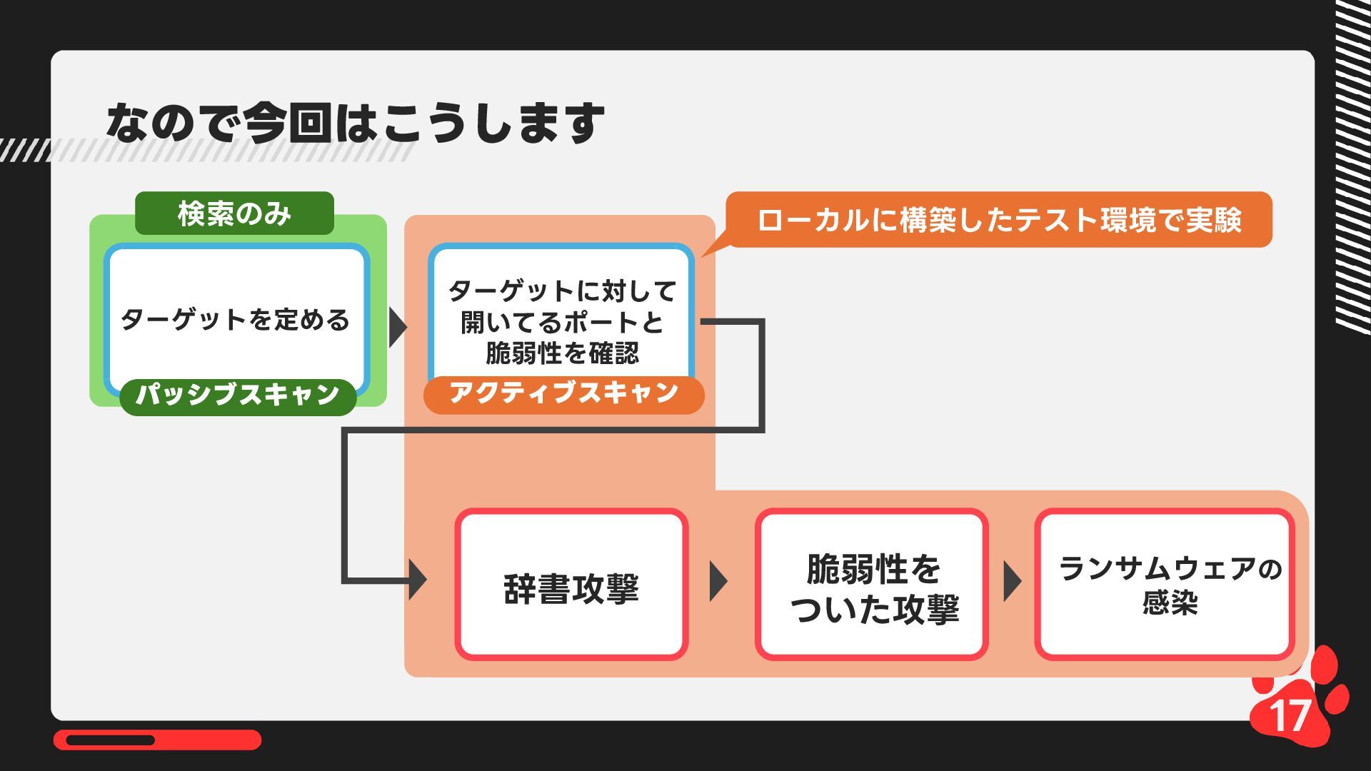 12月4日(木)14:00-14:45 LRM株式会社主催 AIからランサムウェア攻撃まで 2025年のインシデント/サイバー攻撃の振り返りとセキュリティ対策 内で発表した 【悪用厳禁!】攻撃者目線で考える“狙われやすい”企業の特徴とは? ~ハッキングデモを交えて解説~の資料です https://www.lrm.jp/seminar/co_cybersecurity-2025-review/