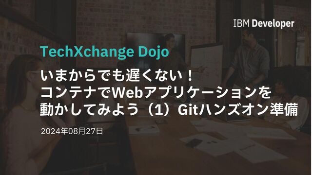 TechXchange Dojo いまからでも遅くない! コンテナでWebアプリケーションを 動かしてみよう(1)Gitハンズオン準備 2024年08月27日