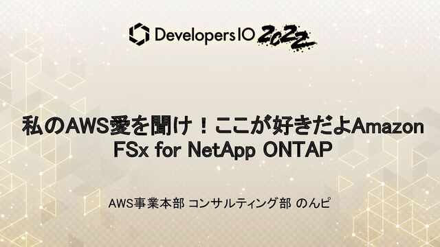私のAWS愛を聞け!ここが好きだよAmazon FSx for NetApp ONTAP AWS事業本部 コンサルティング部 のんピ