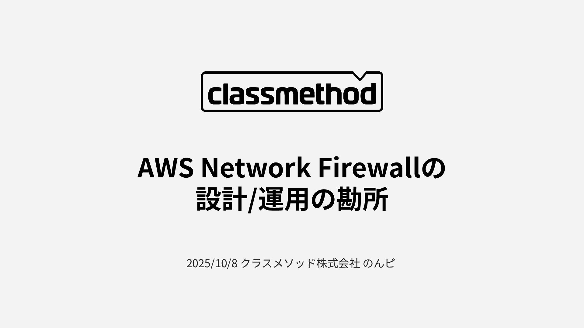 2025/10/8 クラスメソッド株式会社 のんピ AWS Network Firewallの 設計/運⽤の勘所