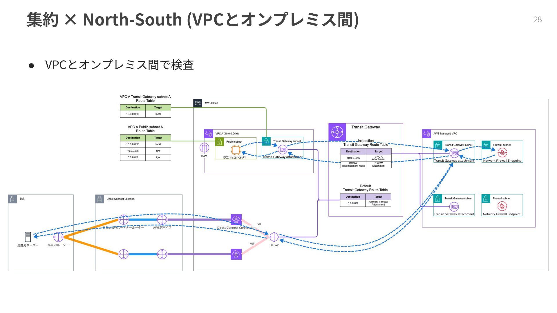 集約 × North-South (VPCとオンプレミス間) 28 • VPCとオンプレミス間で検査