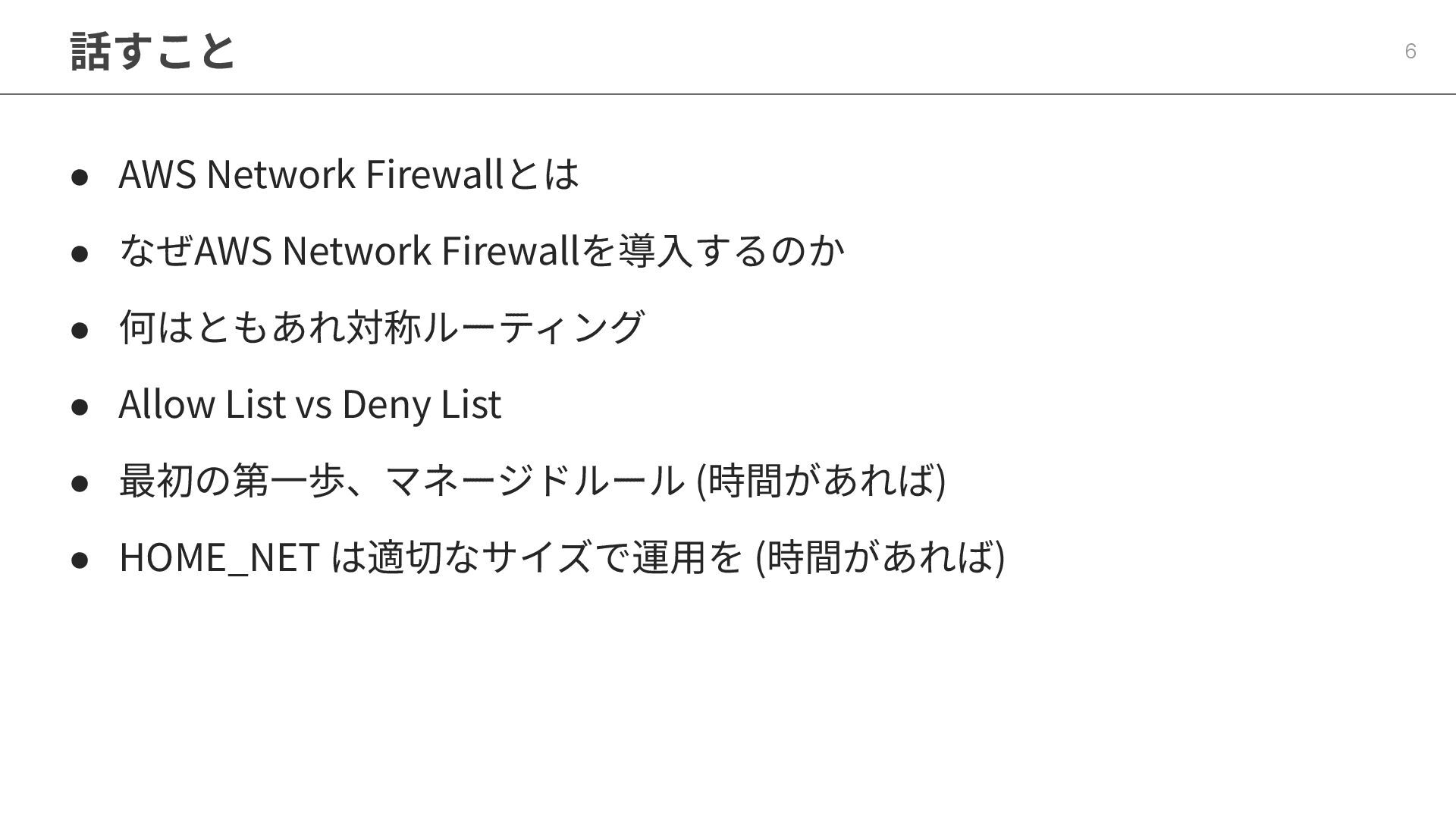 話すこと 6 • AWS Network Firewallとは • なぜAWS Network Firewallを導⼊するのか