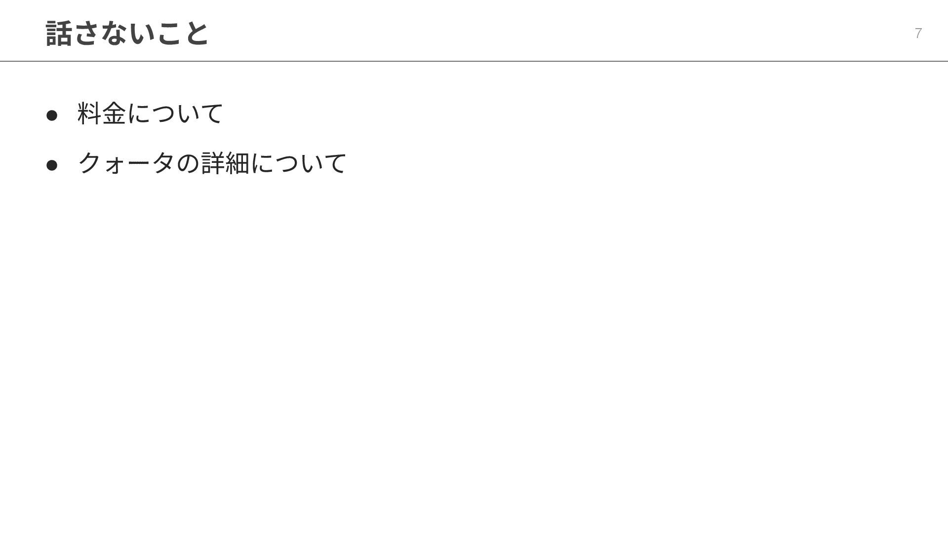 話さないこと 7 • 料⾦について • クォータの詳細について