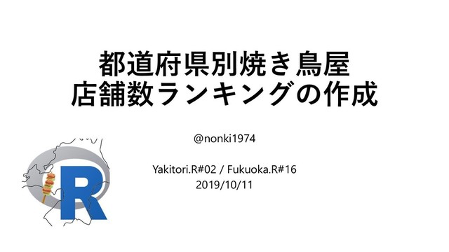 都道府県別焼き鳥屋 店舗数ランキングの作成 @nonki1974 Yakitori.R#02 / Fukuoka.R#16 2019/10/11