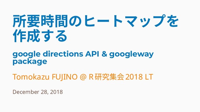 所要時間のヒートマップを 作成する google directions API & googleway package Tomokazu FUJINO
