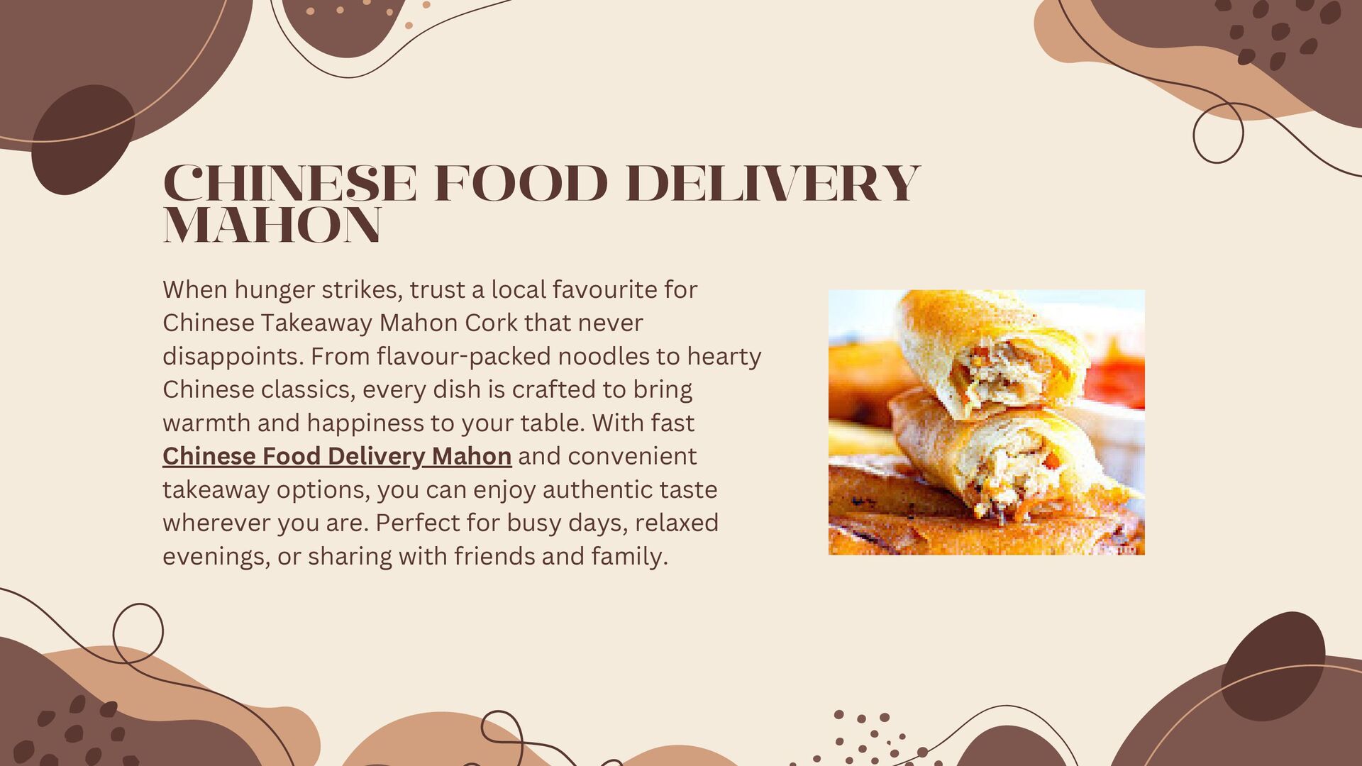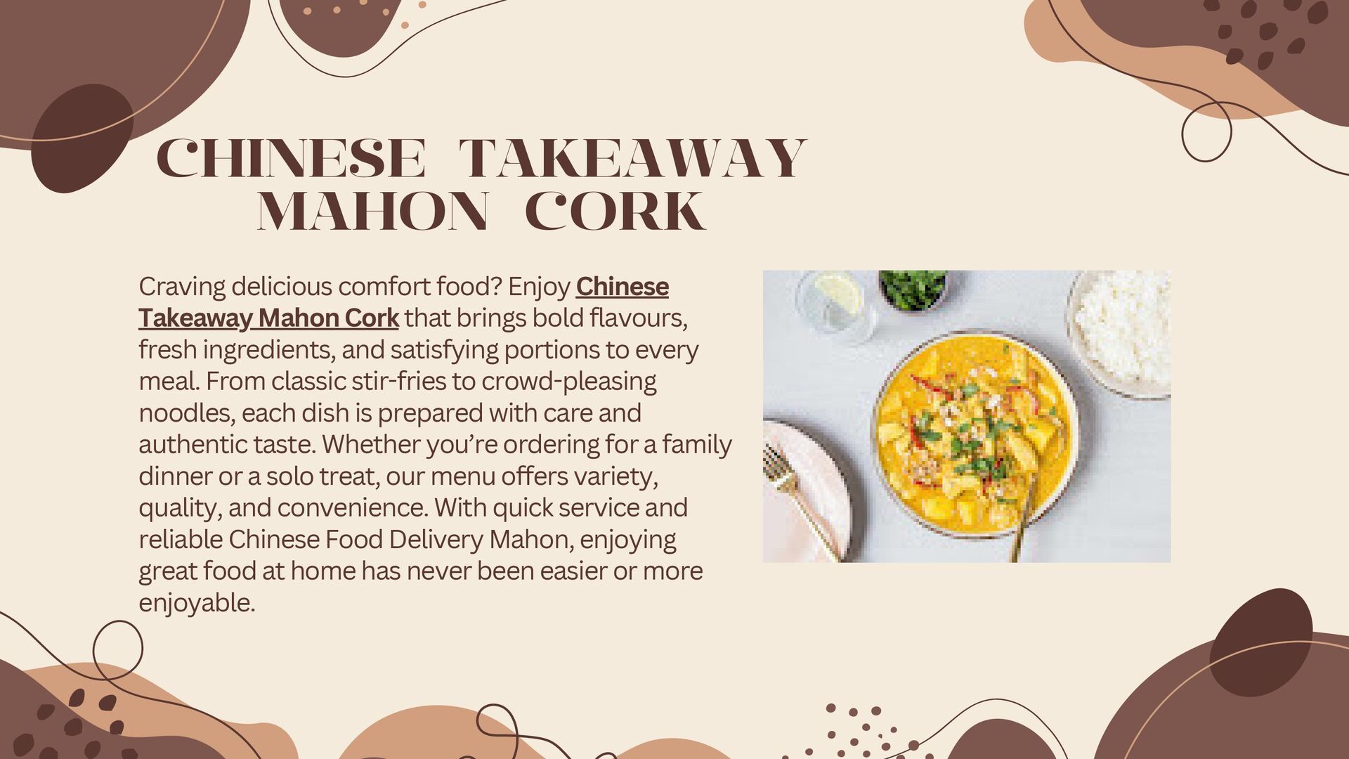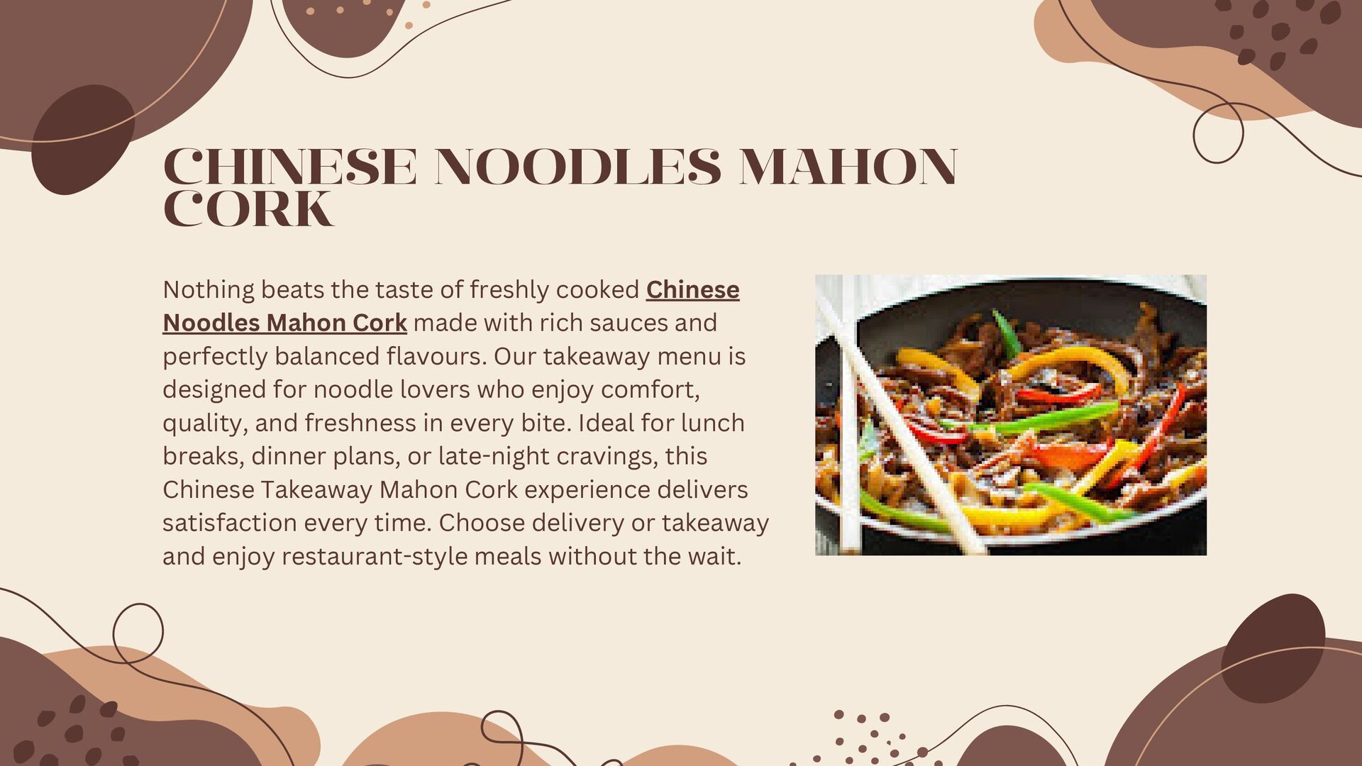 Enjoy flavour-packed meals with Chinese Takeaway Mahon Cork, serving freshly cooked favourites made with care. From comforting Chinese Noodles Mahon Cork to quick and reliable Chinese Food Delivery Mahon, every dish brings authentic taste and satisfaction—perfect for busy days, relaxed evenings, and sharing great food with family or friends.