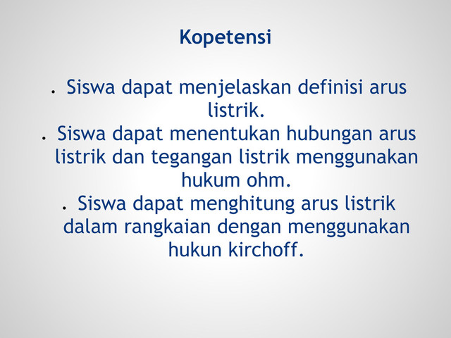 dapat menentukan hubungan arus listrik dan tegangan listrik menggunakan hukum ohm. • Siswa dapat menghitung arus listrik dalam rangkaian dengan menggunakan hukun kirchoff.