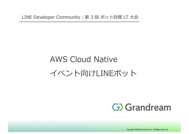 Copyright ©2019 Grandream Inc. All Rights Reserved. LINE Developer Community︓第