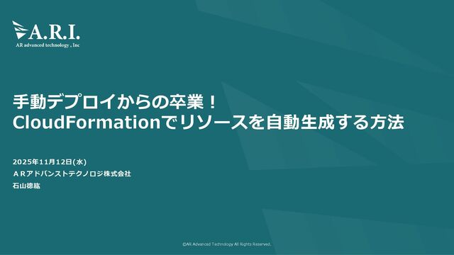 1 ©AR Advanced Technology All Rights Reserved. 手動デプロイからの卒業! CloudFormationでリソースを自動生成する方法 2025年11月12日(水)