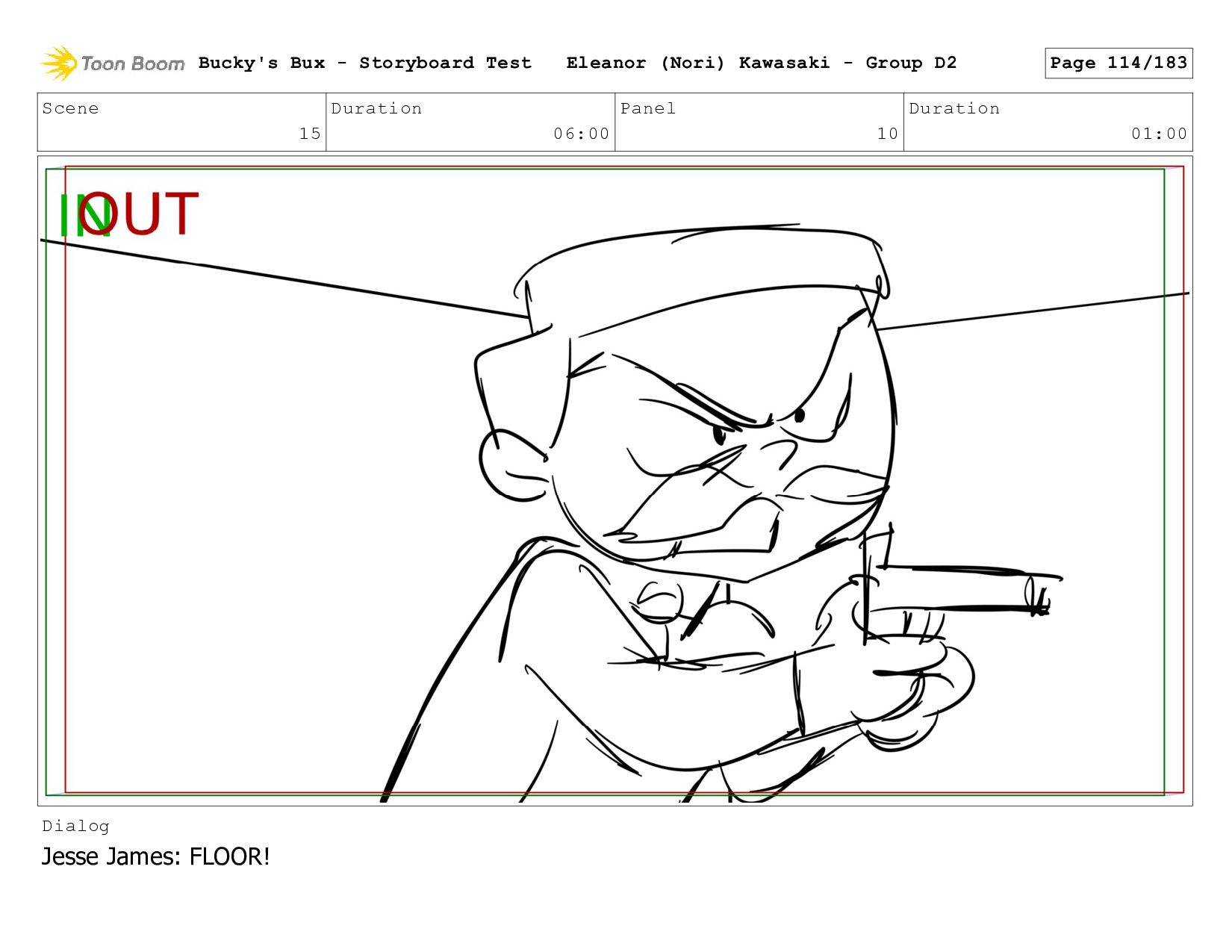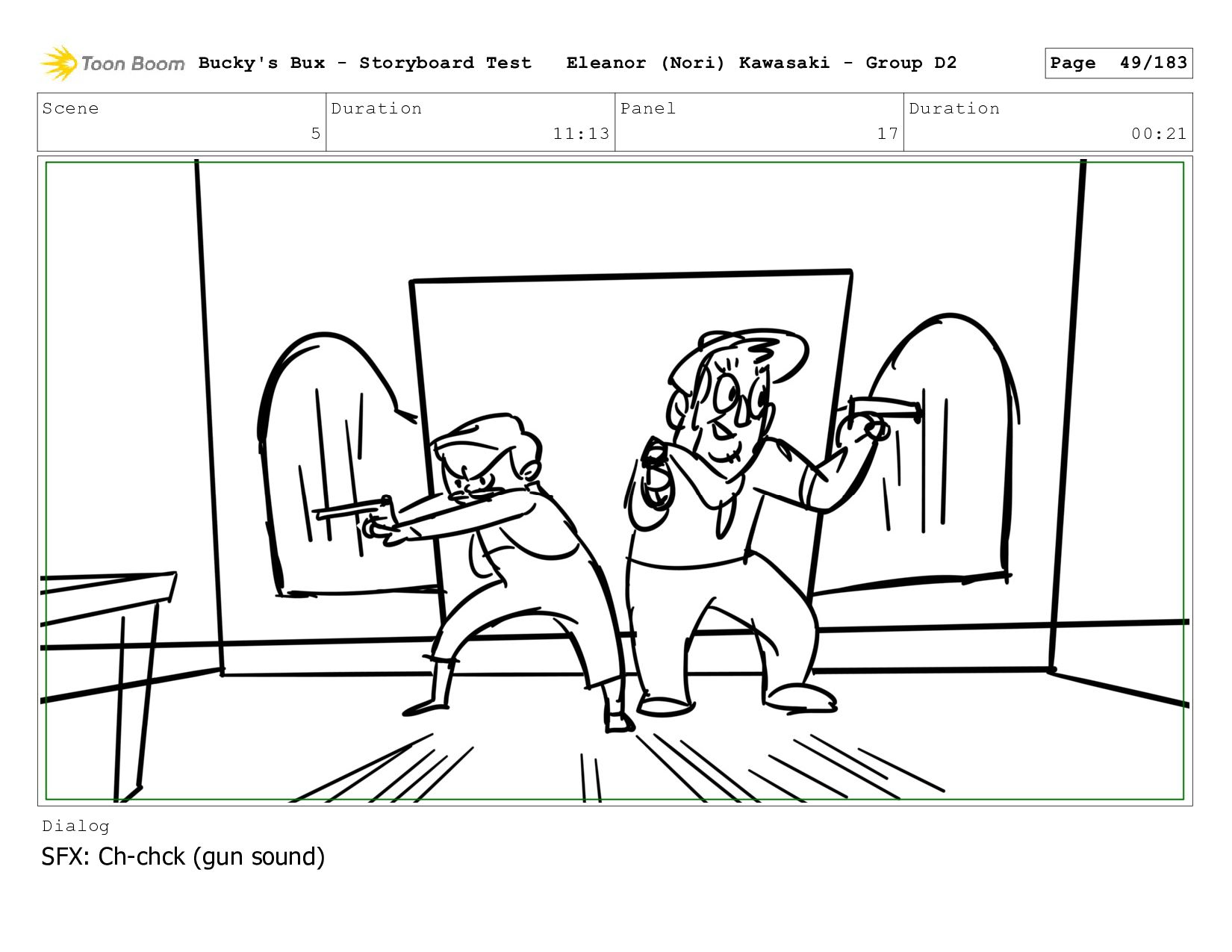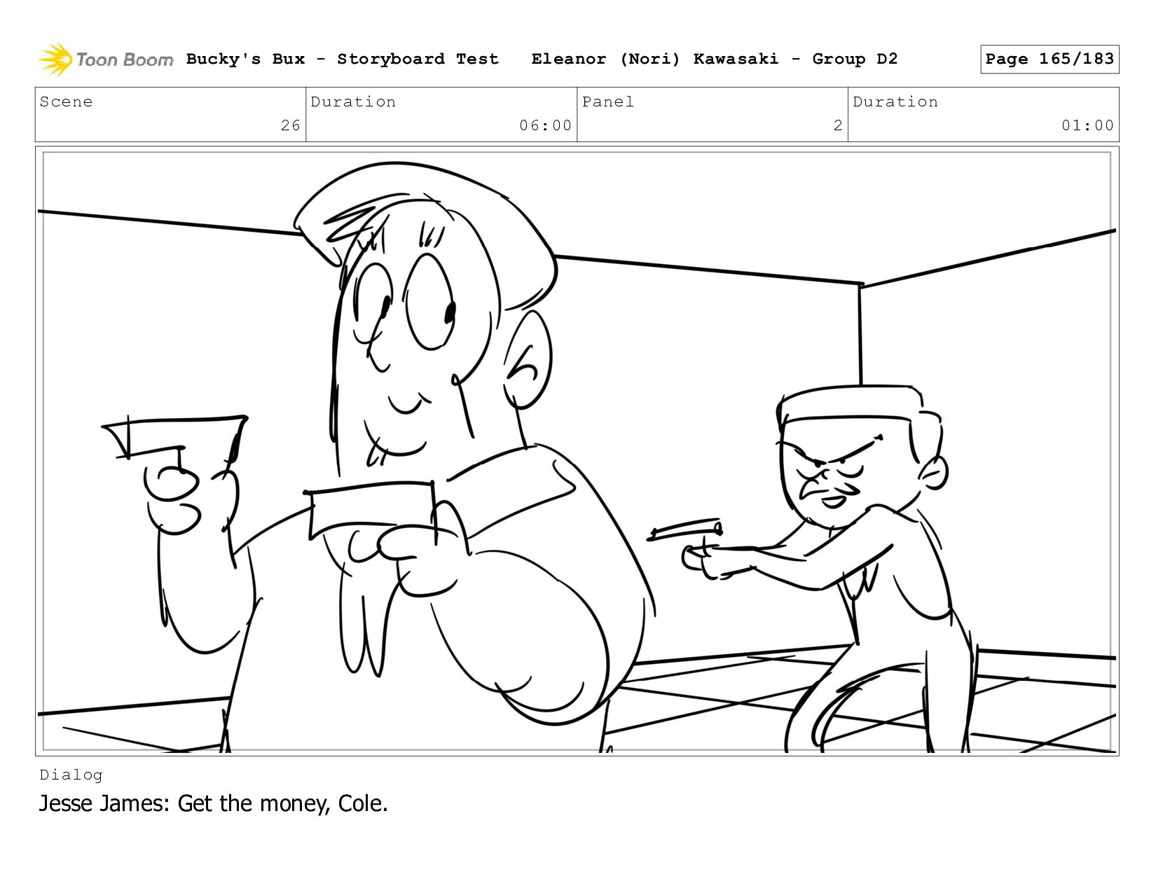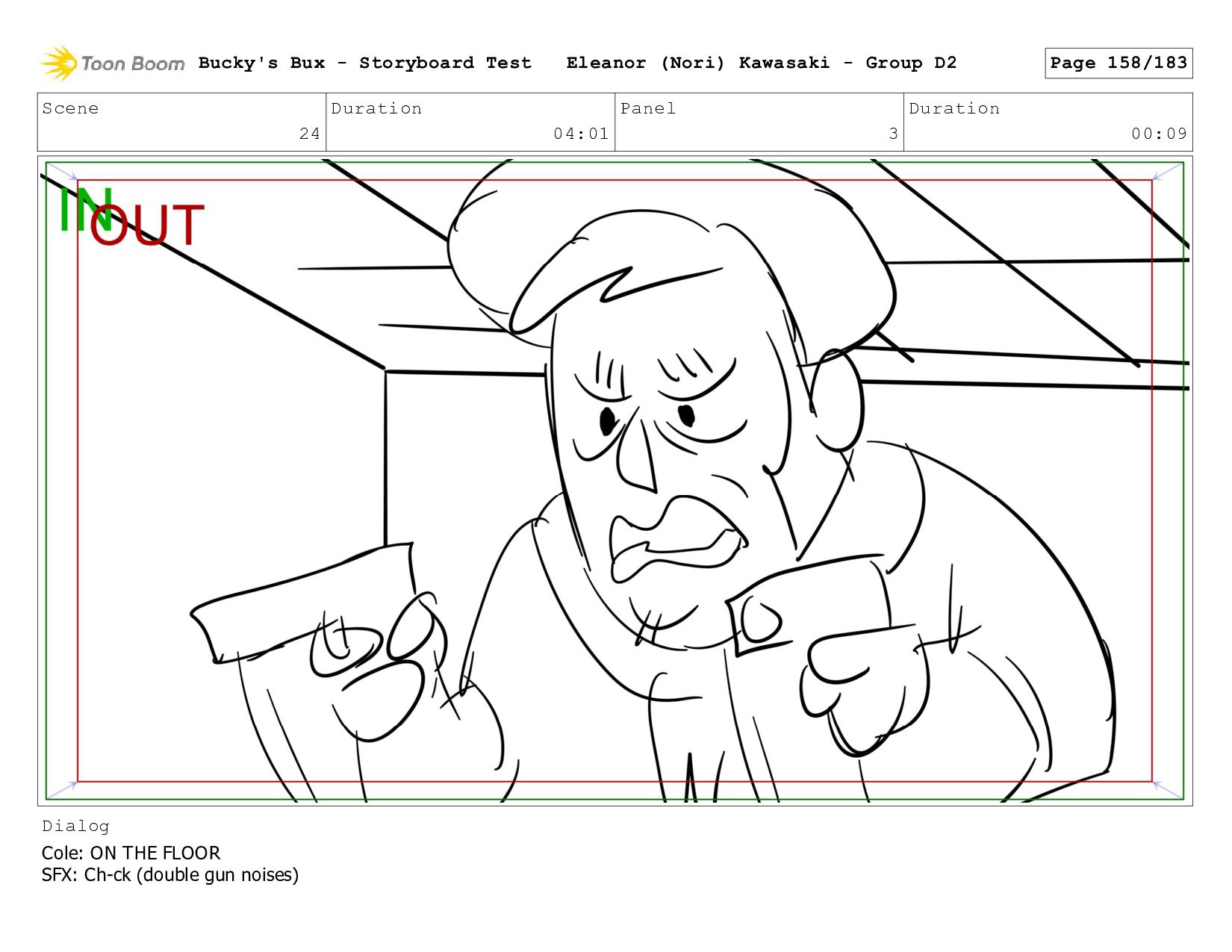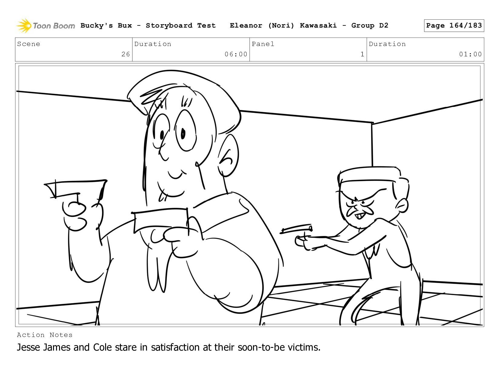 Now with a gun pointed directly at them, Bucky, the boys, and Mr. Fargo flinch in fear. Bucky's Bux - Storyboard Test Eleanor (Nori) Kawasaki - Group D2 Page 127/183