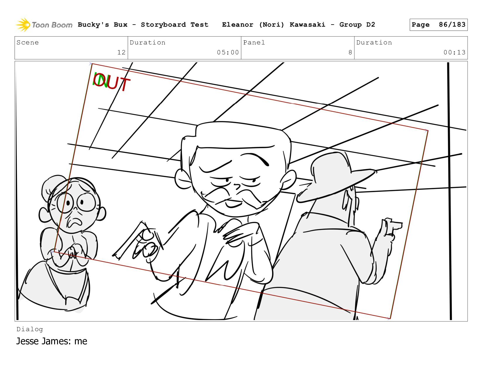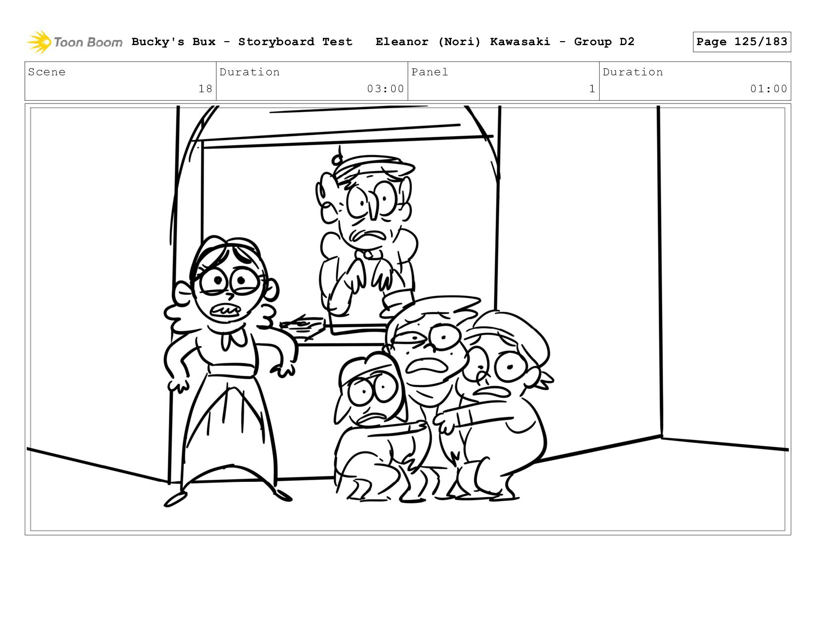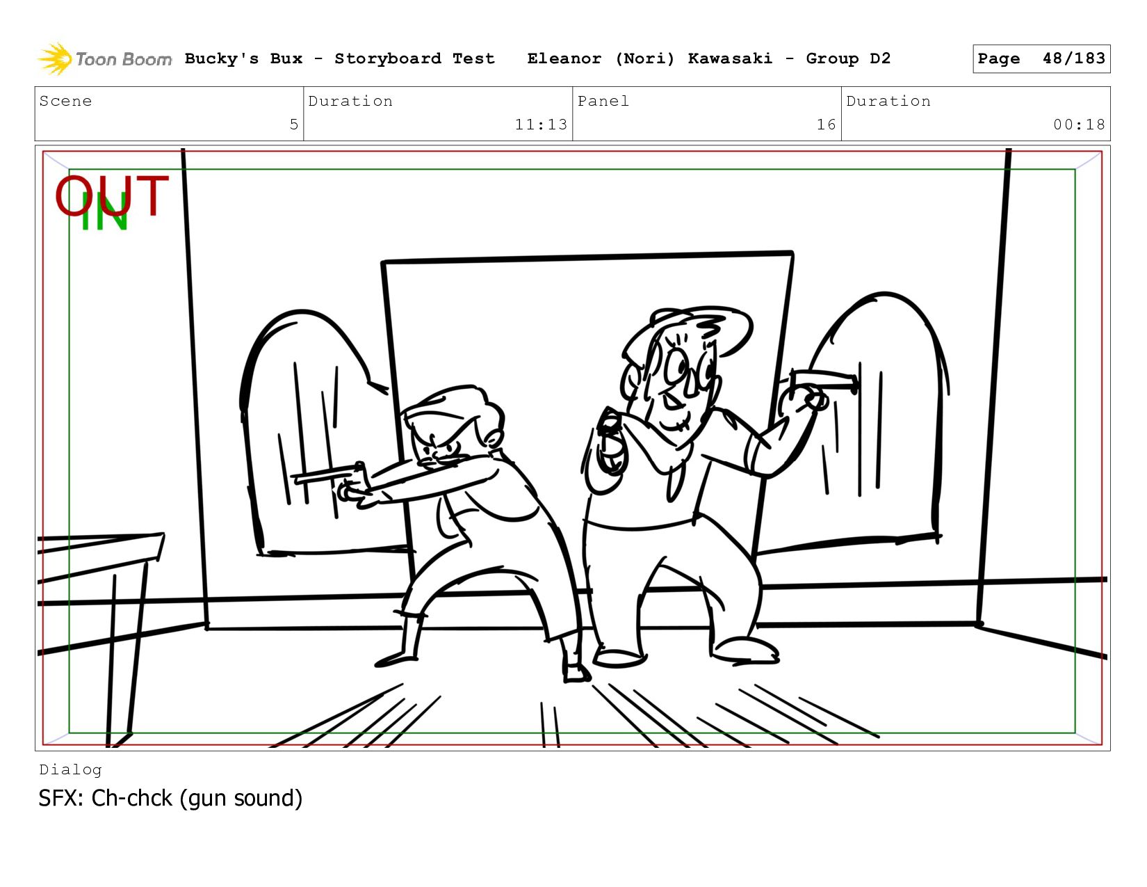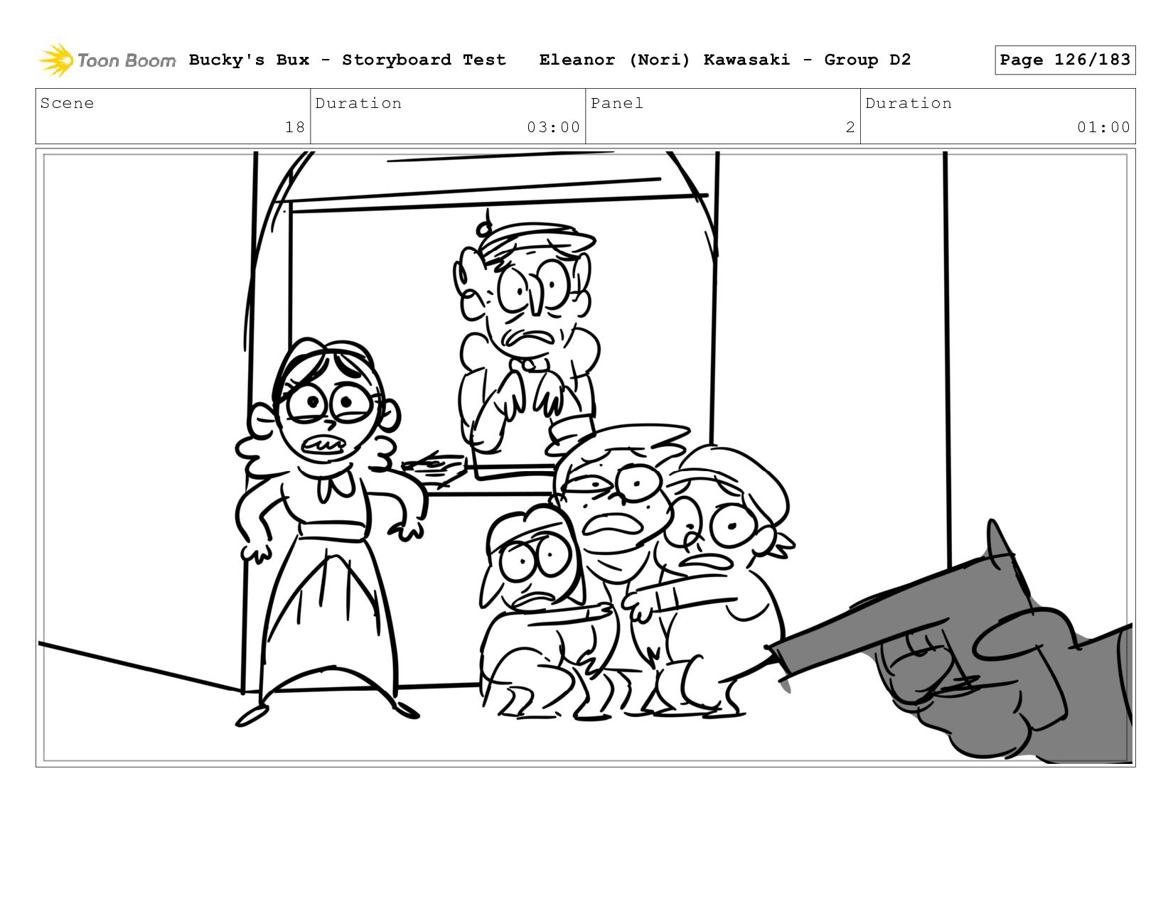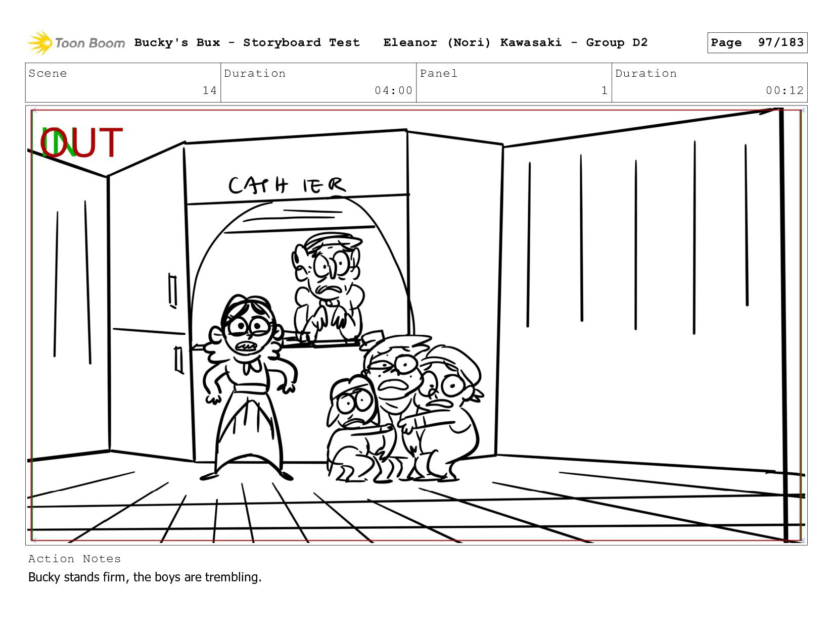 Now with a gun pointed directly at them, Bucky, the boys, and Mr. Fargo flinch in fear. Bucky's Bux - Storyboard Test Eleanor (Nori) Kawasaki - Group D2 Page 127/183