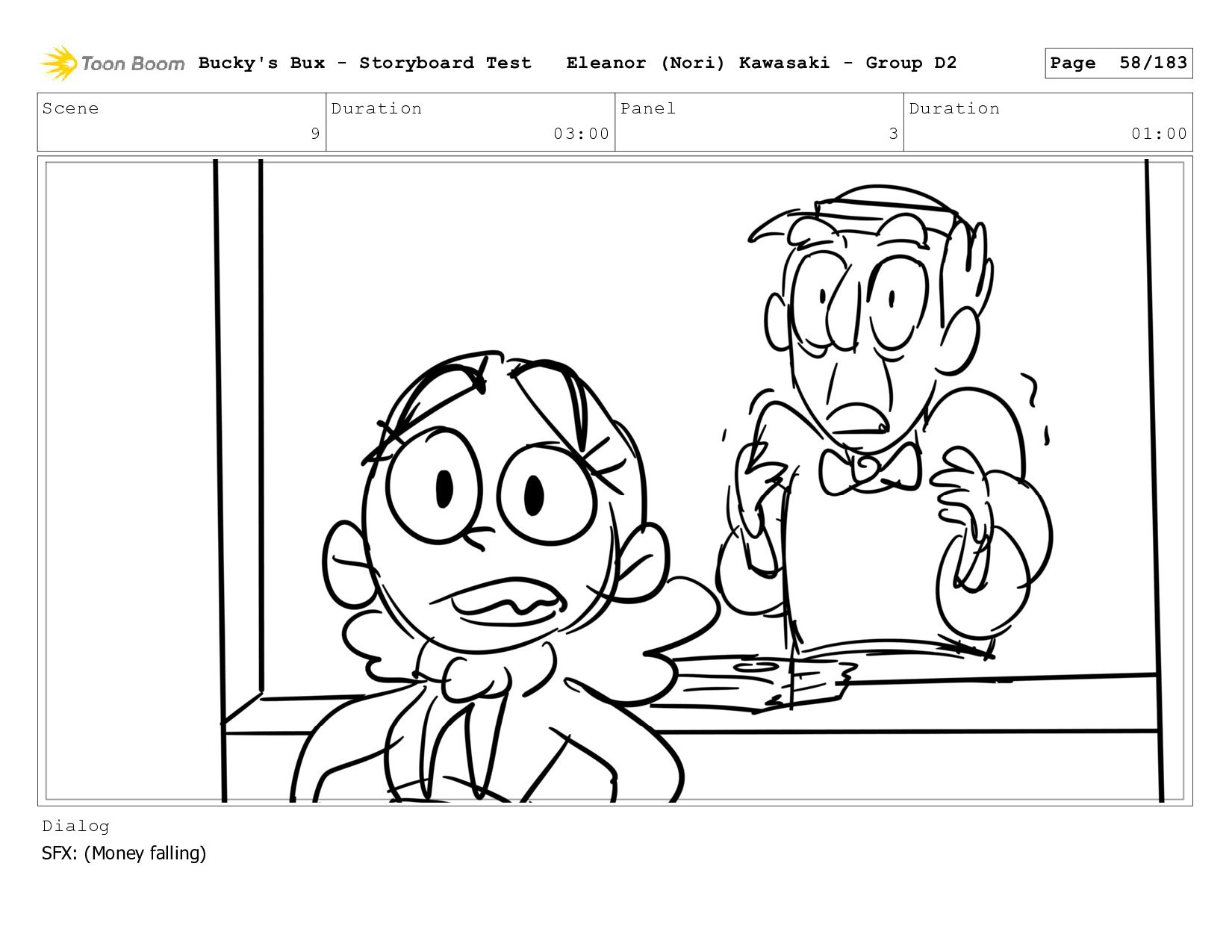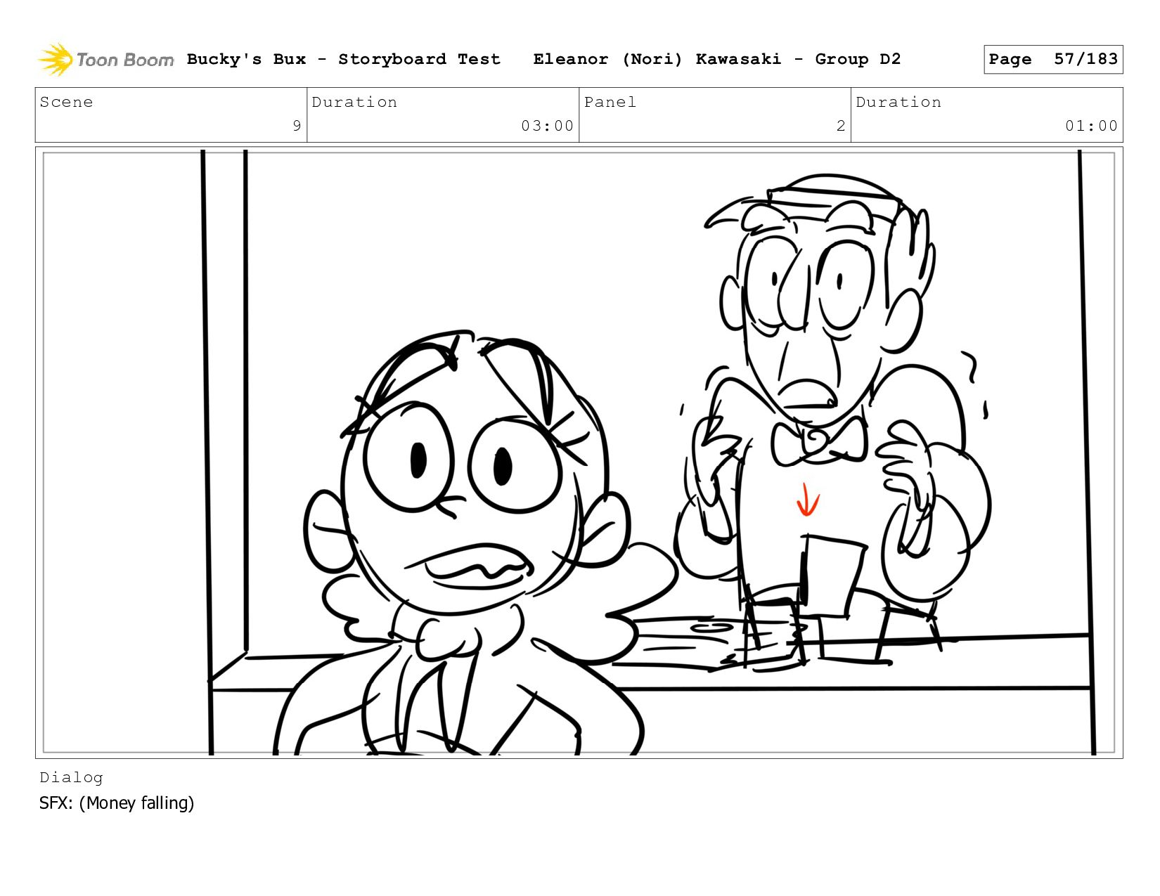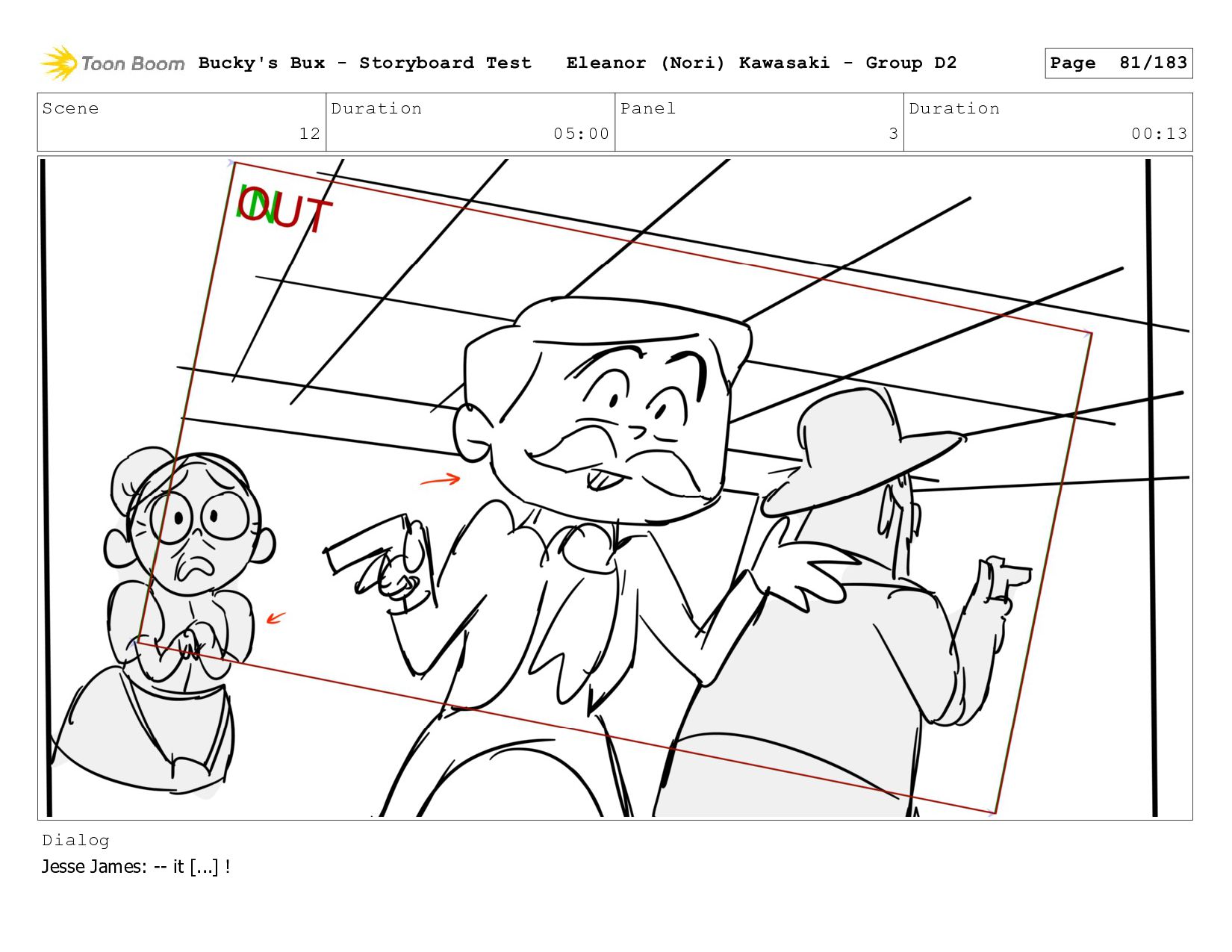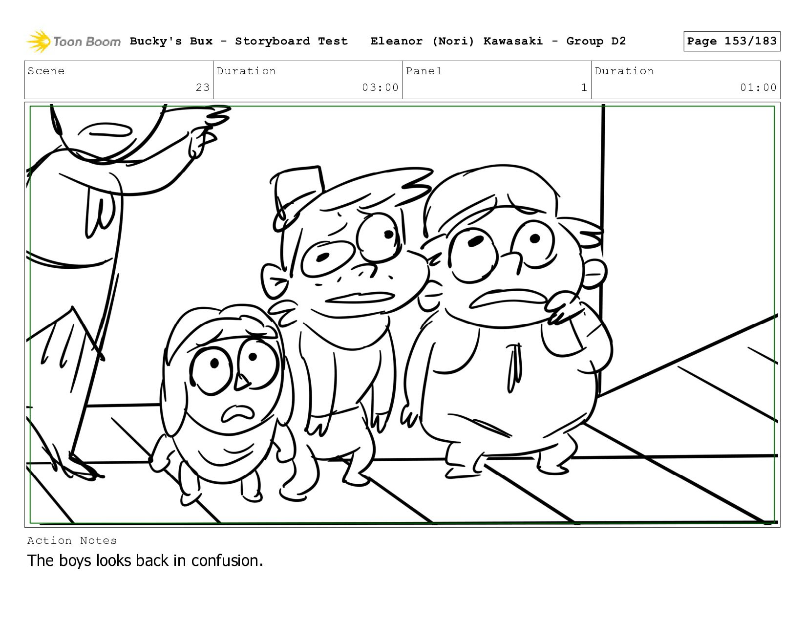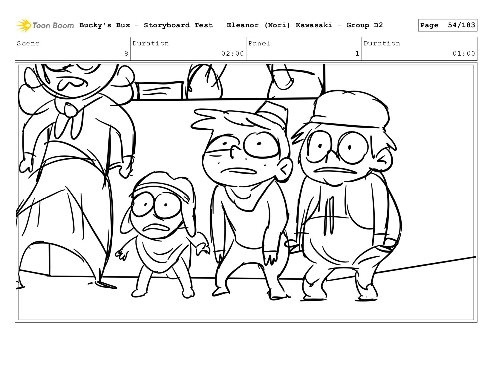 Now with a gun pointed directly at them, Bucky, the boys, and Mr. Fargo flinch in fear. Bucky's Bux - Storyboard Test Eleanor (Nori) Kawasaki - Group D2 Page 127/183