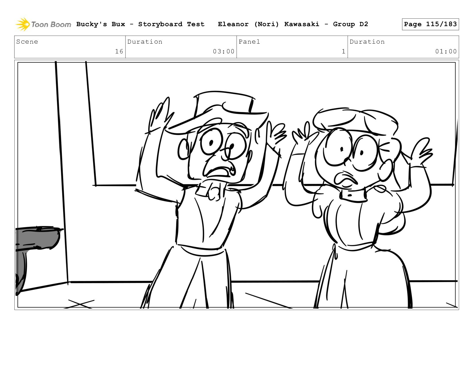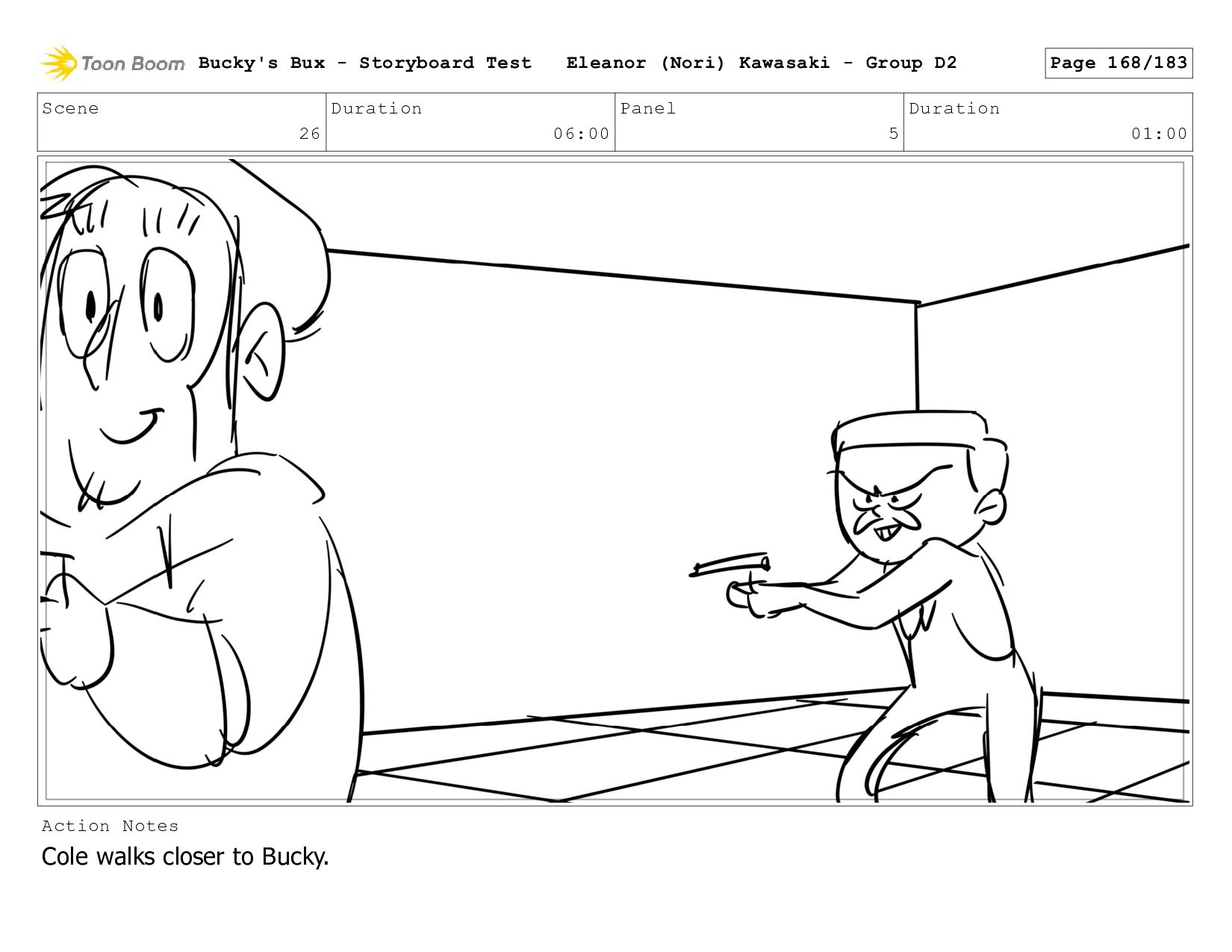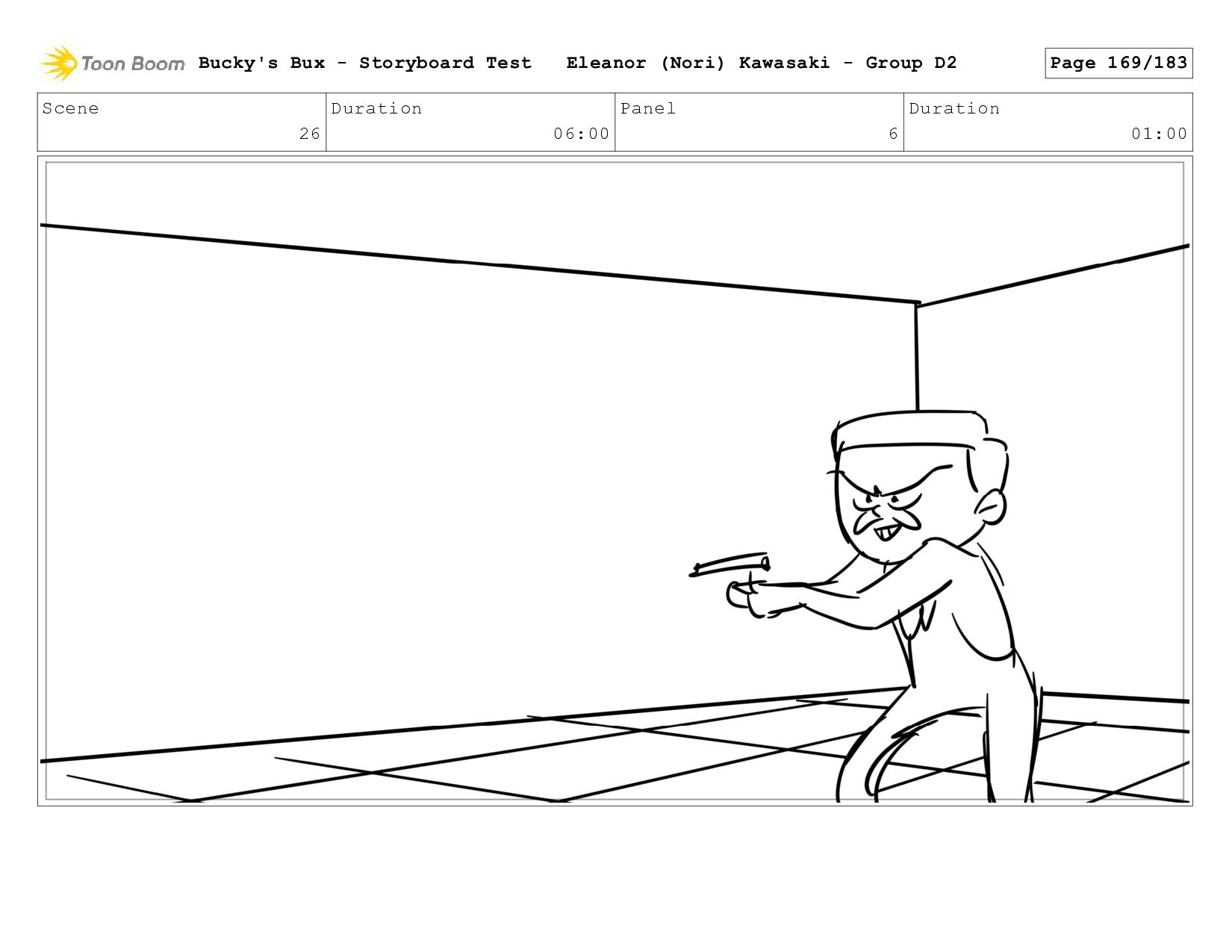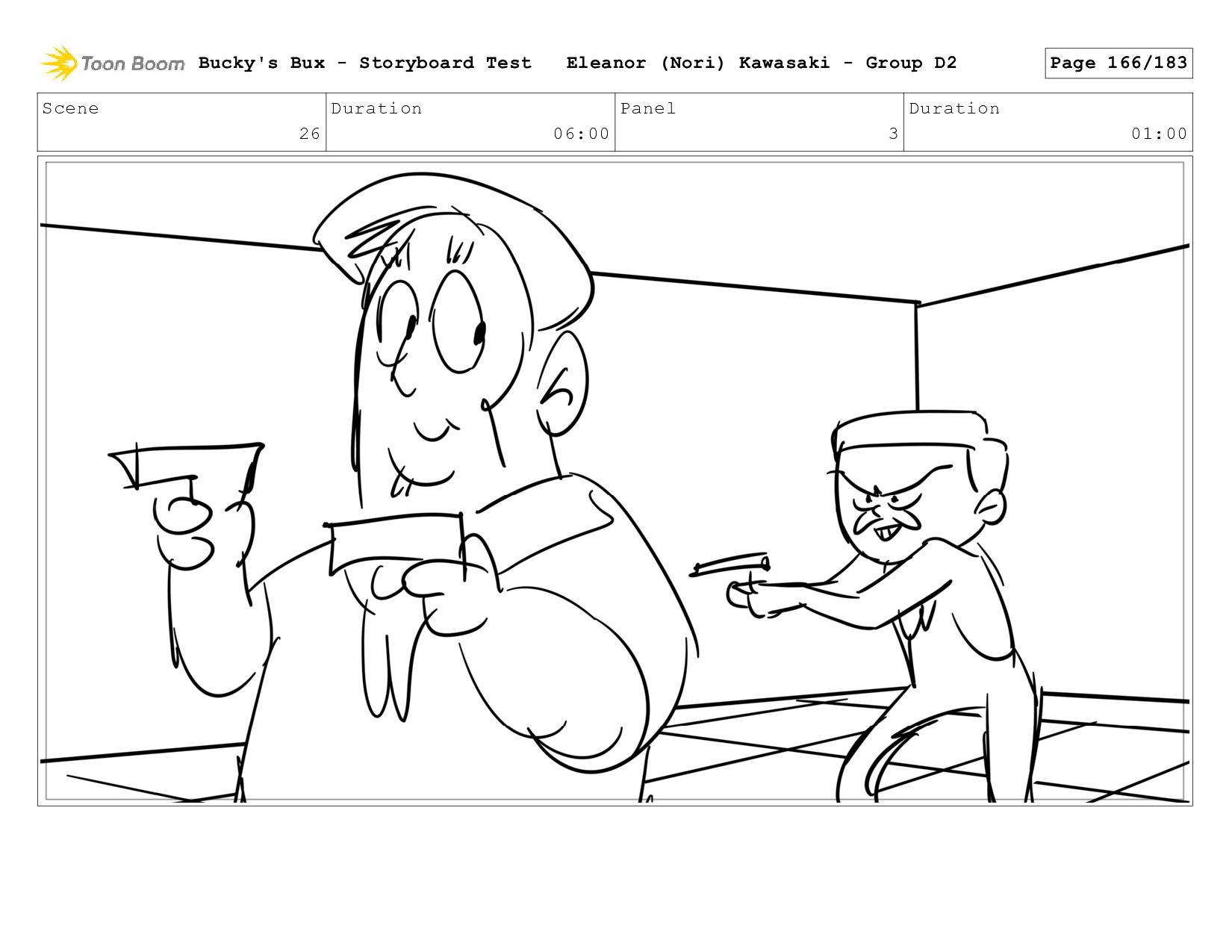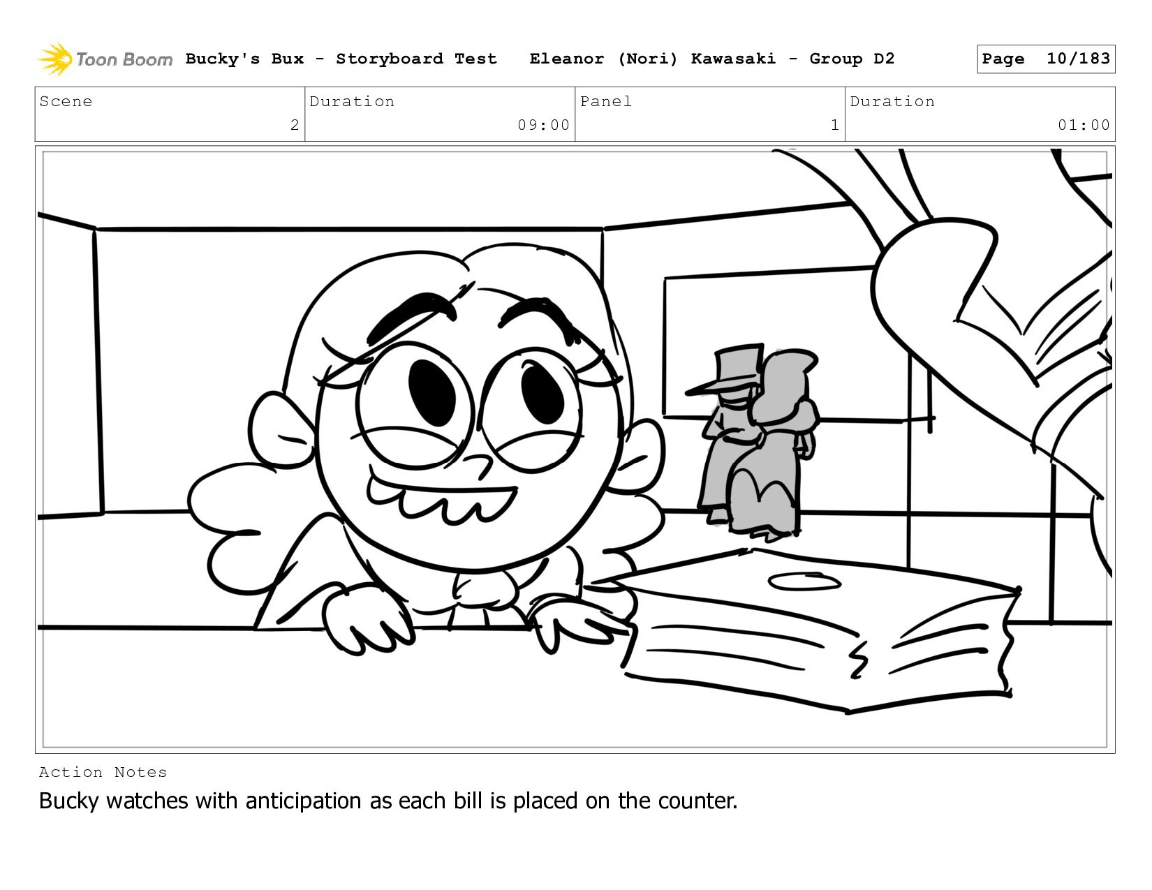 Now with a gun pointed directly at them, Bucky, the boys, and Mr. Fargo flinch in fear. Bucky's Bux - Storyboard Test Eleanor (Nori) Kawasaki - Group D2 Page 127/183