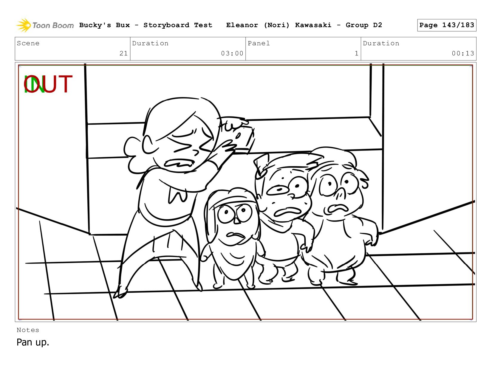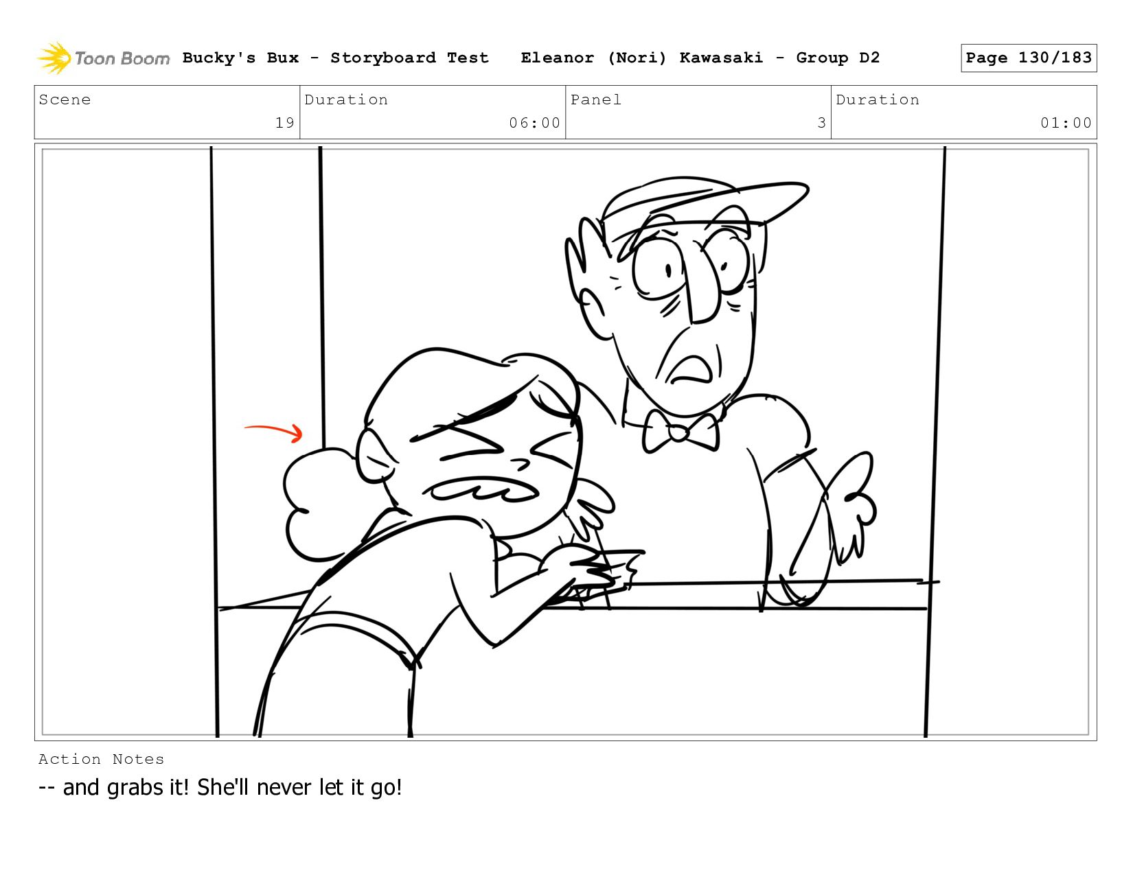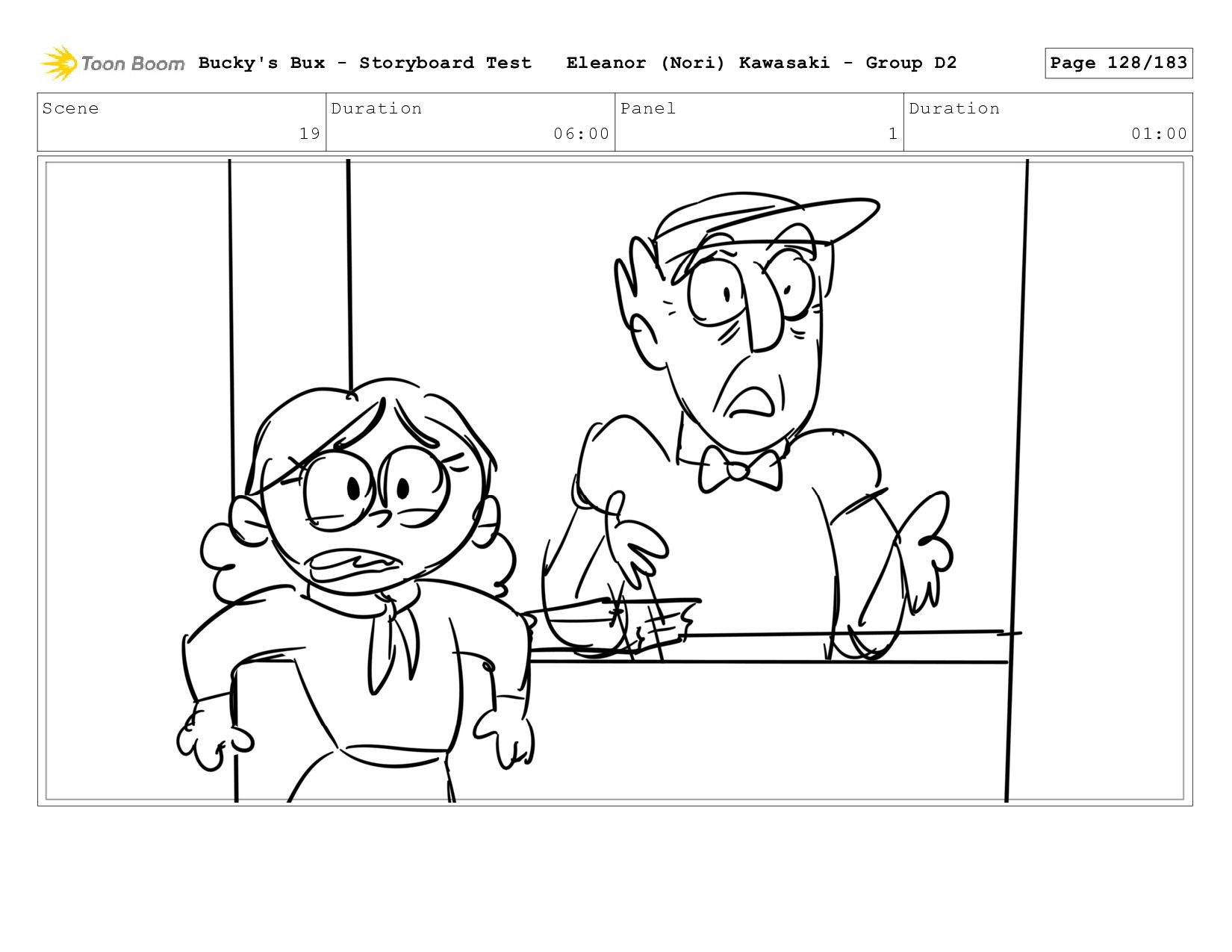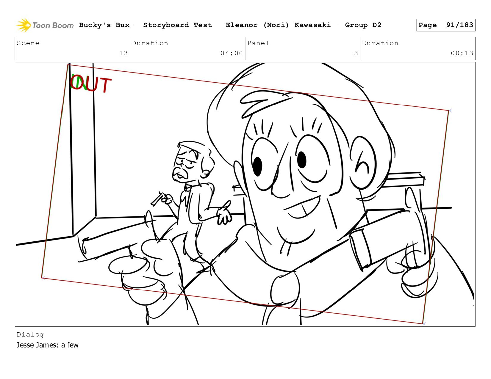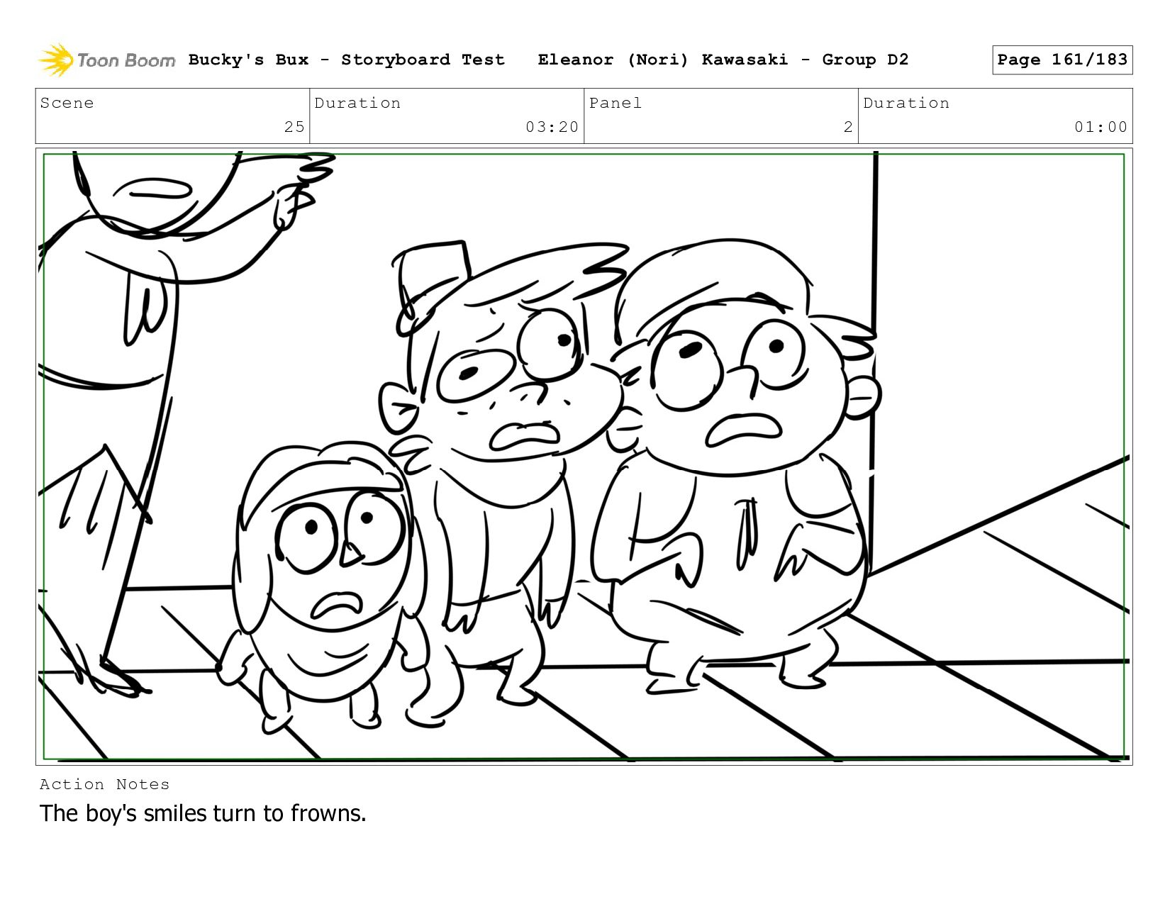 Now with a gun pointed directly at them, Bucky, the boys, and Mr. Fargo flinch in fear. Bucky's Bux - Storyboard Test Eleanor (Nori) Kawasaki - Group D2 Page 127/183