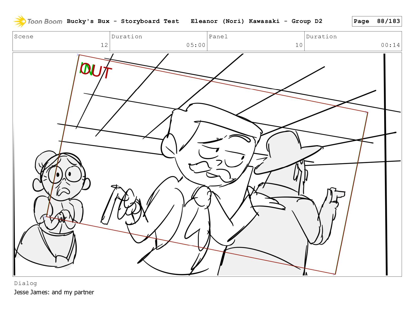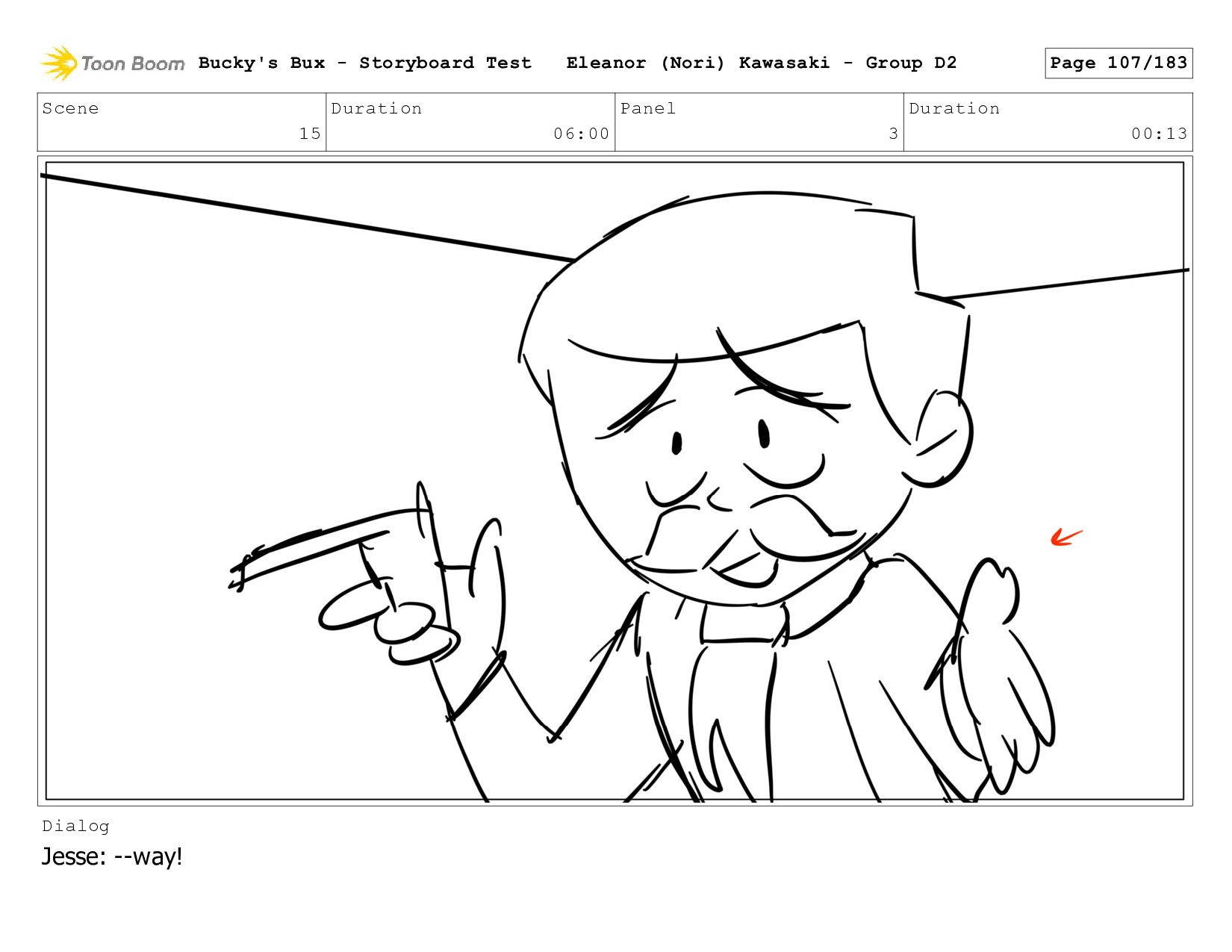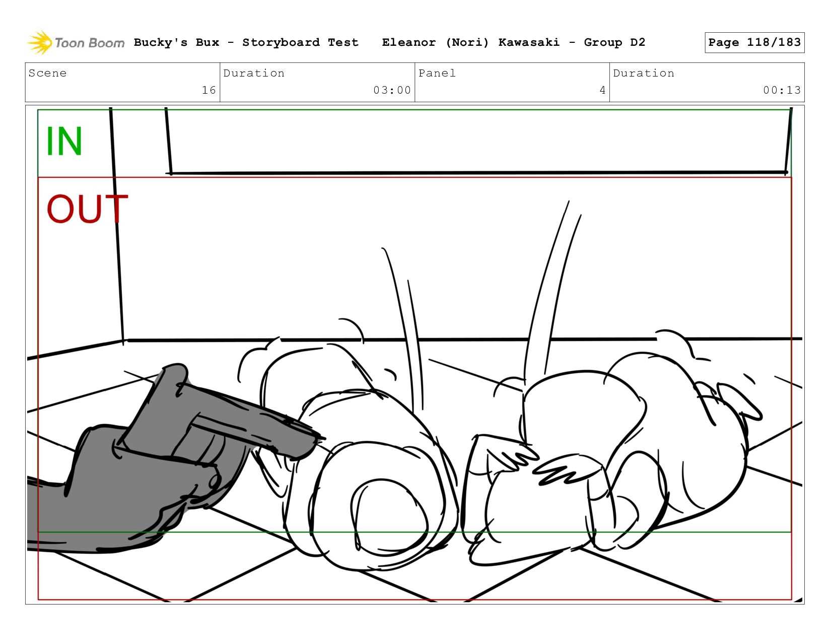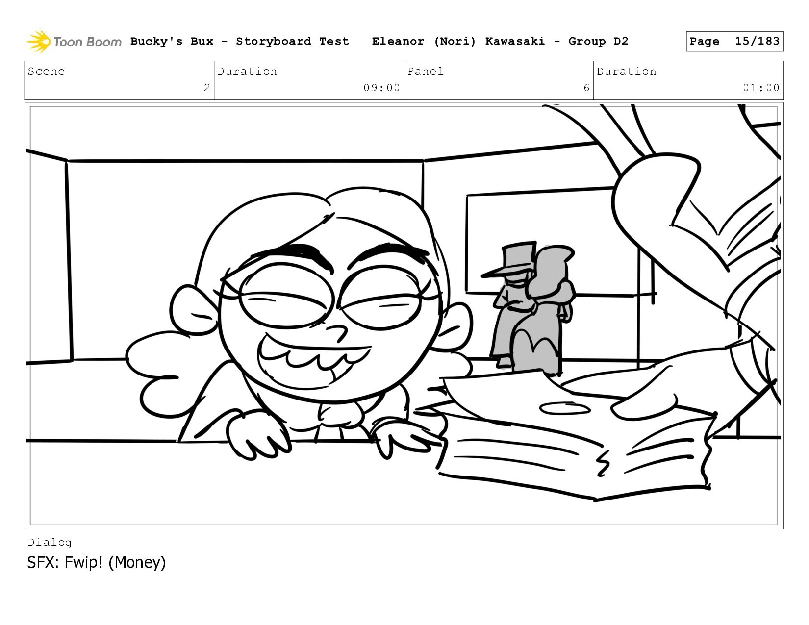 Now with a gun pointed directly at them, Bucky, the boys, and Mr. Fargo flinch in fear. Bucky's Bux - Storyboard Test Eleanor (Nori) Kawasaki - Group D2 Page 127/183