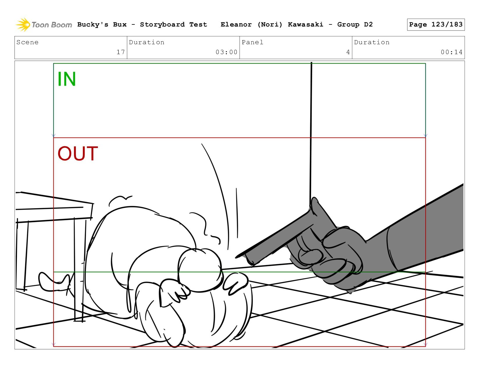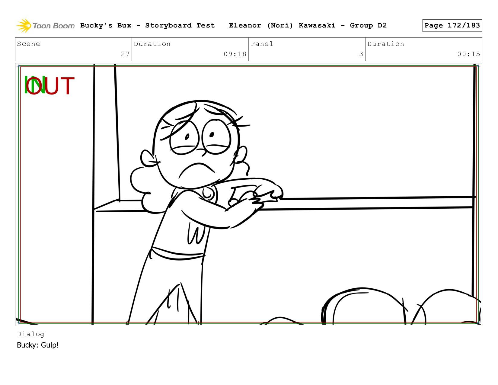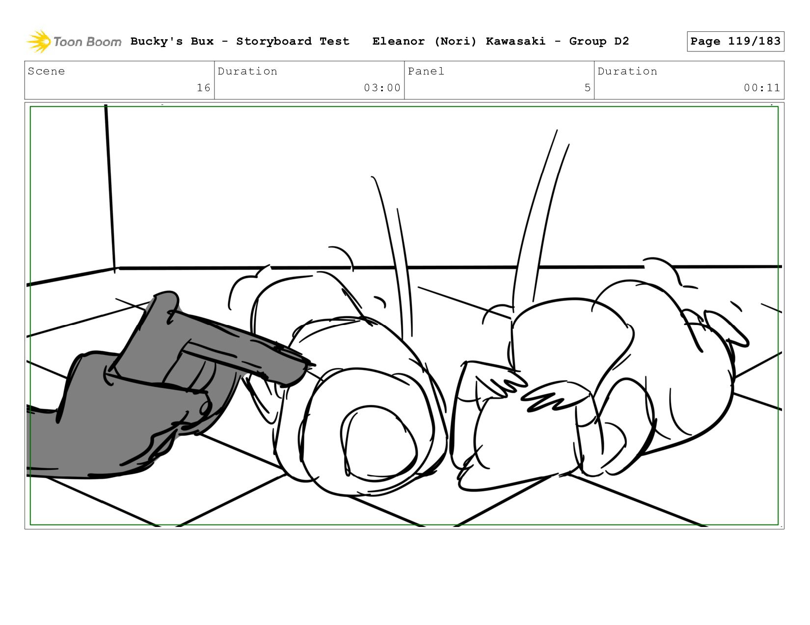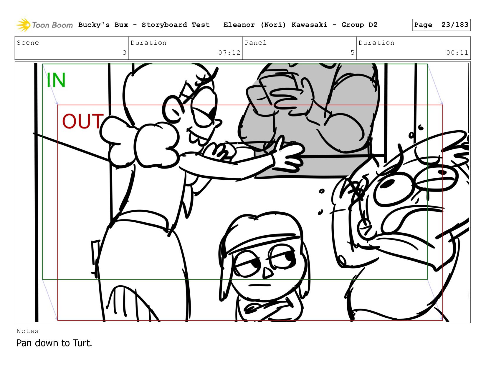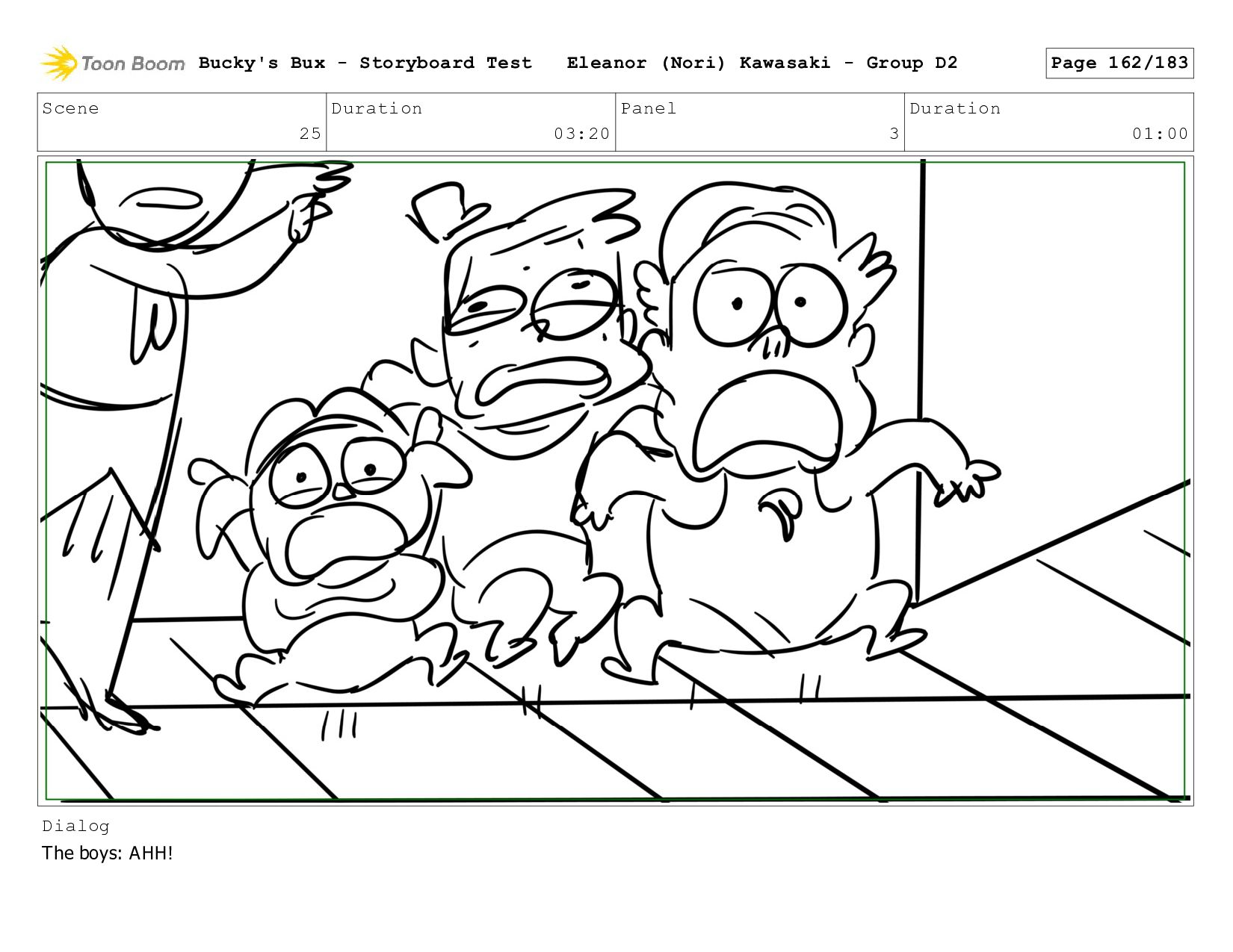 Now with a gun pointed directly at them, Bucky, the boys, and Mr. Fargo flinch in fear. Bucky's Bux - Storyboard Test Eleanor (Nori) Kawasaki - Group D2 Page 127/183