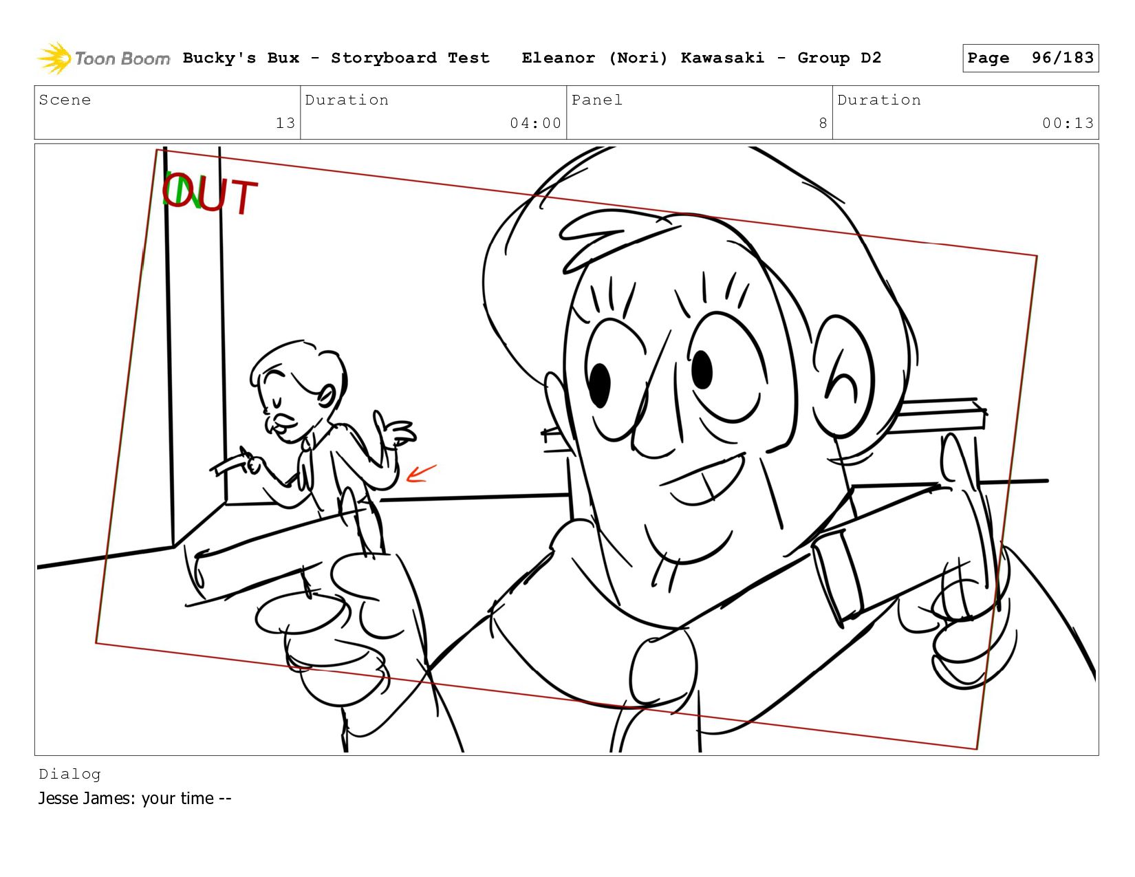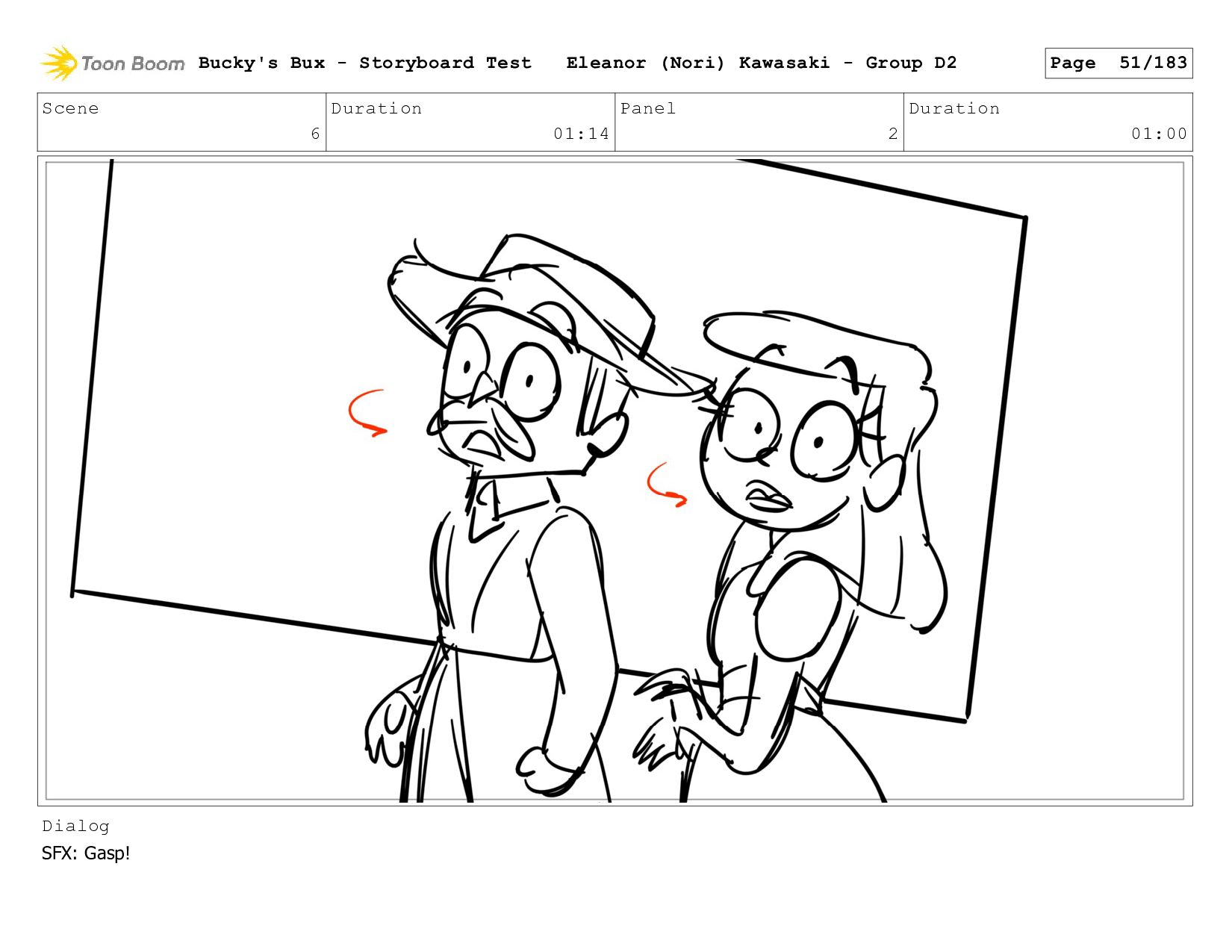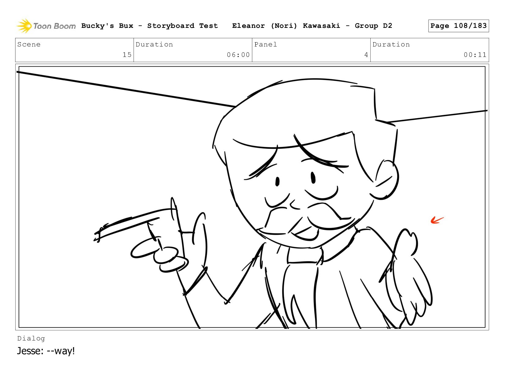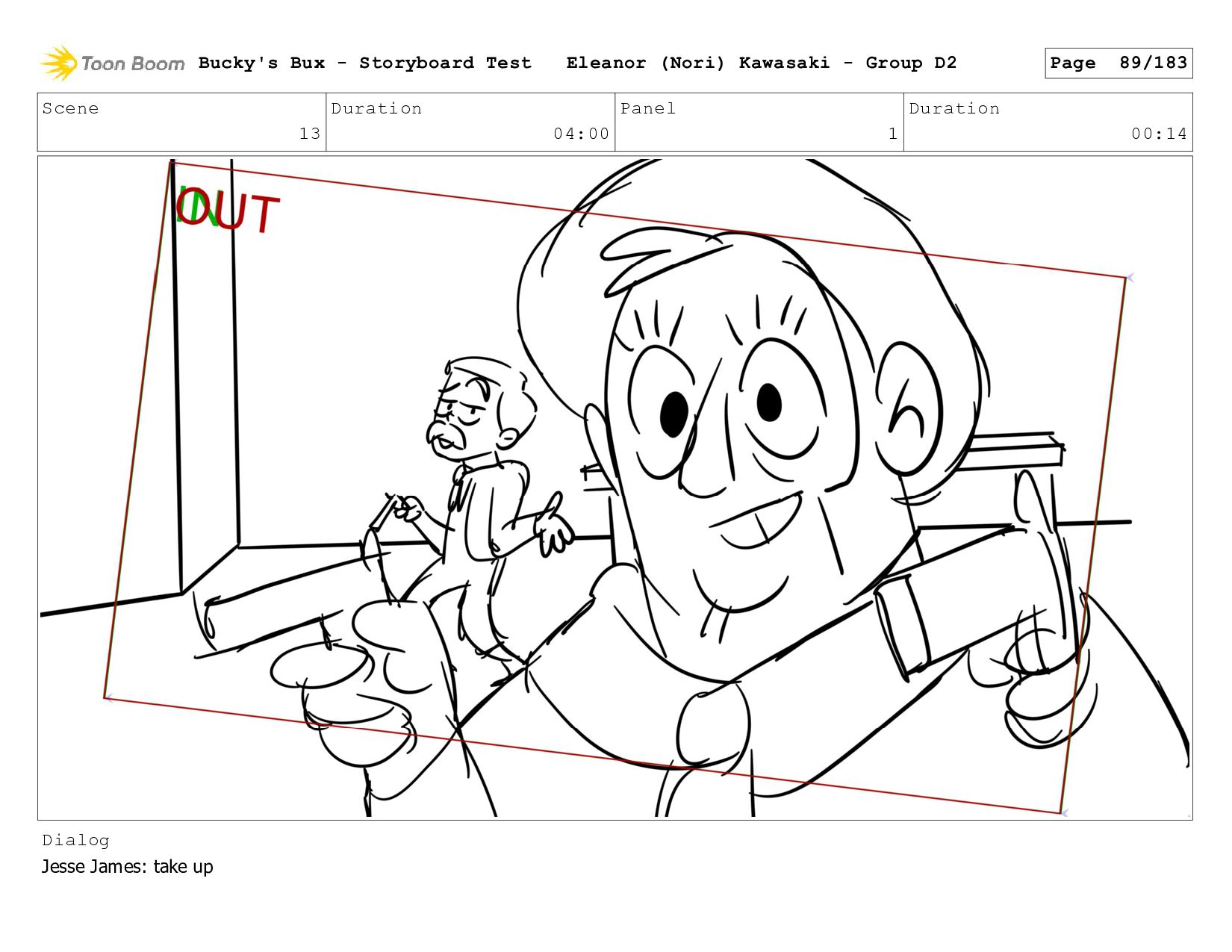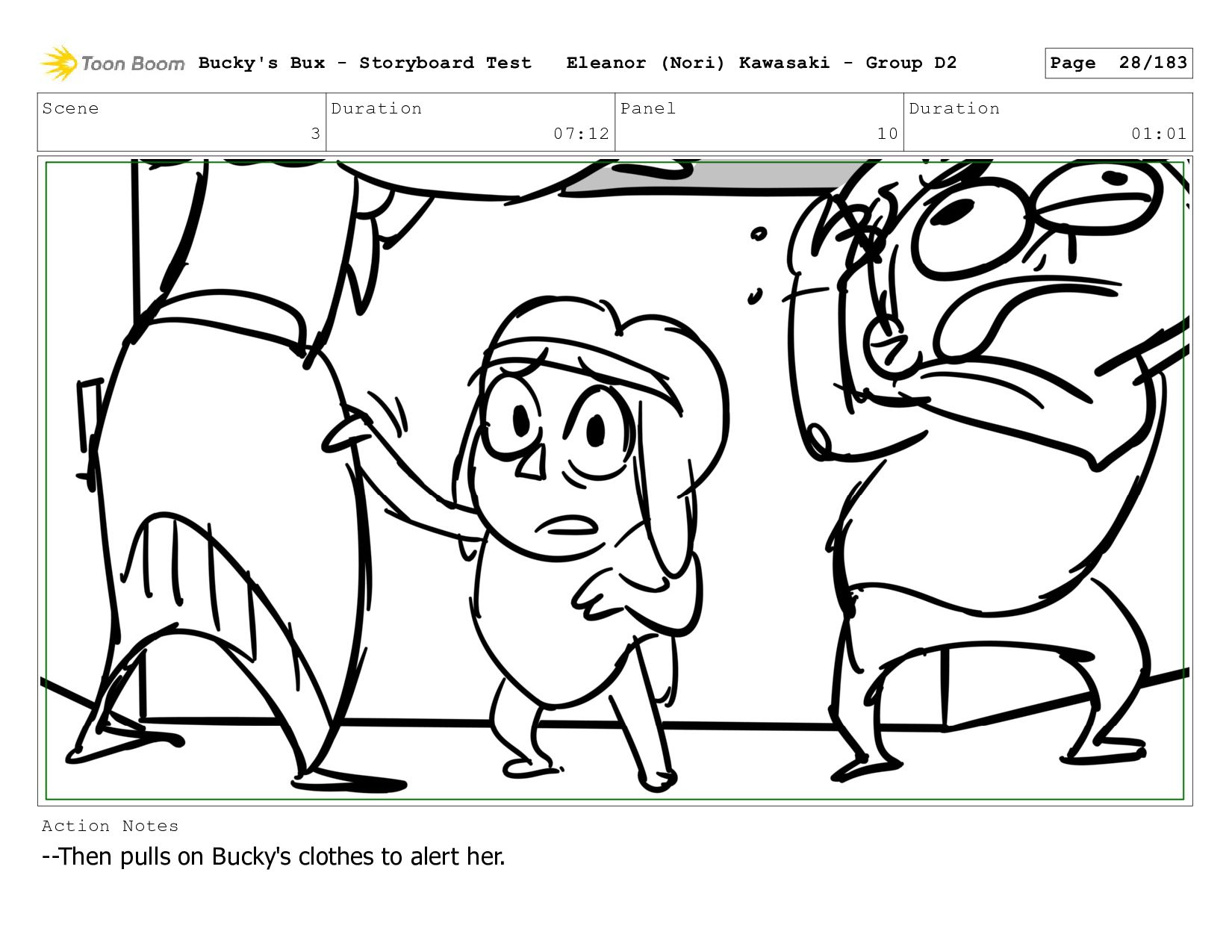 Now with a gun pointed directly at them, Bucky, the boys, and Mr. Fargo flinch in fear. Bucky's Bux - Storyboard Test Eleanor (Nori) Kawasaki - Group D2 Page 127/183
