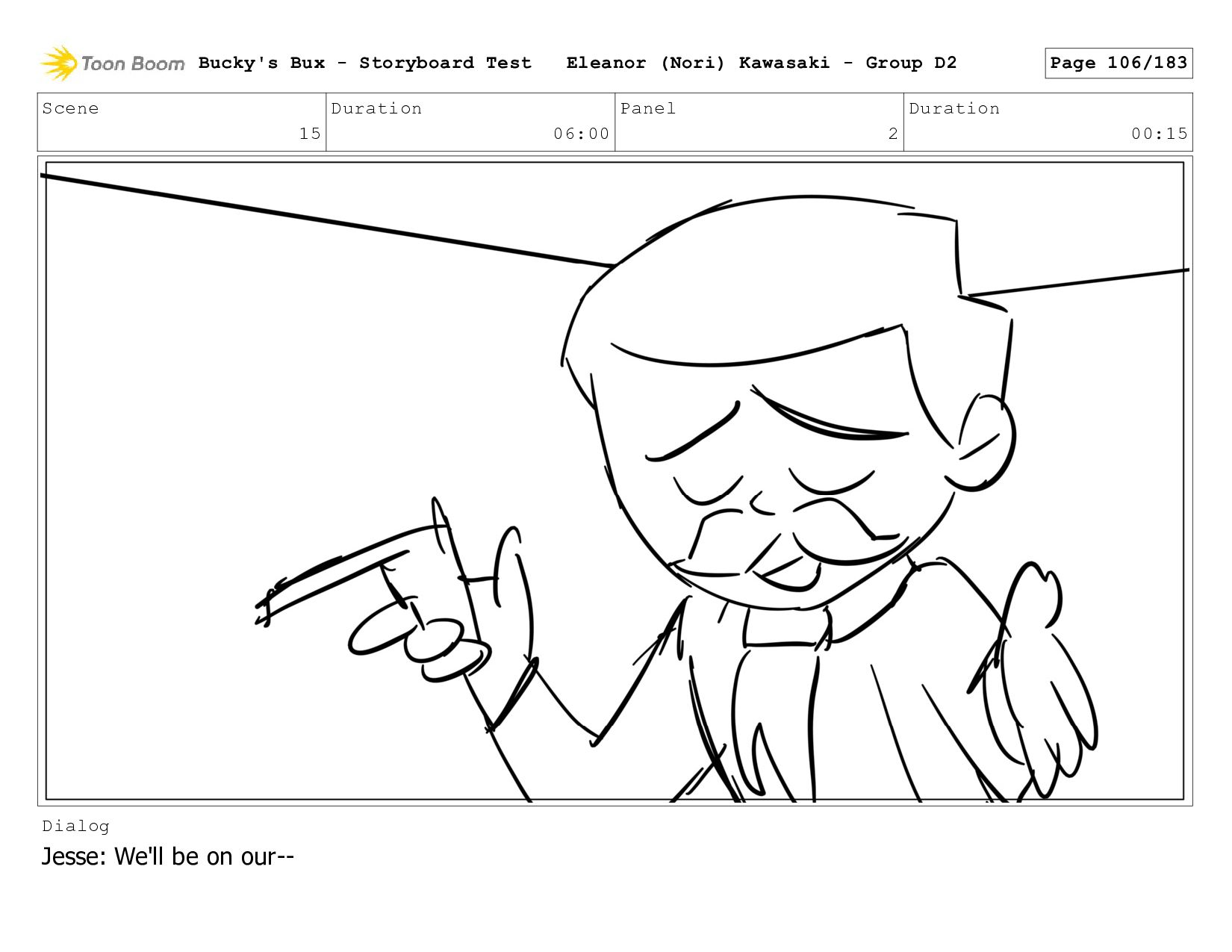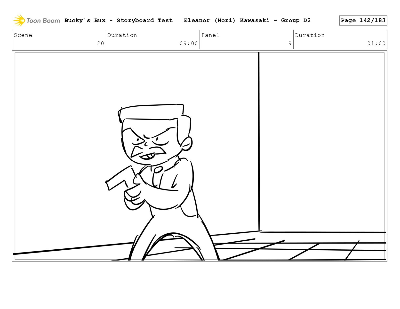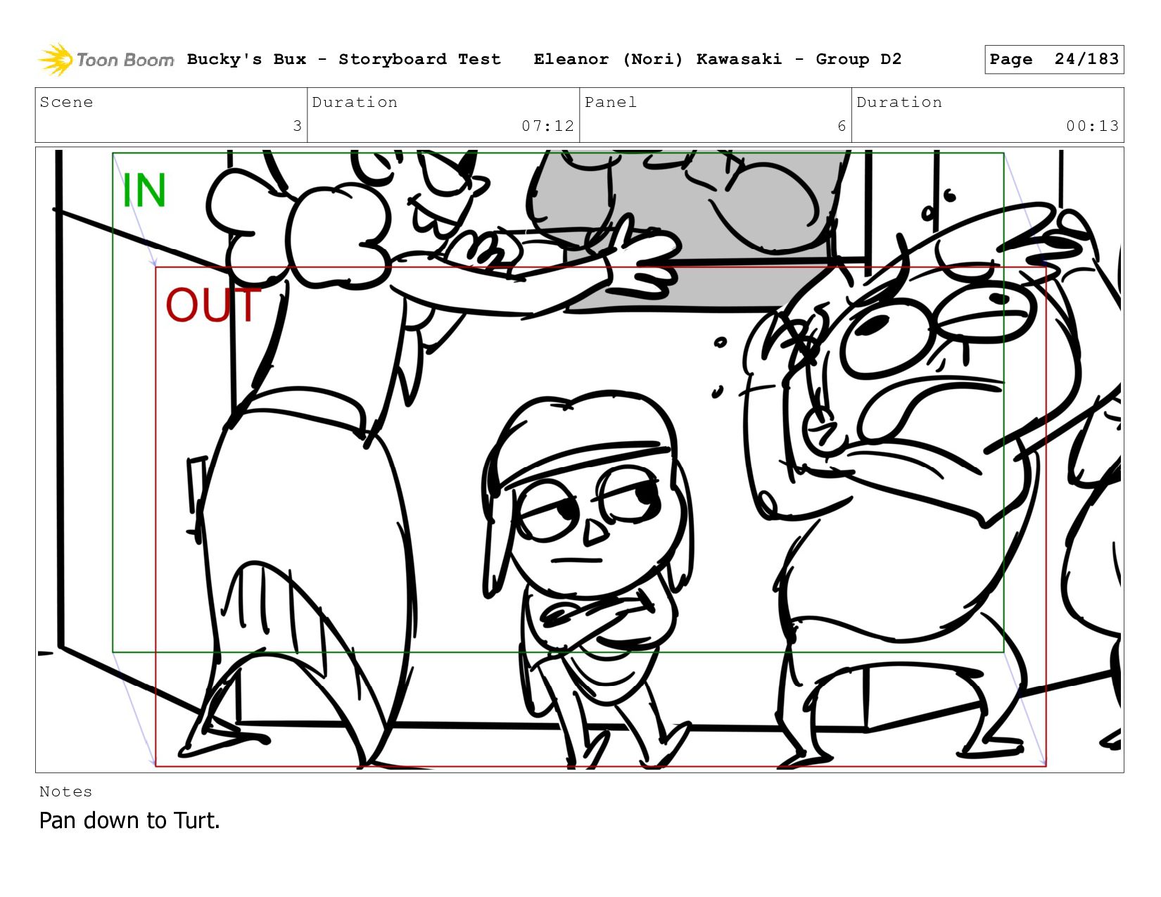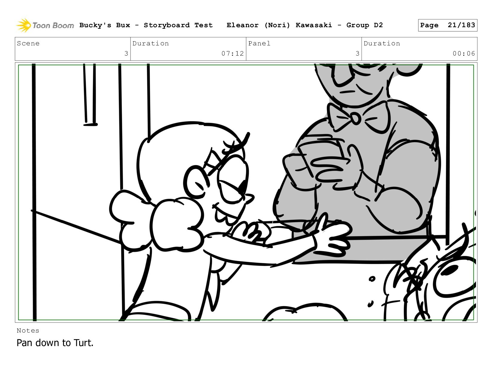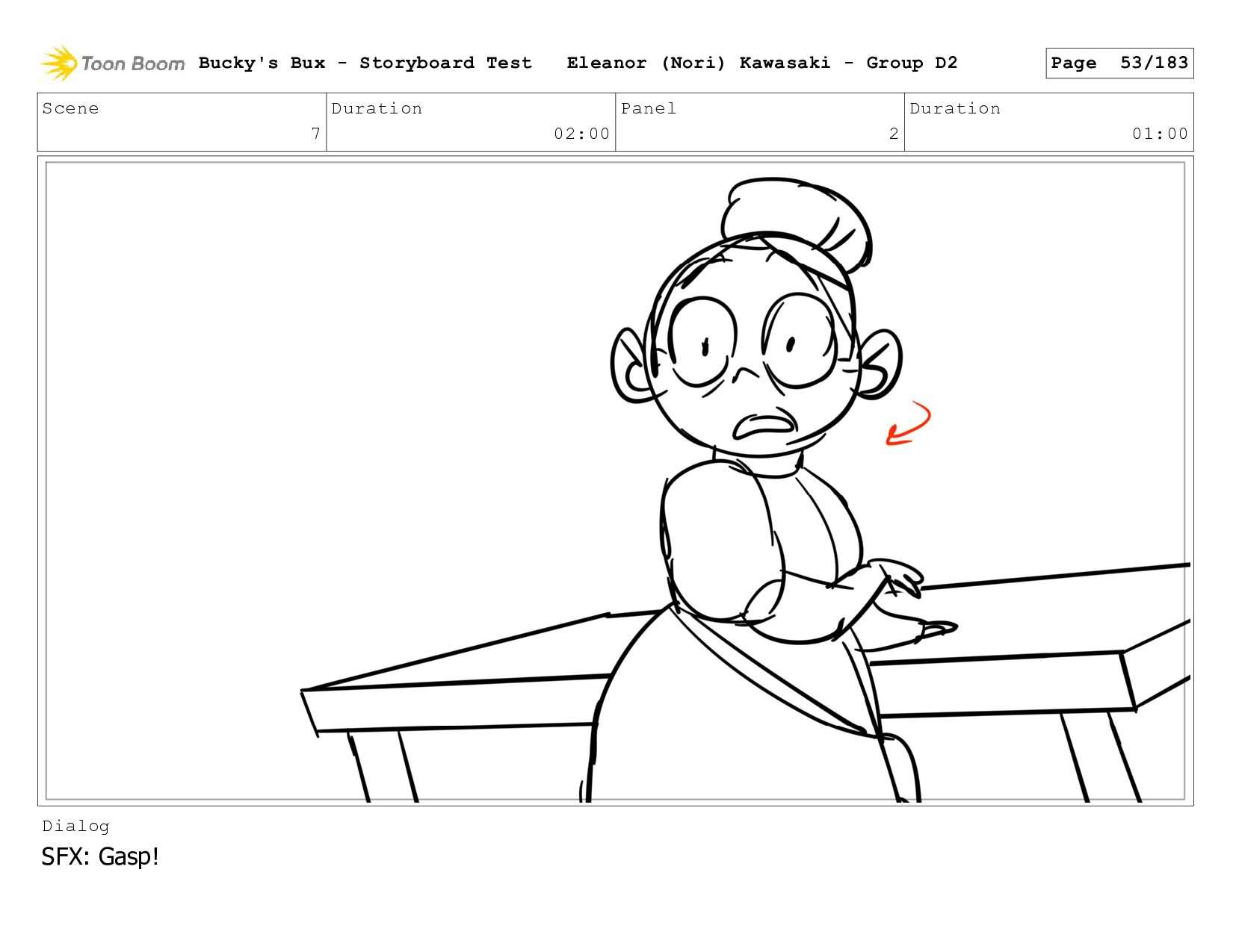 Now with a gun pointed directly at them, Bucky, the boys, and Mr. Fargo flinch in fear. Bucky's Bux - Storyboard Test Eleanor (Nori) Kawasaki - Group D2 Page 127/183