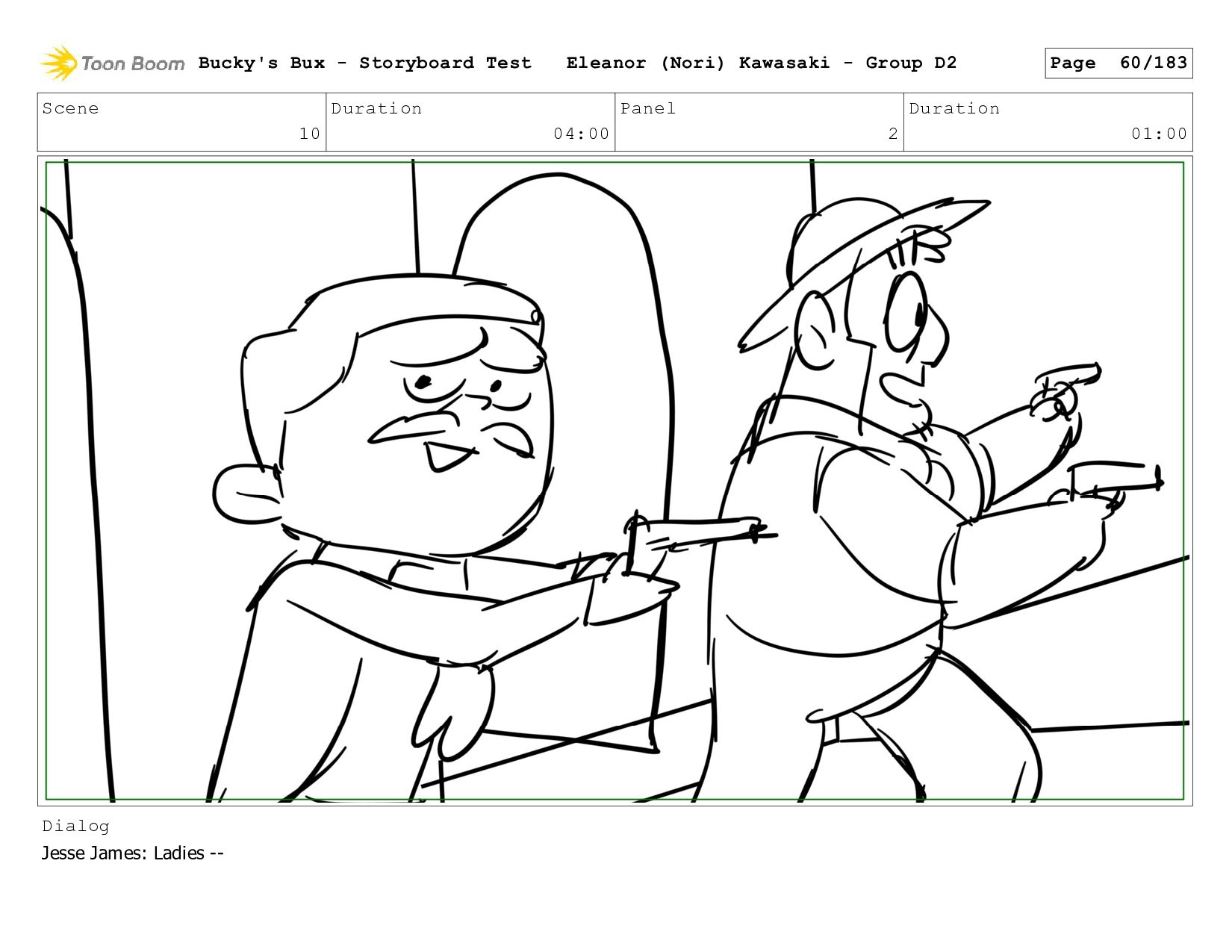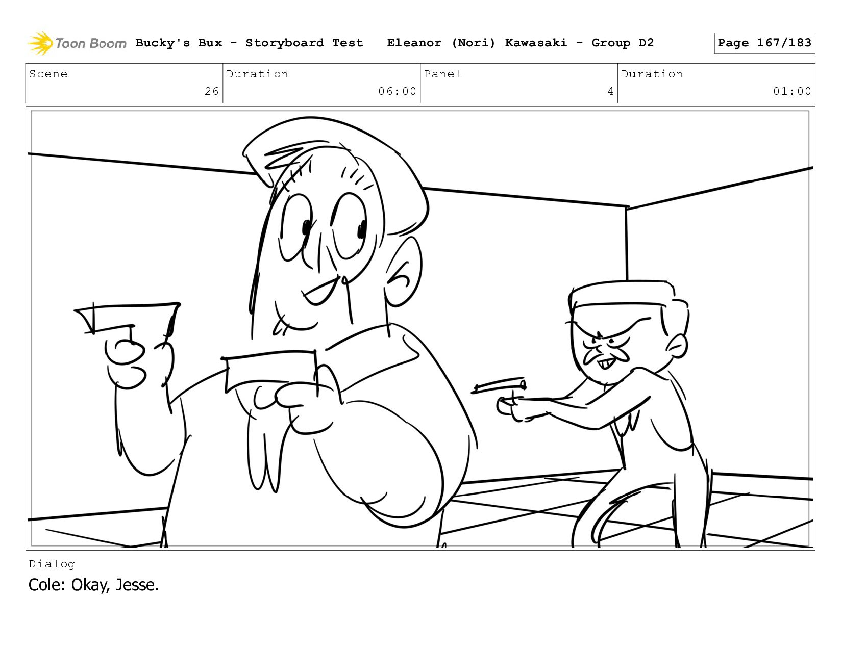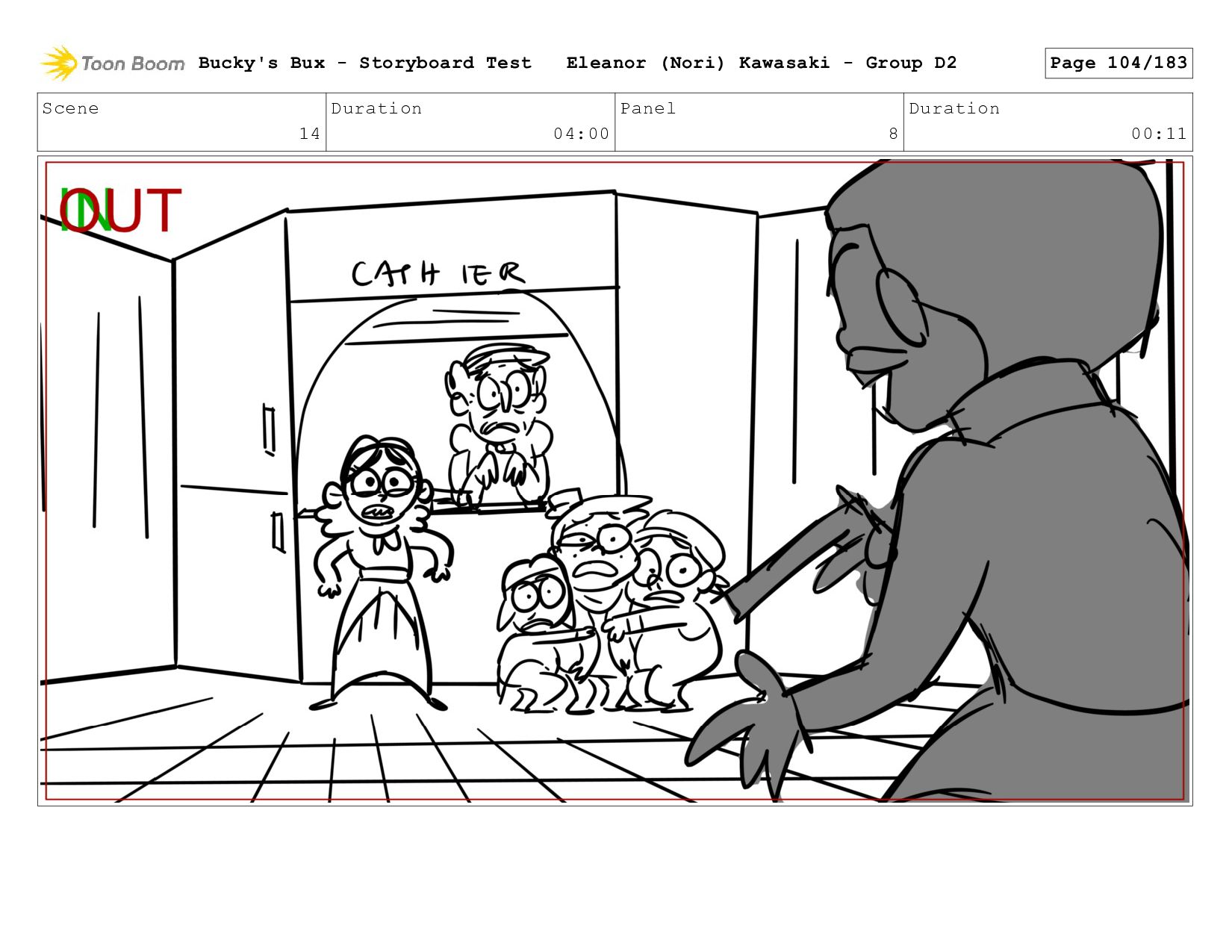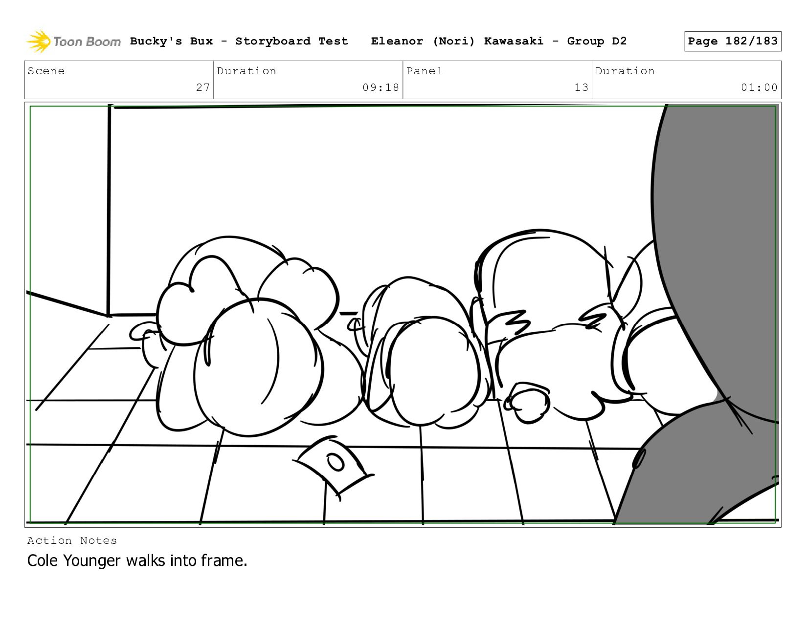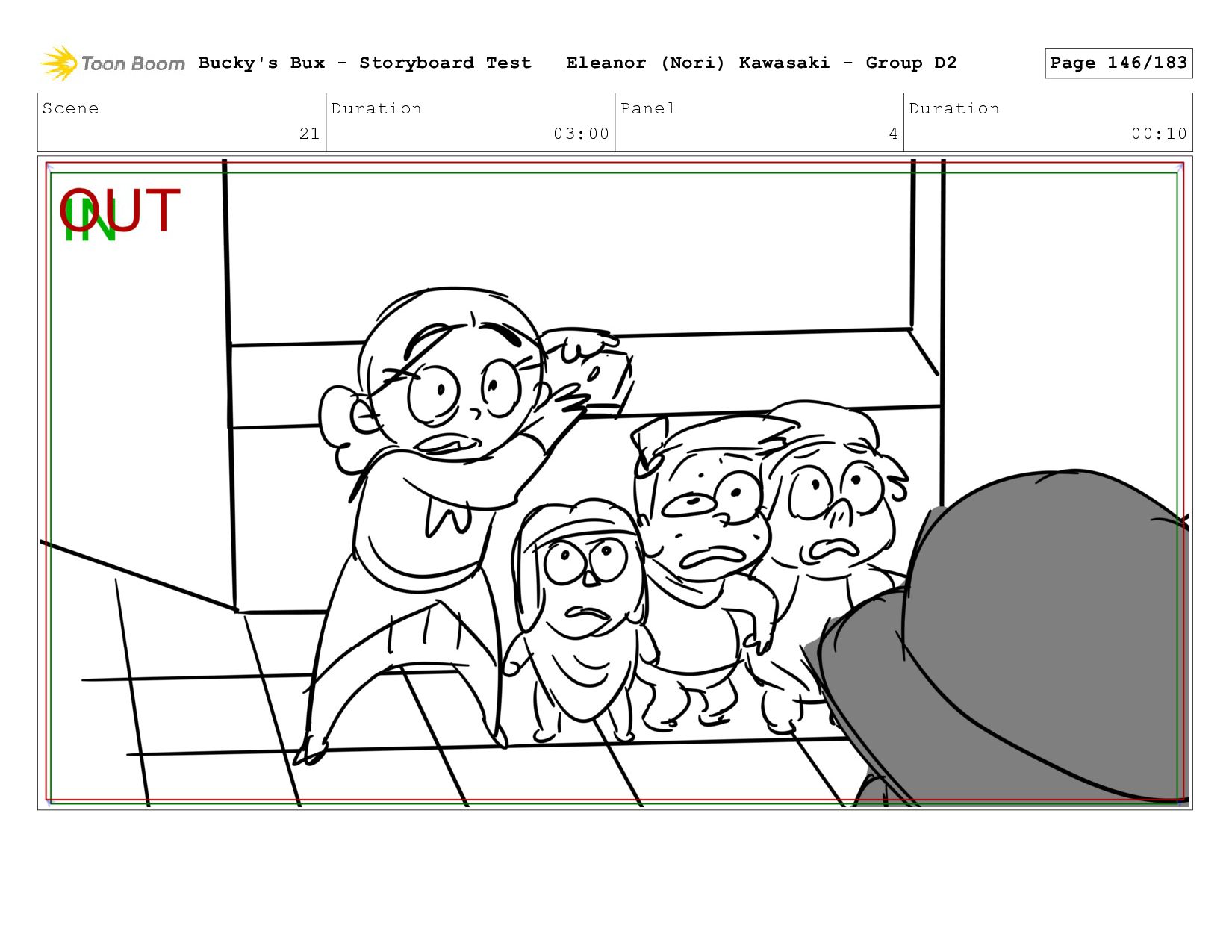 Now with a gun pointed directly at them, Bucky, the boys, and Mr. Fargo flinch in fear. Bucky's Bux - Storyboard Test Eleanor (Nori) Kawasaki - Group D2 Page 127/183