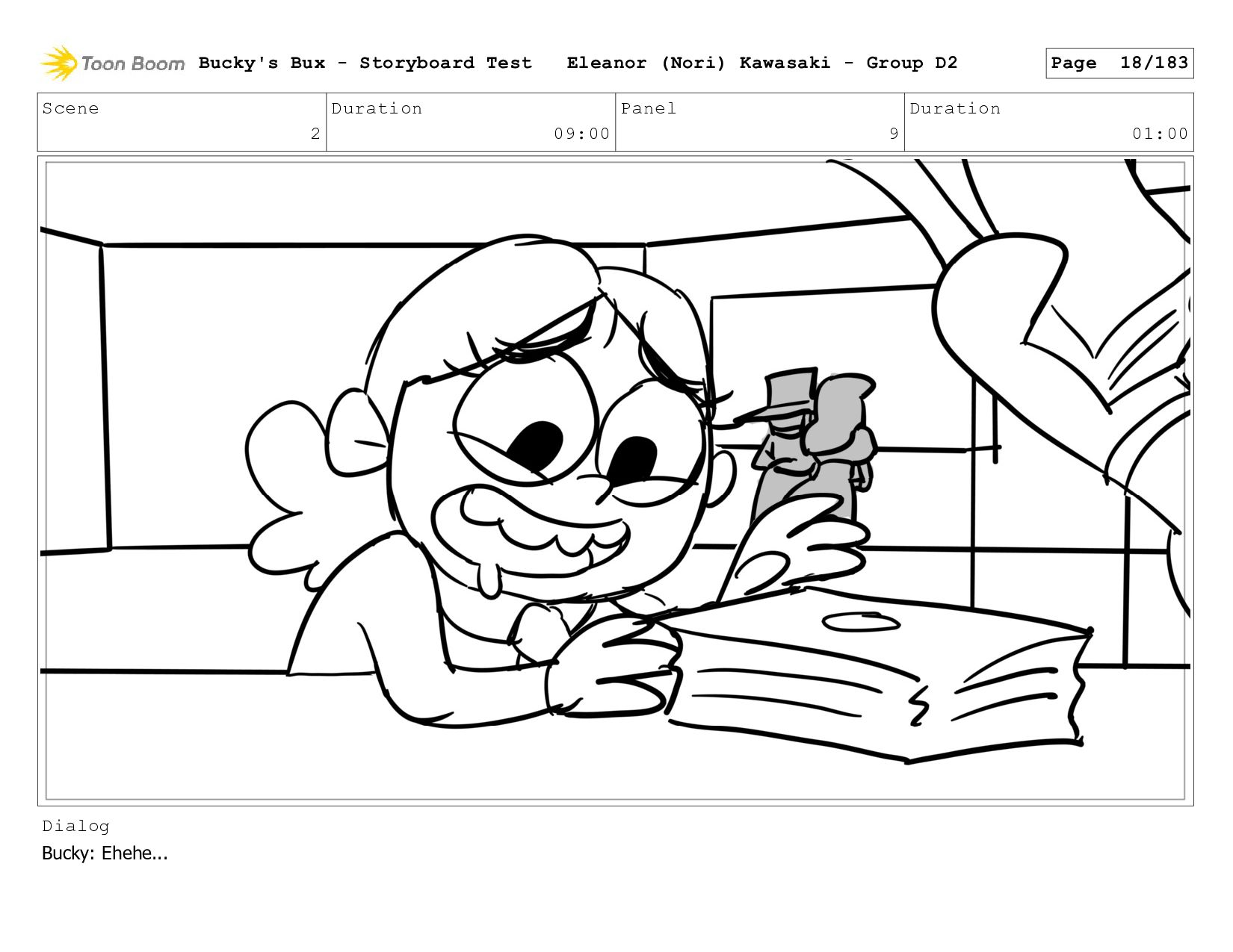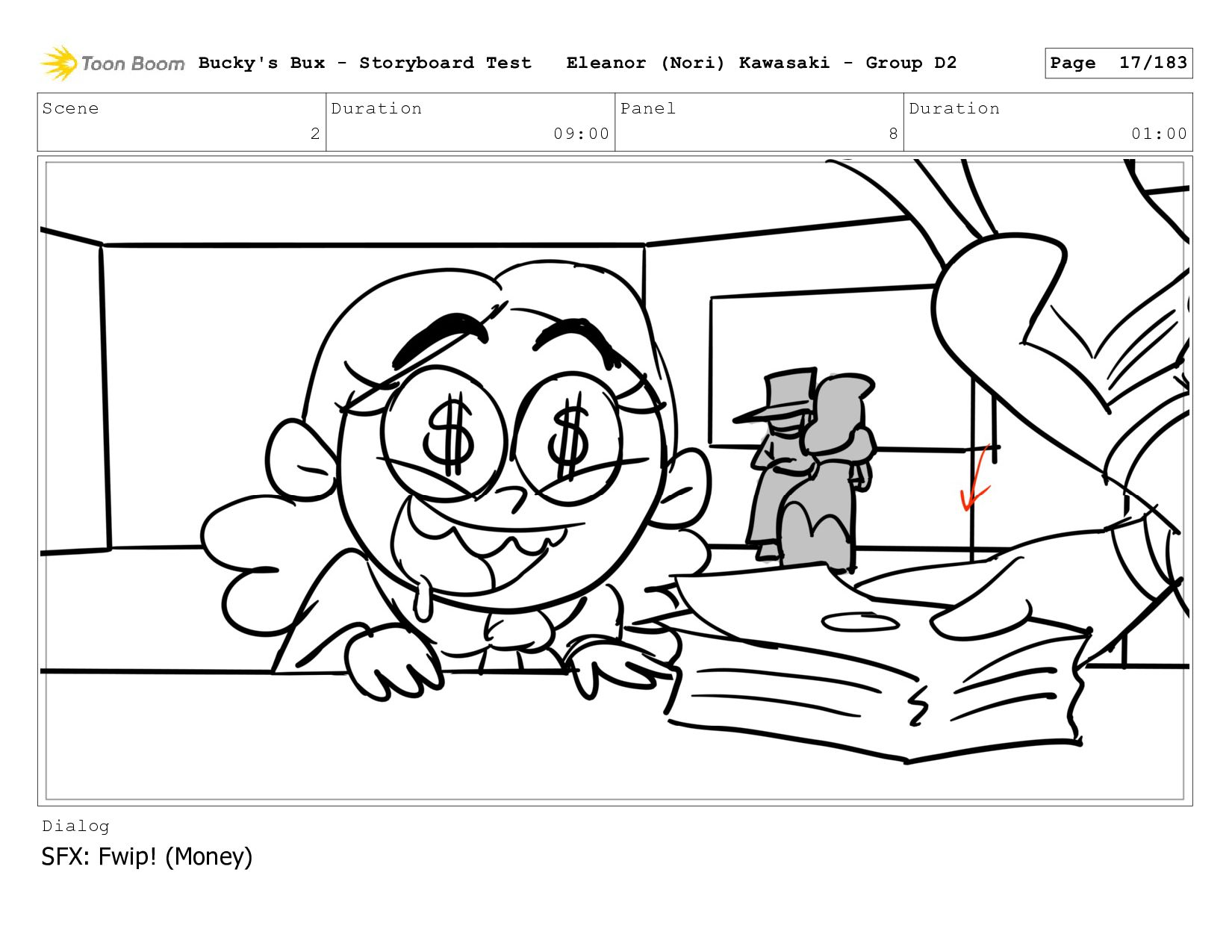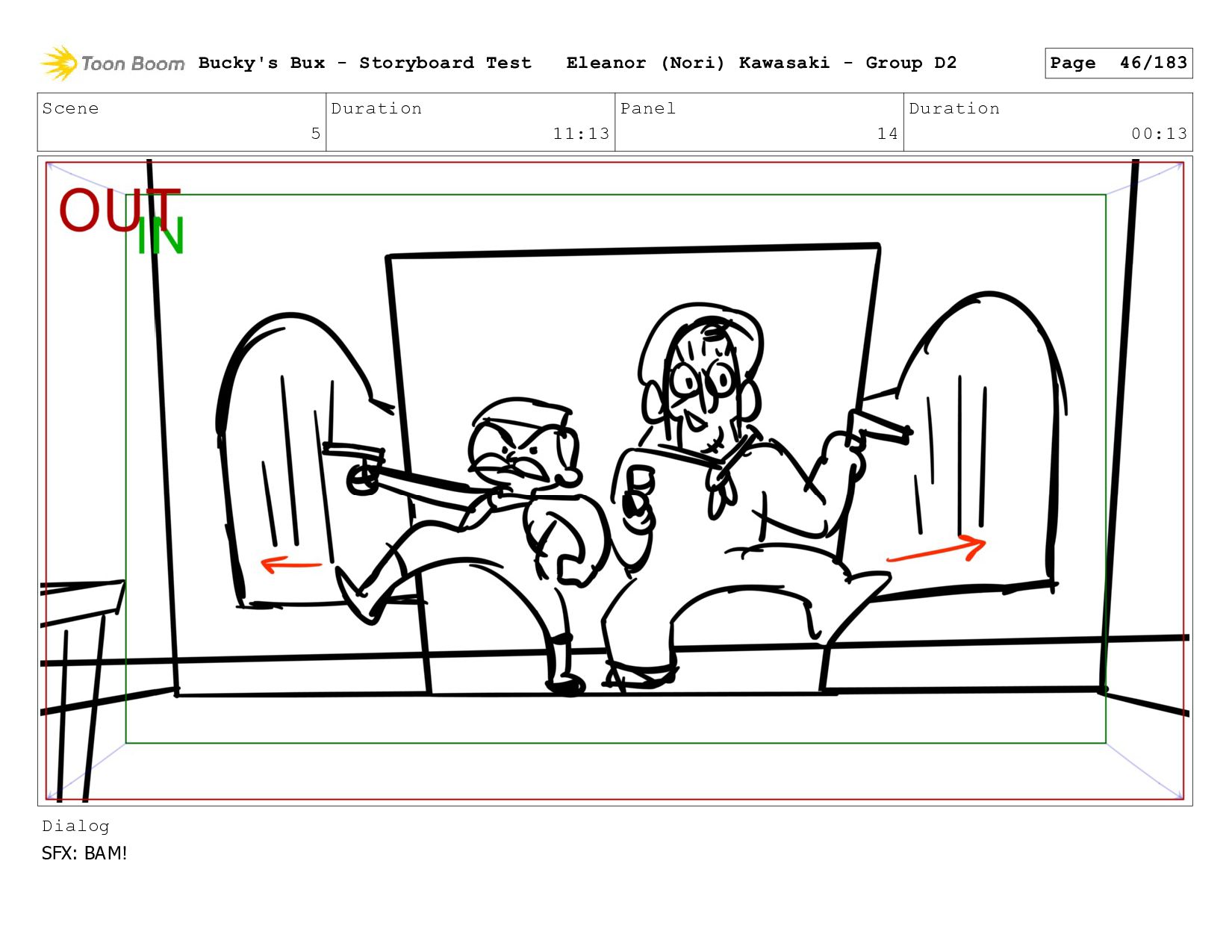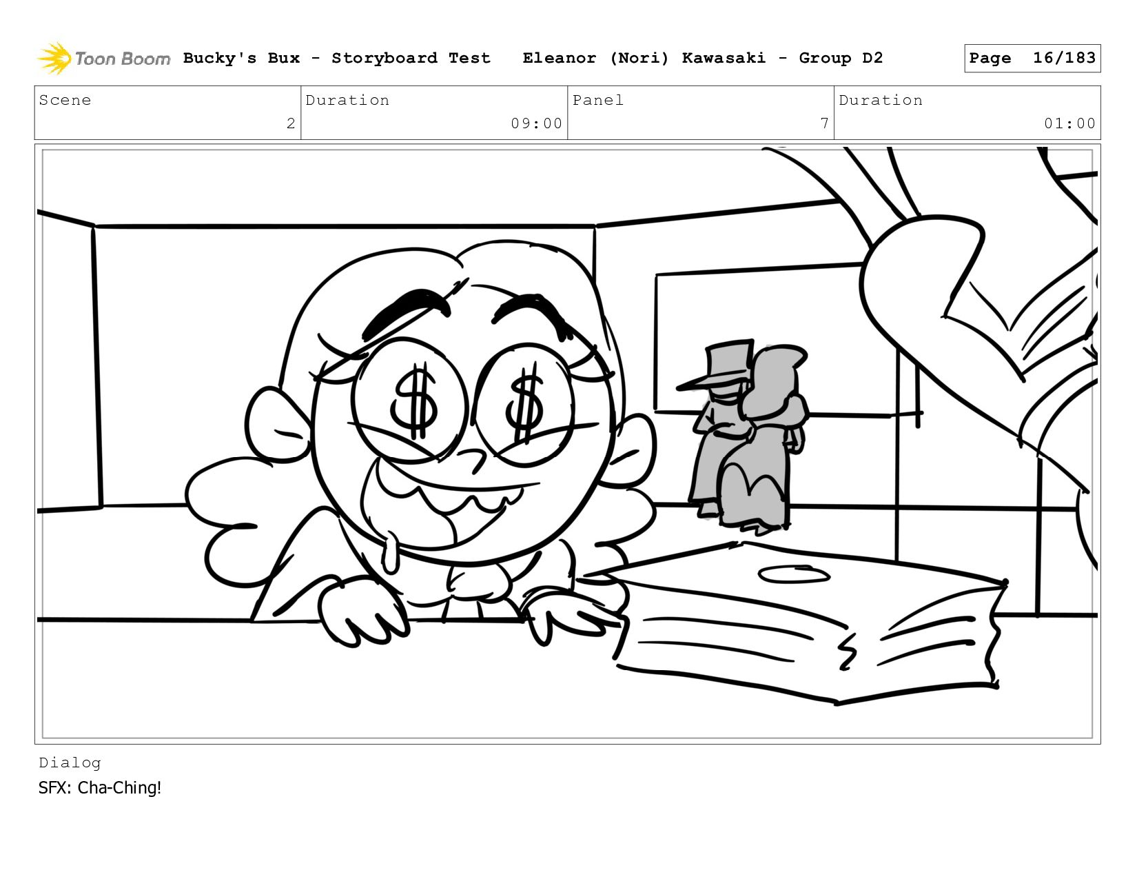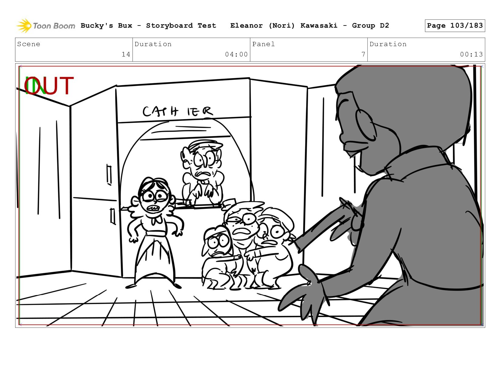 Now with a gun pointed directly at them, Bucky, the boys, and Mr. Fargo flinch in fear. Bucky's Bux - Storyboard Test Eleanor (Nori) Kawasaki - Group D2 Page 127/183