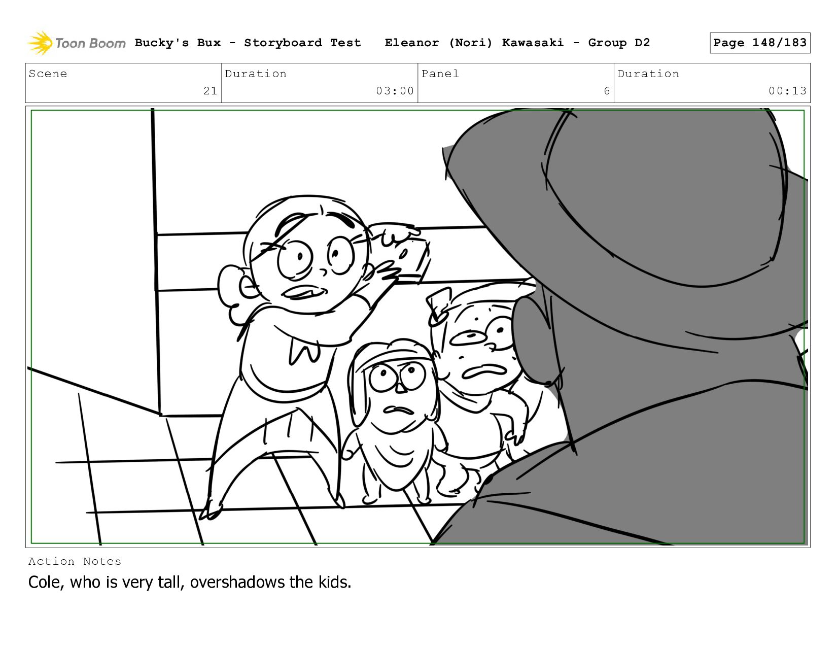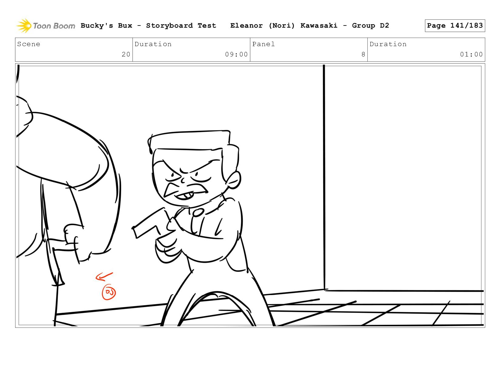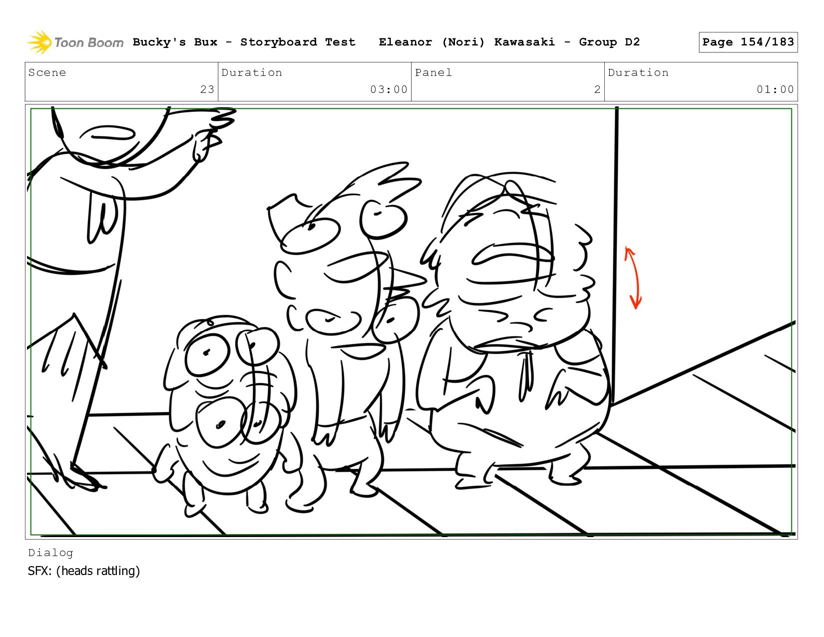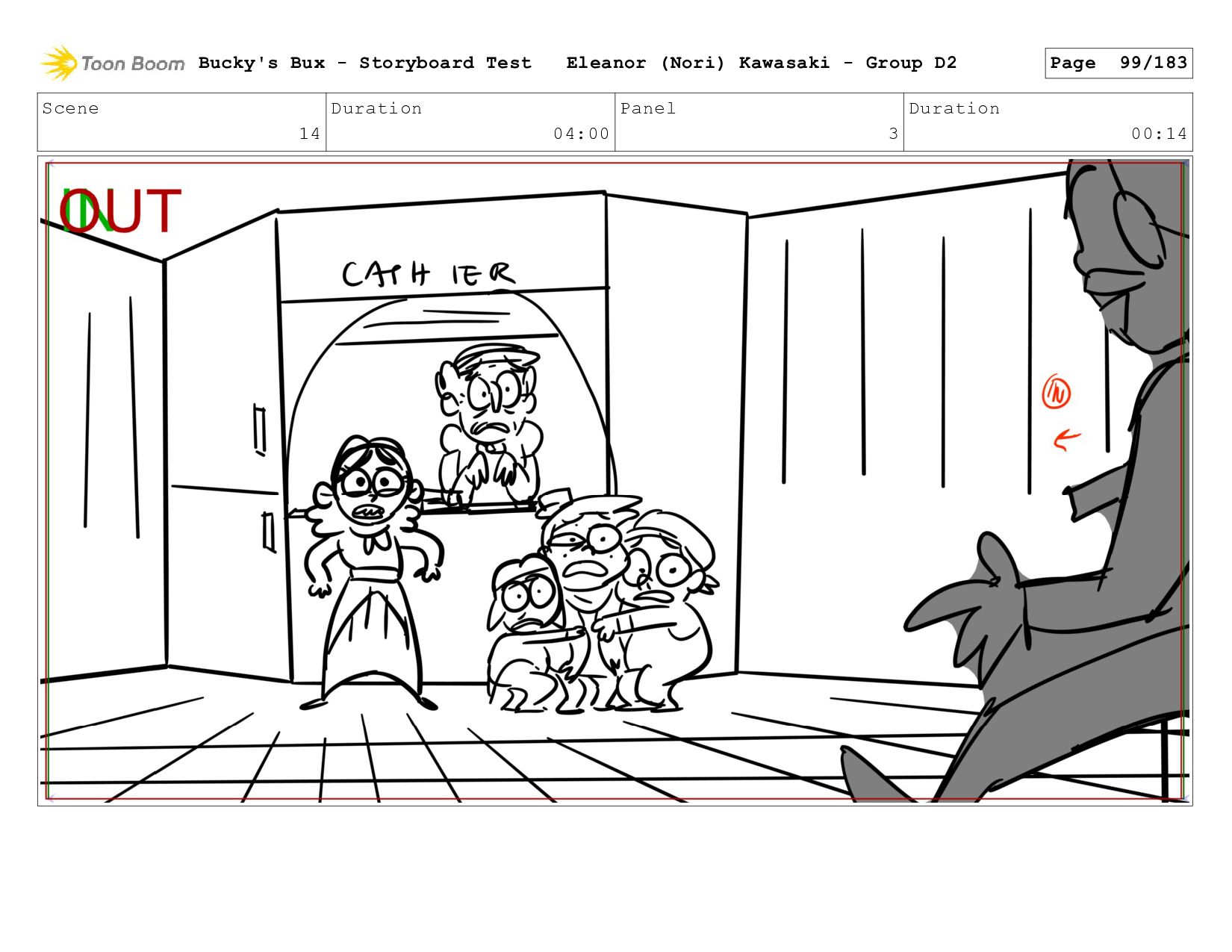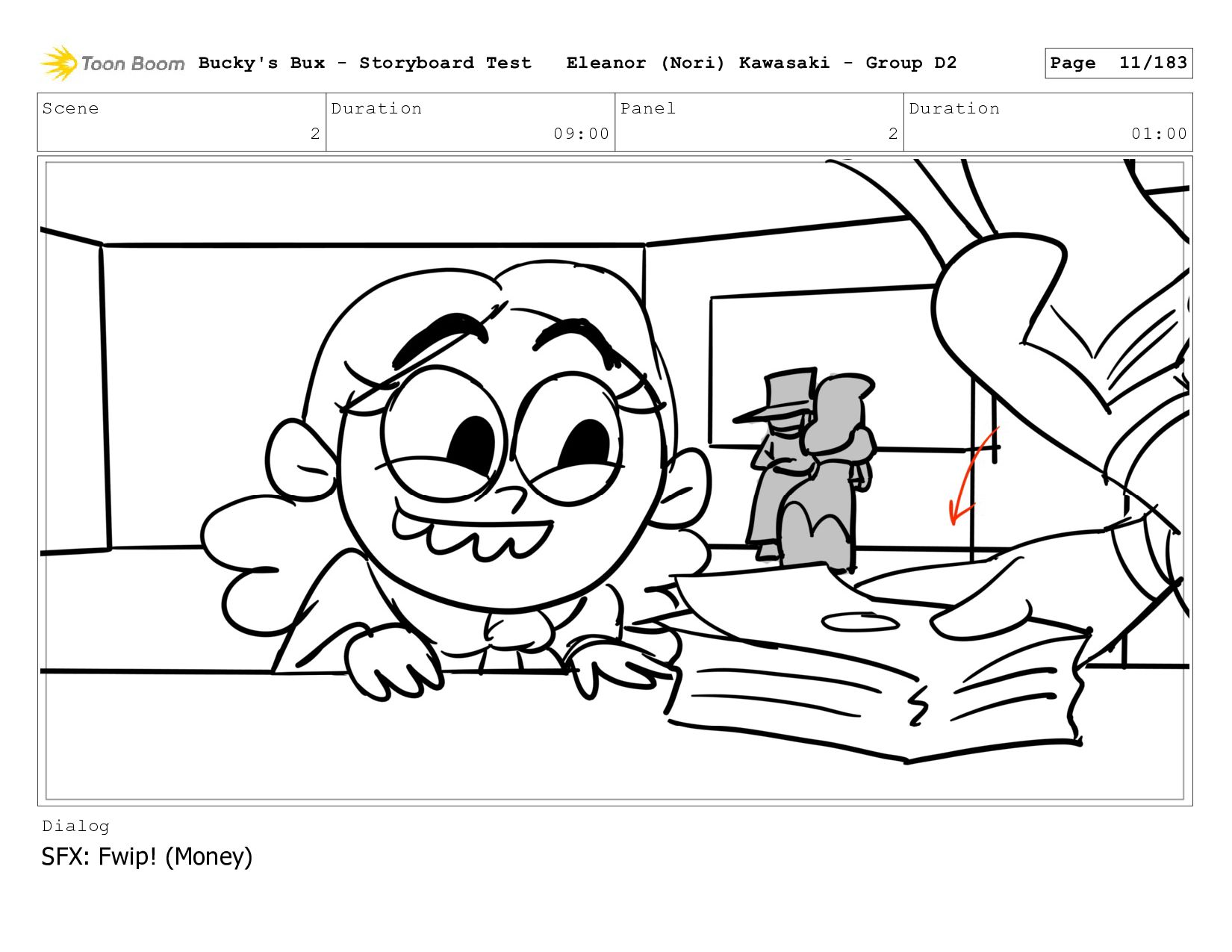 Now with a gun pointed directly at them, Bucky, the boys, and Mr. Fargo flinch in fear. Bucky's Bux - Storyboard Test Eleanor (Nori) Kawasaki - Group D2 Page 127/183