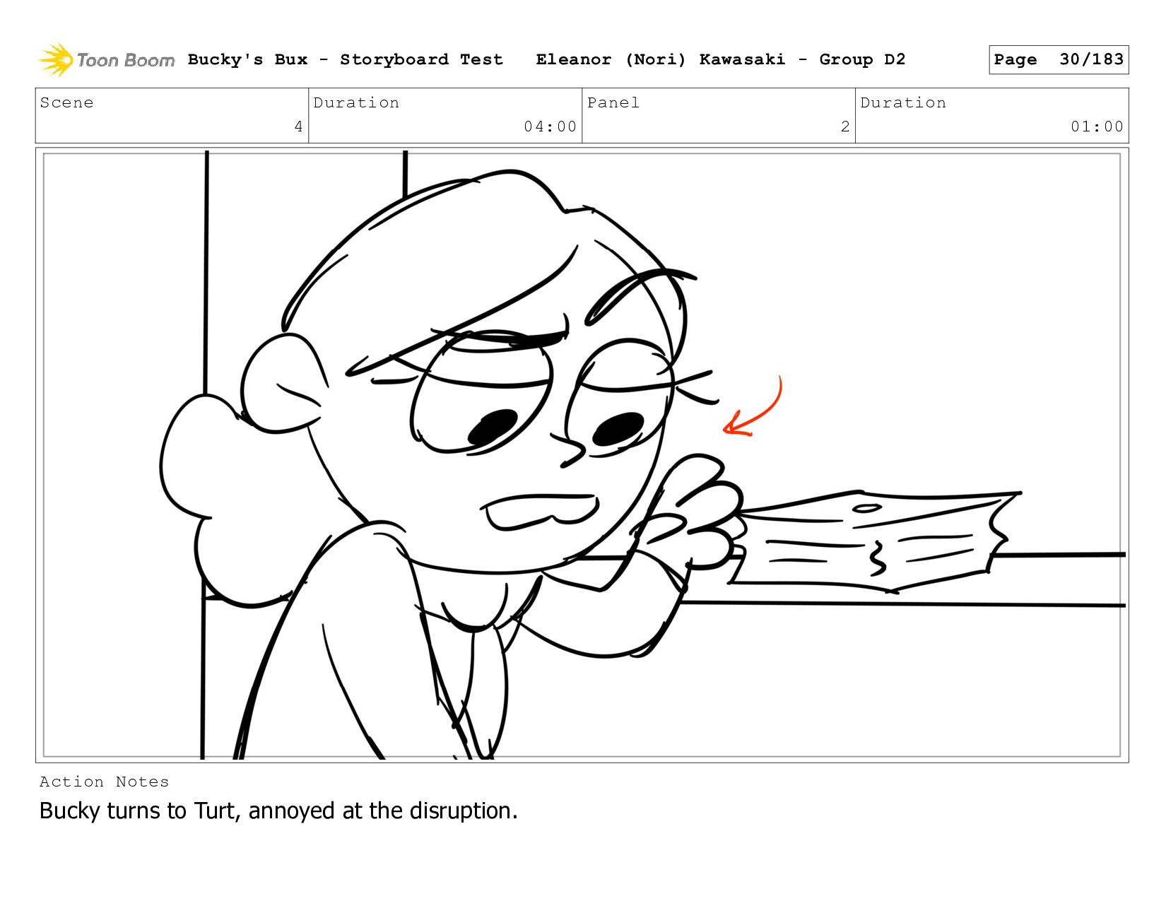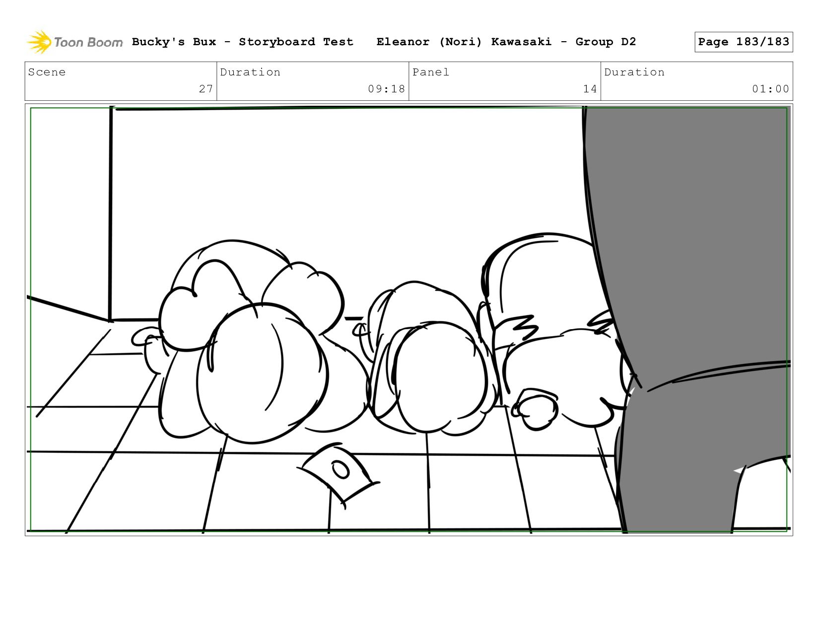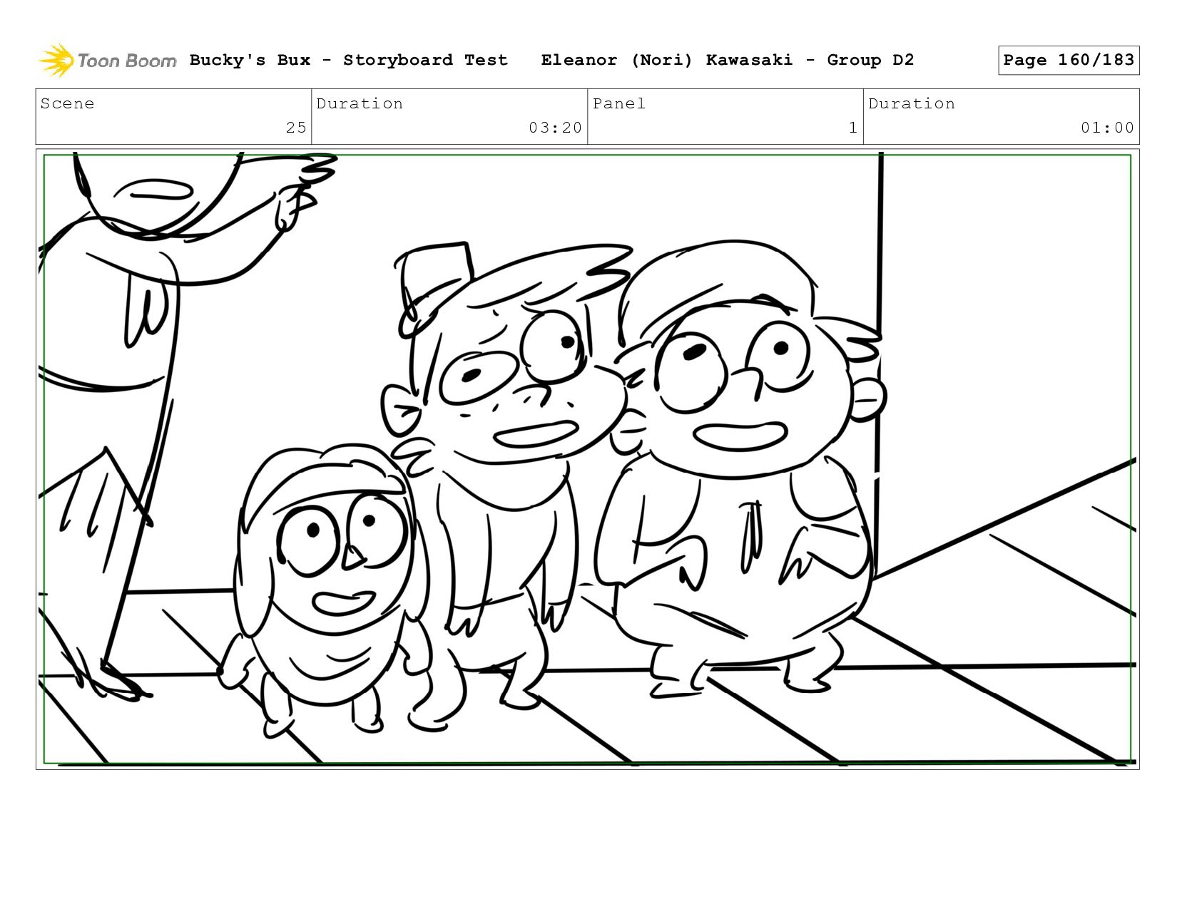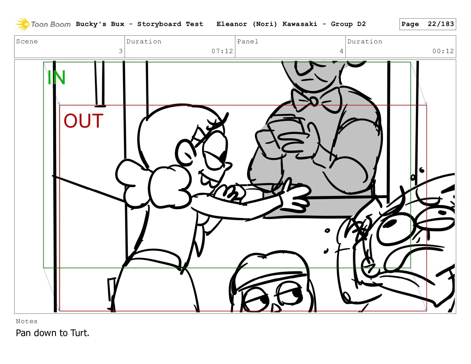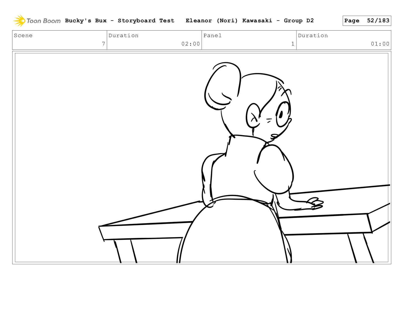 Now with a gun pointed directly at them, Bucky, the boys, and Mr. Fargo flinch in fear. Bucky's Bux - Storyboard Test Eleanor (Nori) Kawasaki - Group D2 Page 127/183