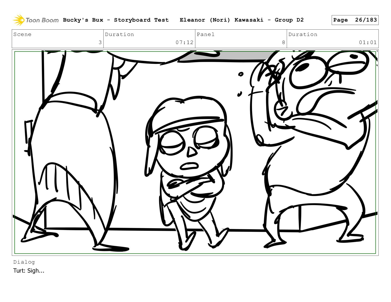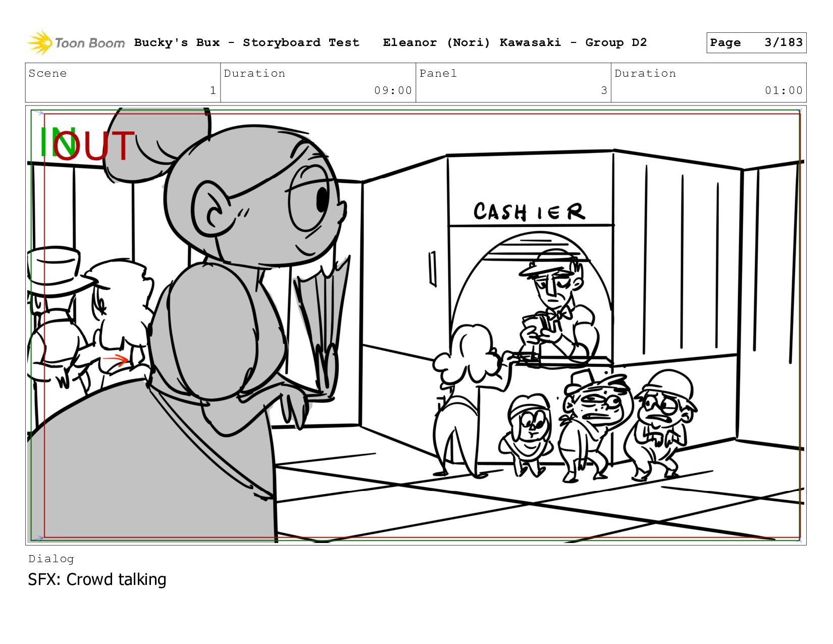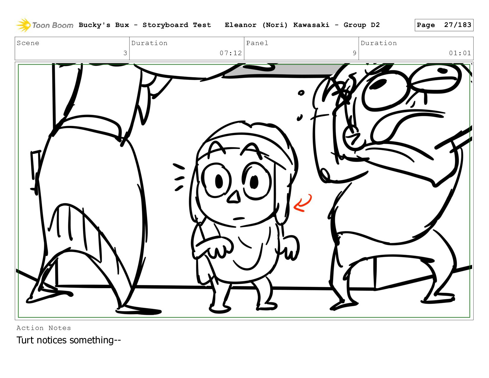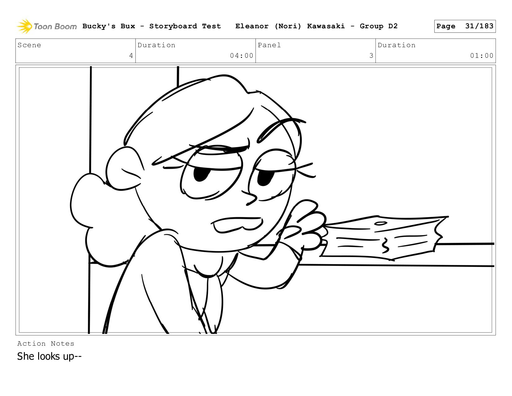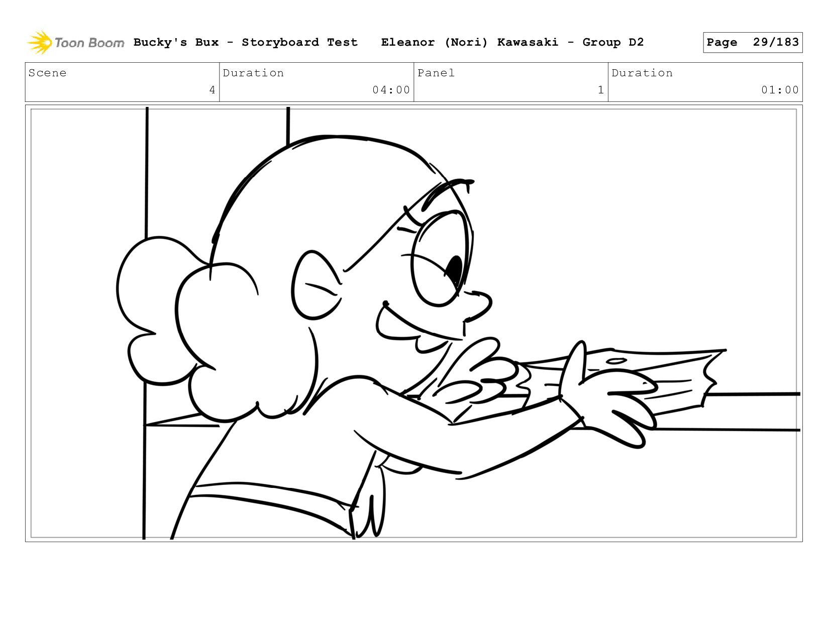 Now with a gun pointed directly at them, Bucky, the boys, and Mr. Fargo flinch in fear. Bucky's Bux - Storyboard Test Eleanor (Nori) Kawasaki - Group D2 Page 127/183