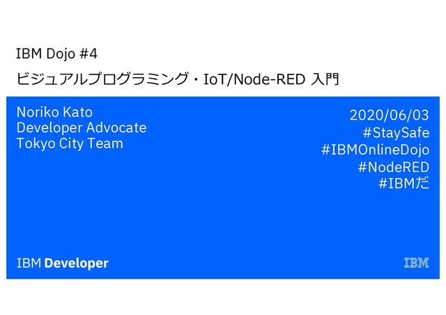 IBM Dojo #4 ビジュアルプログラミング・IoT/Node-RED ⼊⾨ Noriko Kato Developer Advocate Tokyo