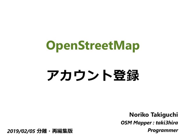 OpenStreetMap アカウント登録 Noriko Takiguchi OSM Mapper : taki3hira Programmer