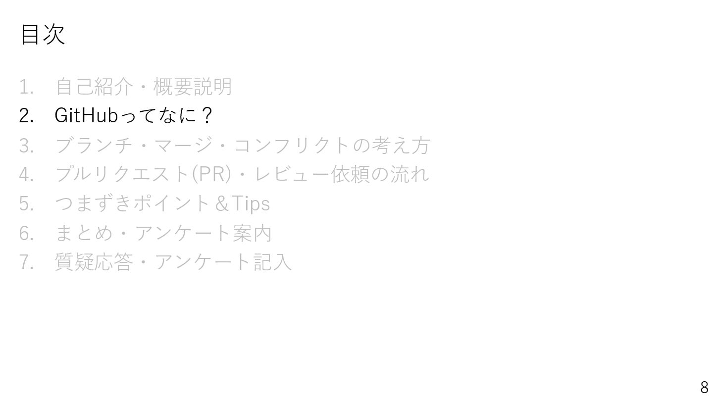 <概要> 本セミナーでは、新卒社員が体験した「初めてのGitHub」のリアルなエピソードを交えながら、GitHubの基本操作やつまずきポイント、解決のコツを共有します。 これからGitHubを使い始める方にとって「最初の一歩」を踏み出すきっかけとなる1時間です。