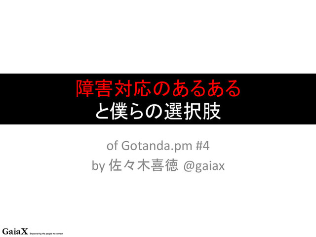 障害対応のあるある と僕らの選択肢 of Gotanda.pm #4 by 佐々木喜徳 @gaiax