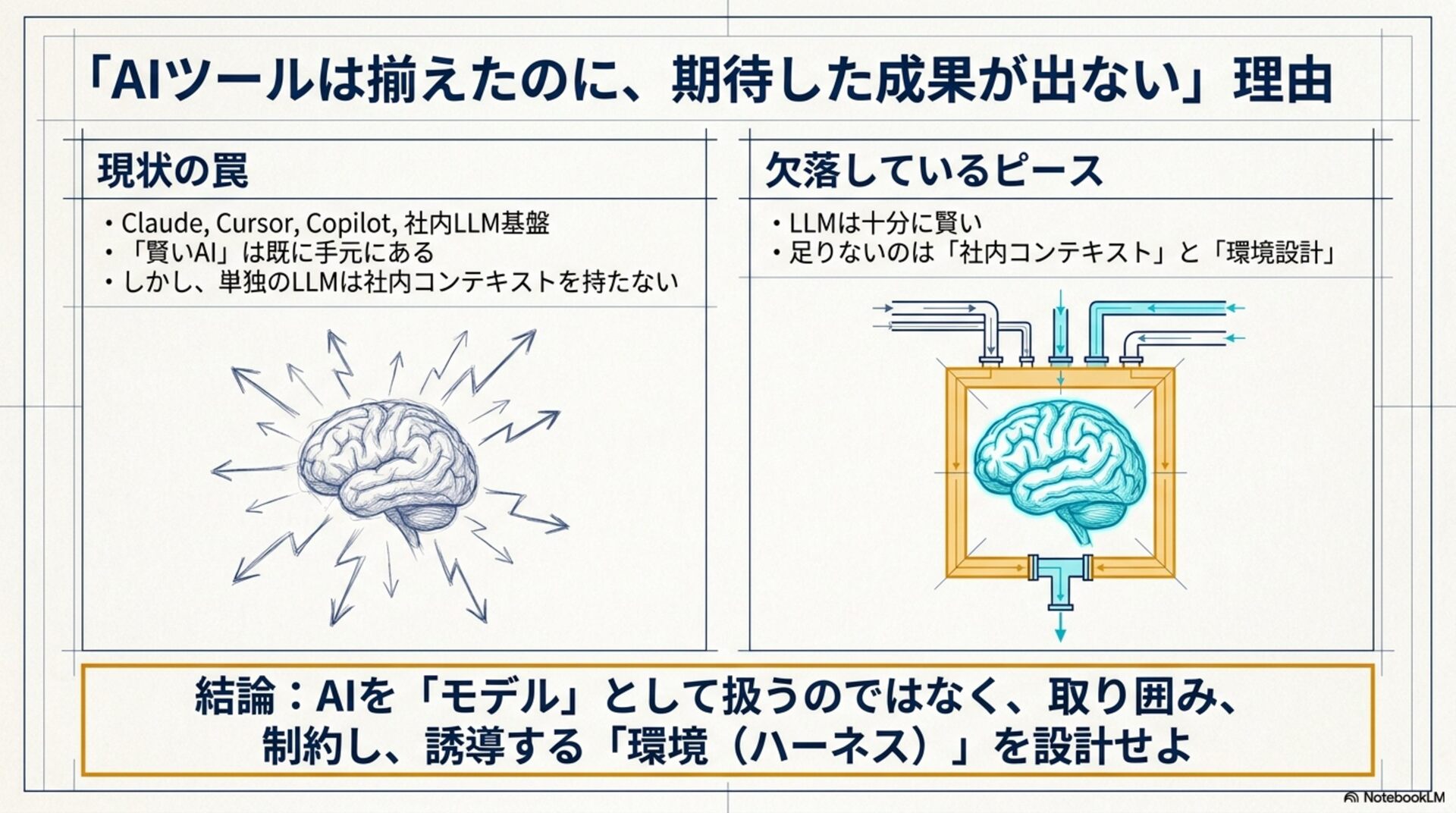 「ハーネスエンジニアリング」という言葉、正直なところ私も最近まではっきりとは意識していませんでした。しかし記事を読み進めるうちに、「あ、これ、自分がこの1ヶ月ひたすらやってきたことや」 と膝を打ちました。