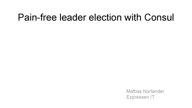 Electing a leader among a group of peer processes is a problem that needs to be solved time and again for distributed systems. This talk shows our solution for nodejs services; using Consul and a simple, event-based client library.