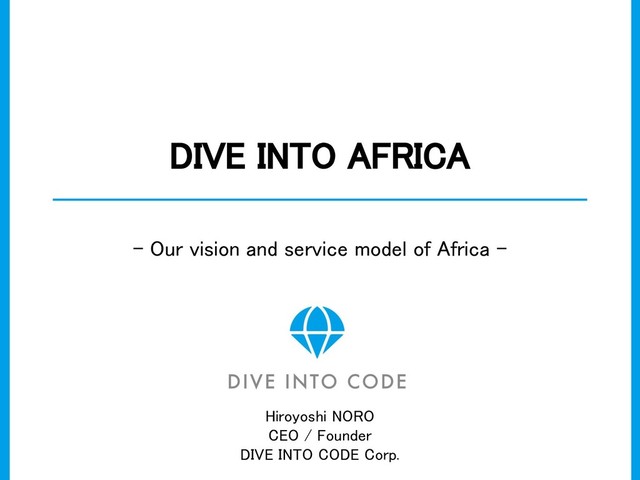 DIVE INTO CODE ECOSYSTEM D e v e l o p Study Job hunting Japan Offshore development Rwanda local company O f f l i n e O n l i n e G r a d u a t e Employment guarantee, OJT Employment guarantee, OJT M e n t o r DIVE INTO CODE RWANDA Local school Local graduates serve as educational mentors Employment guarantee, OJT DIVE INTO CODE JAPAN & Rwanda Proven Proven Proven Crowdfunding coverage ( → Make a model and expand to other countries ) (Only study session) Proven
