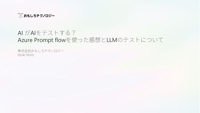 AI がAIをテストする? Azure Prompt flowを使った感想とLLMのテストについて 株式会社おもしろテクノロジー Ibuki Noro