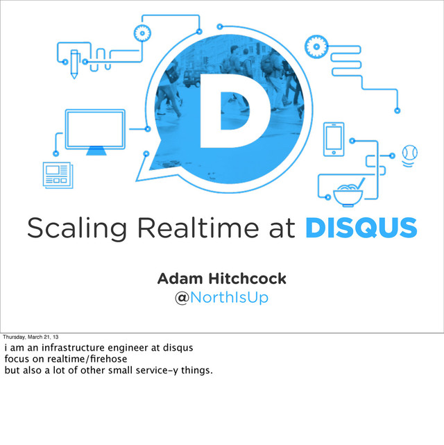 1. Adam Hitchcock @NorthIsUp Scaling Realtime at DISQUS Thursday, March 21,