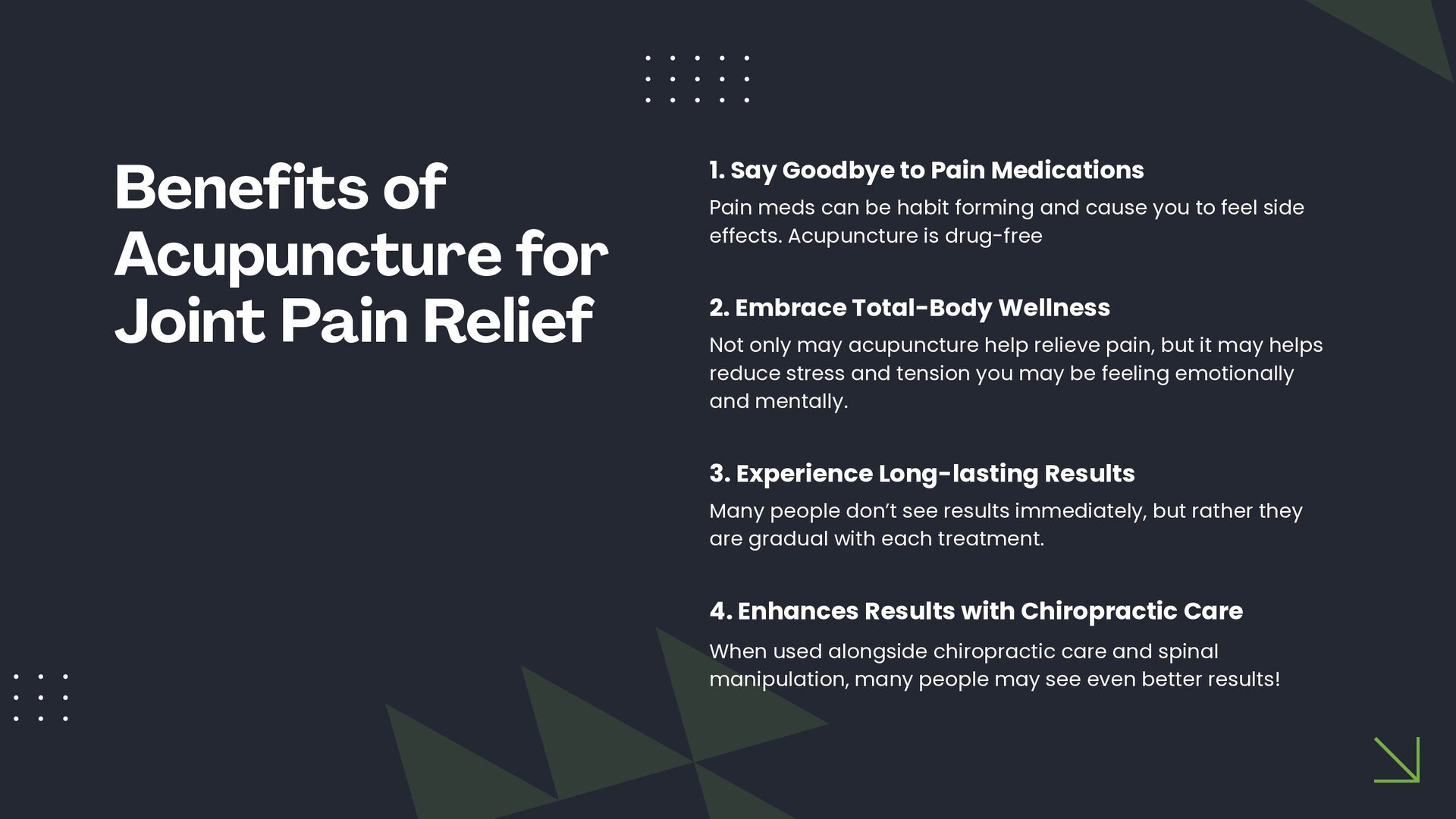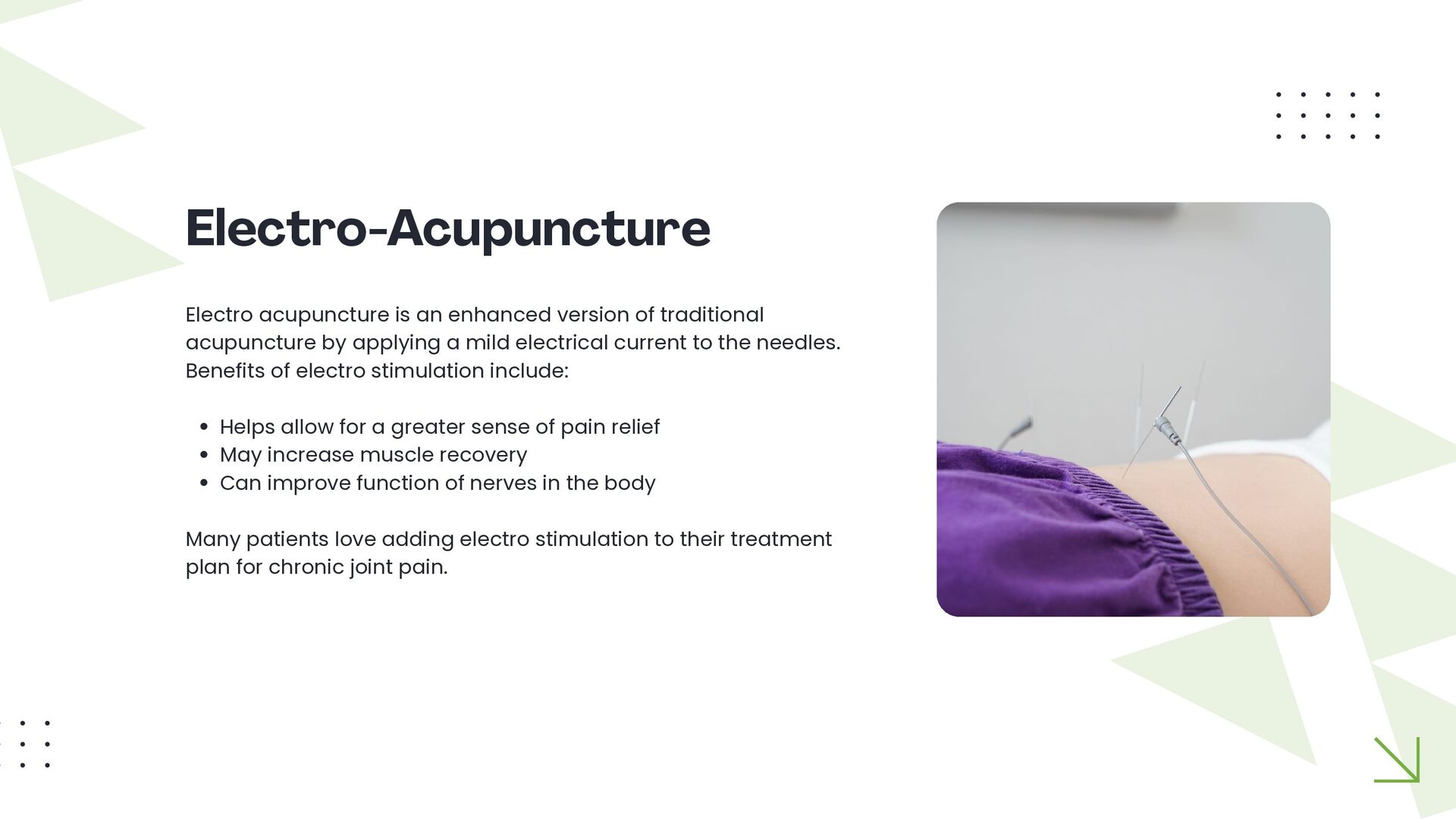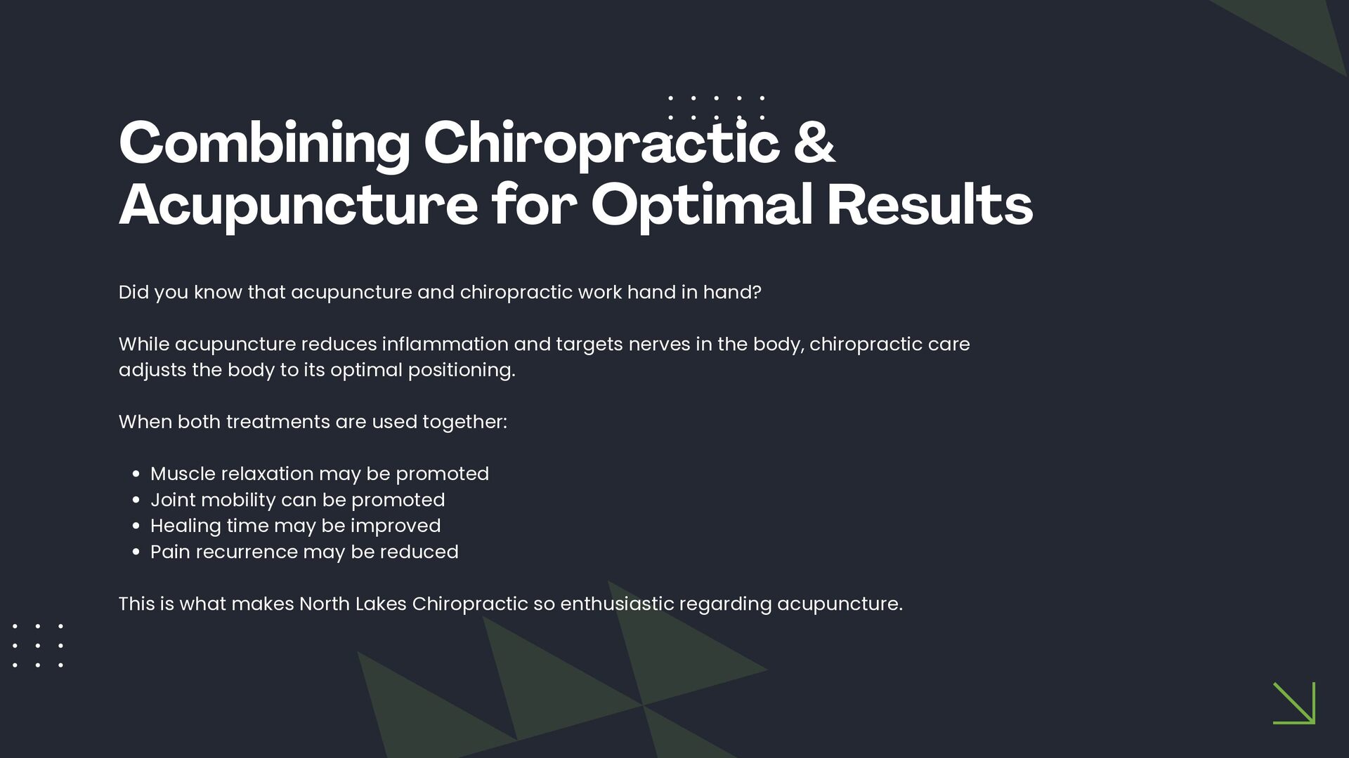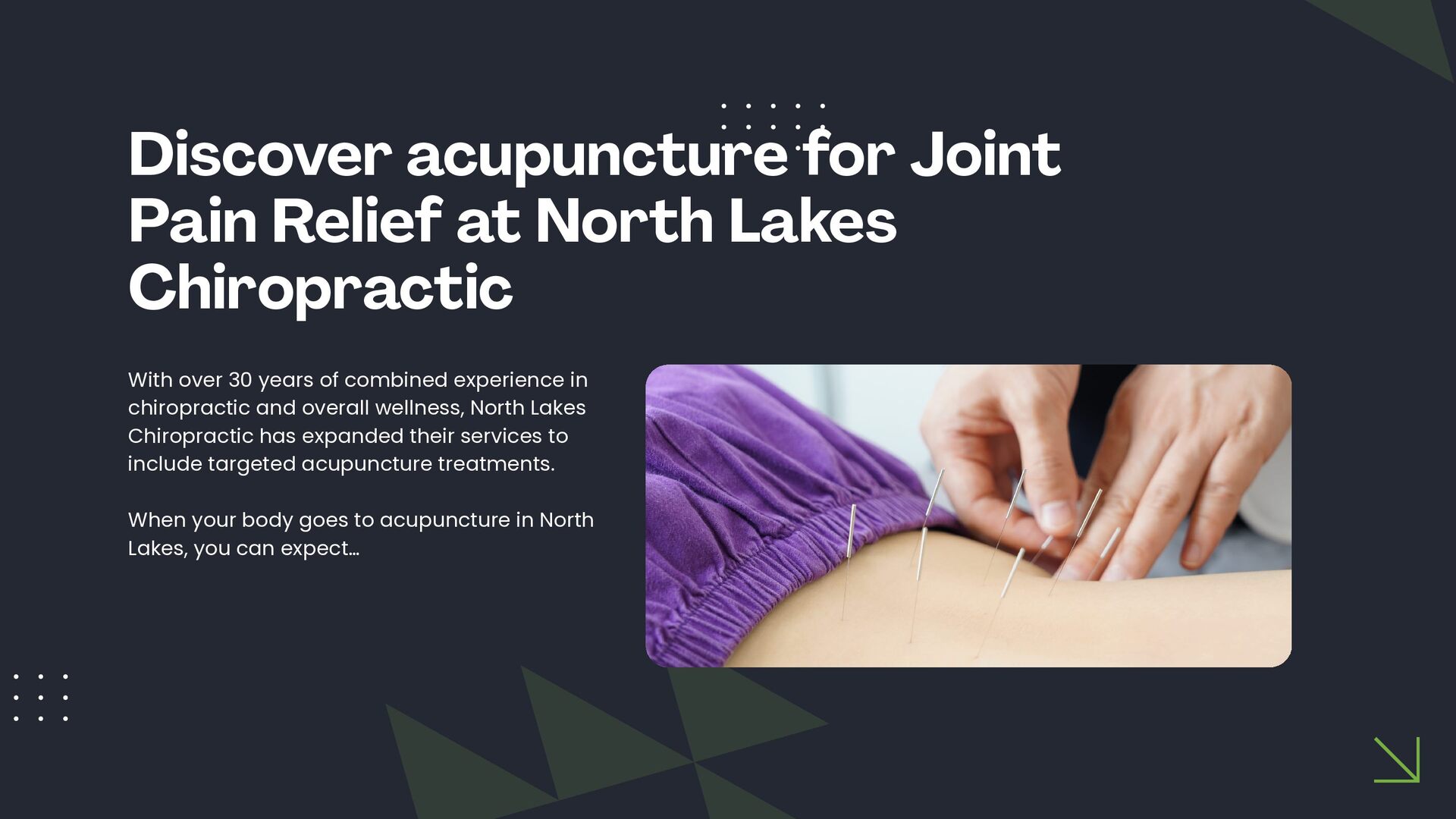 This slide presentation outlines how acupuncture is sometimes used in clinical practice to support joint function and complement chiropractic care. It provides a structured overview of assessment considerations, commonly addressed musculoskeletal presentations, and how techniques such as electro-acupuncture, cupping, guasha, and moxibustion may be incorporated into individualised care plans. The full slide deck is available for viewing at: https://docs.google.com/presentation/d/1WOimlKlraTXGb0Vvb5qWnvsM7imKRj-i/edit?usp=sharing. For more information about tailored treatment options, visit North Lakes Chiropractic in North Lakes, Brisbane via: https://www.northlakeschiropractic.com.au/acupuncture-north-lakes/. Consultations are available to determine whether this approach may be appropriate for your individual needs.