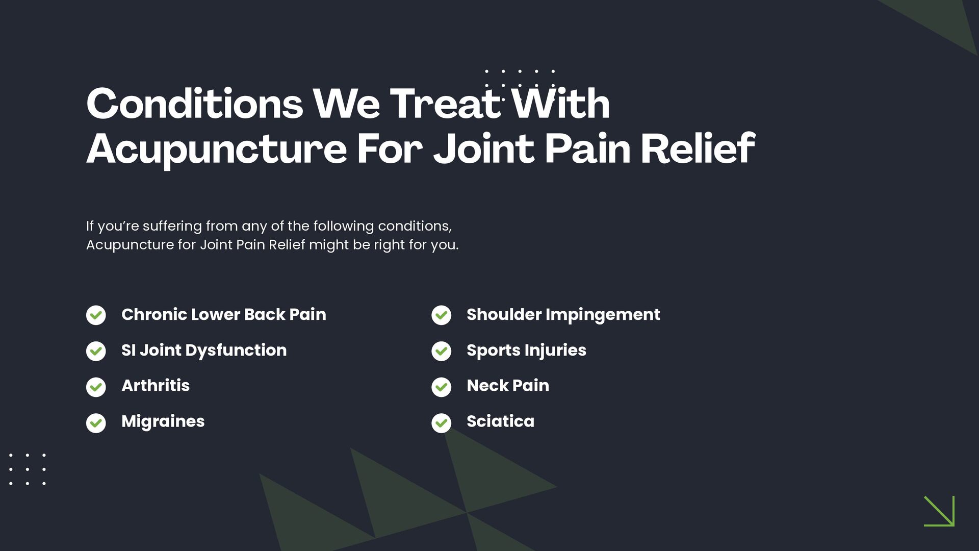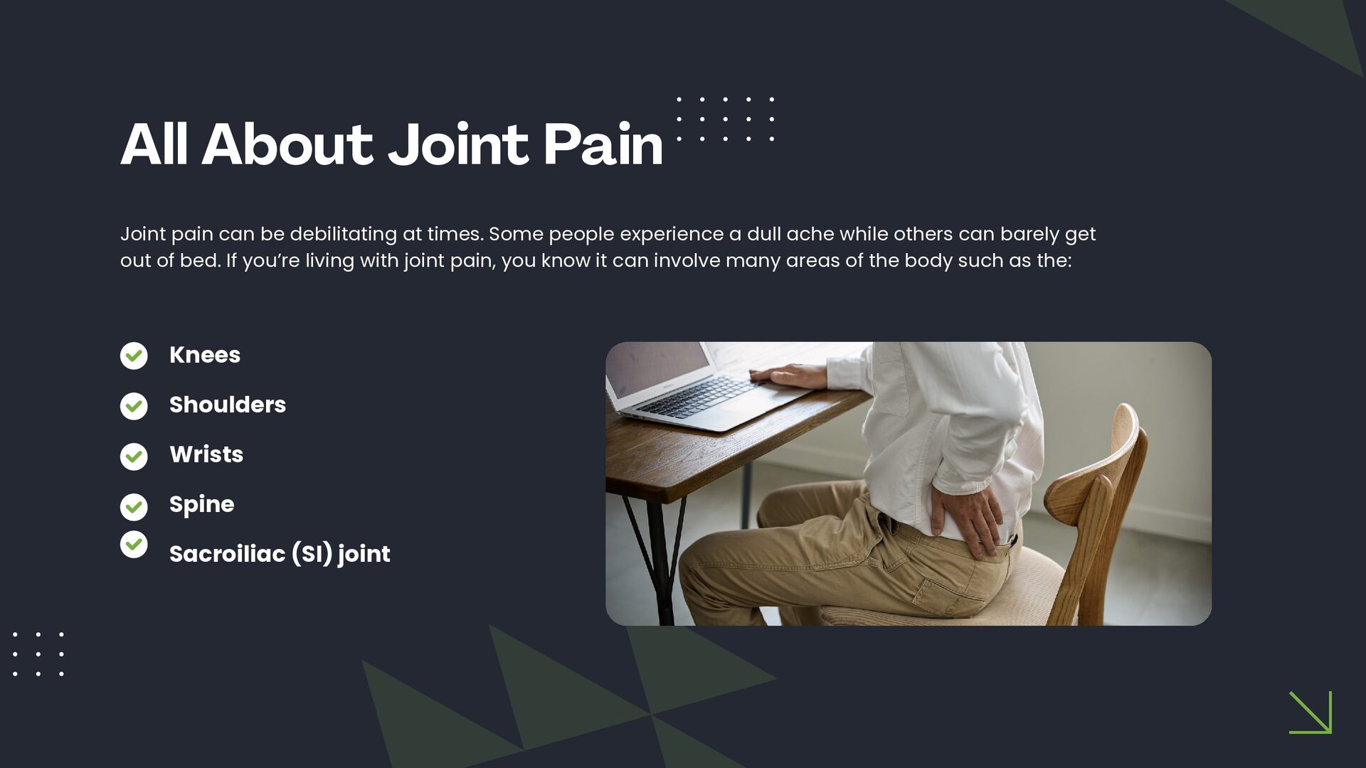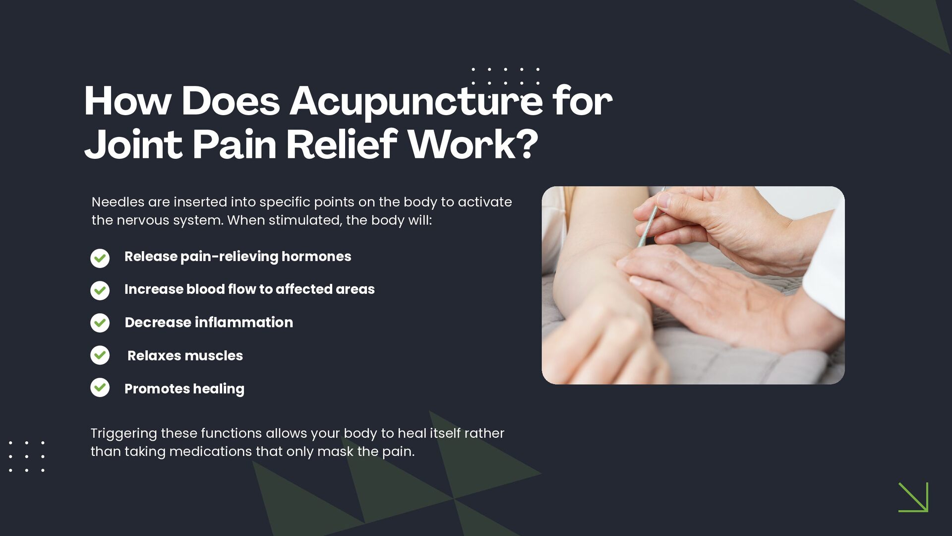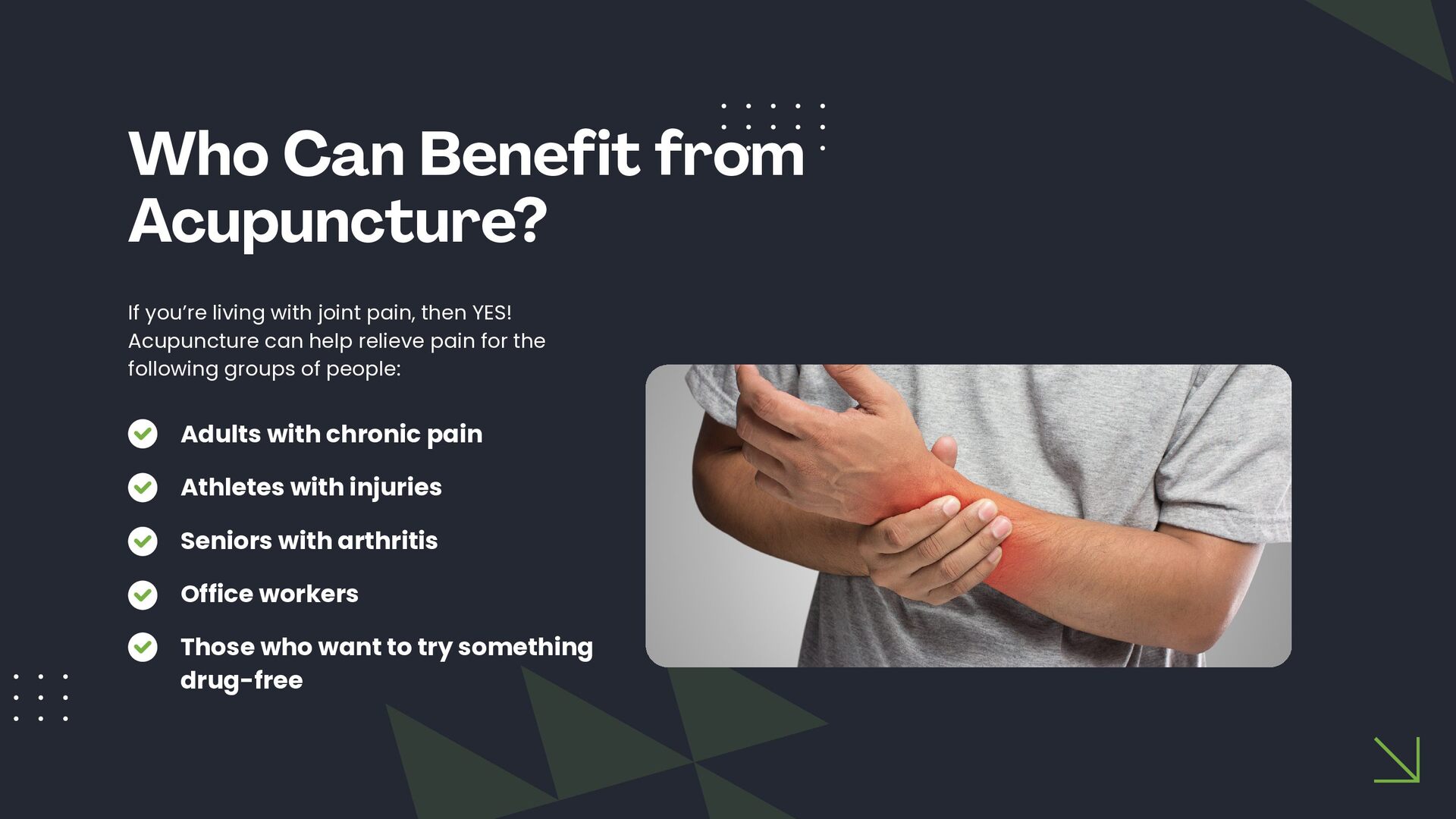This slide presentation outlines how acupuncture is sometimes used in clinical practice to support joint function and complement chiropractic care. It provides a structured overview of assessment considerations, commonly addressed musculoskeletal presentations, and how techniques such as electro-acupuncture, cupping, guasha, and moxibustion may be incorporated into individualised care plans. The full slide deck is available for viewing at: https://docs.google.com/presentation/d/1WOimlKlraTXGb0Vvb5qWnvsM7imKRj-i/edit?usp=sharing. For more information about tailored treatment options, visit North Lakes Chiropractic in North Lakes, Brisbane via: https://www.northlakeschiropractic.com.au/acupuncture-north-lakes/. Consultations are available to determine whether this approach may be appropriate for your individual needs.