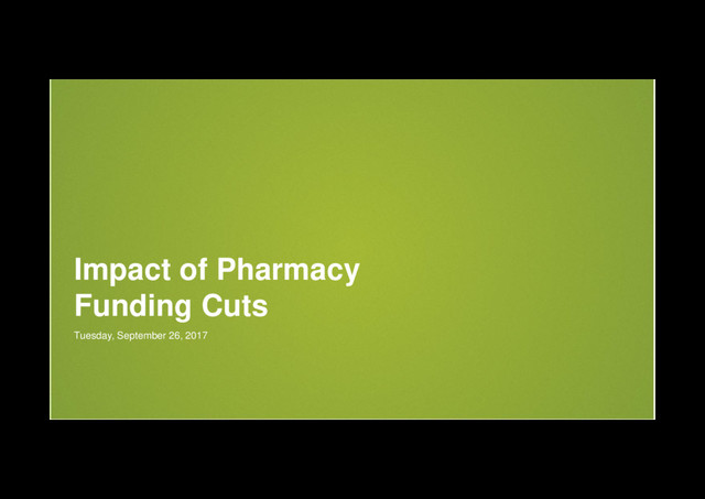 Impact of Pharmacy Funding Cuts Tuesday, September 26, 2017