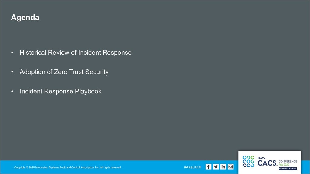 This presentation will provide a historical review of how incident response has been handled from 1950s to now. The impact of Zero-trust will also be discussed, as a concept to replace perimeter-based security, and to more effectively solve remote work and cloud computing.