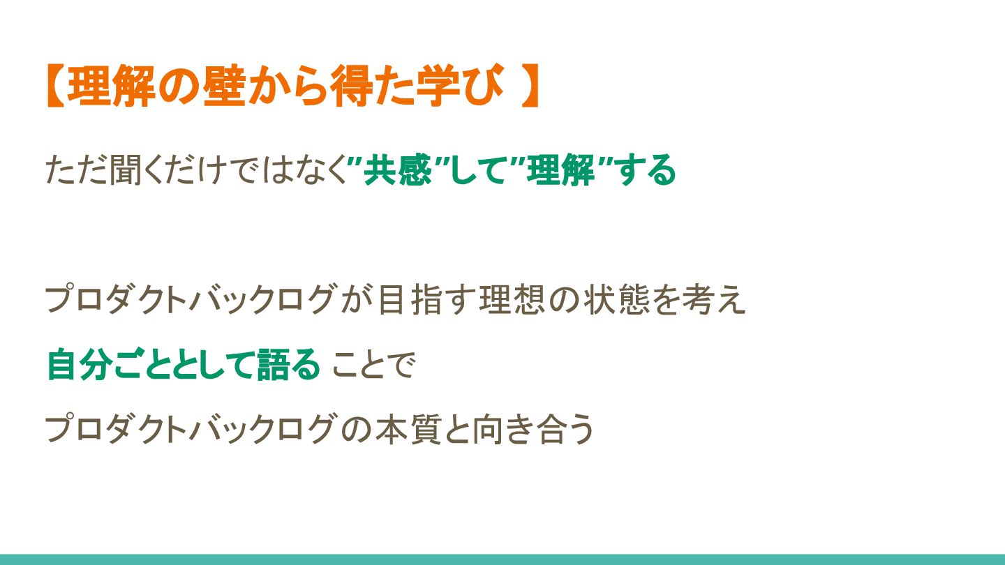 スプリントを通じて検査と適応を重ねる中で、理念への理解やメンバー間の共通理解の作り方、プロダクトバックログとの向き合い方を学んでいきました。